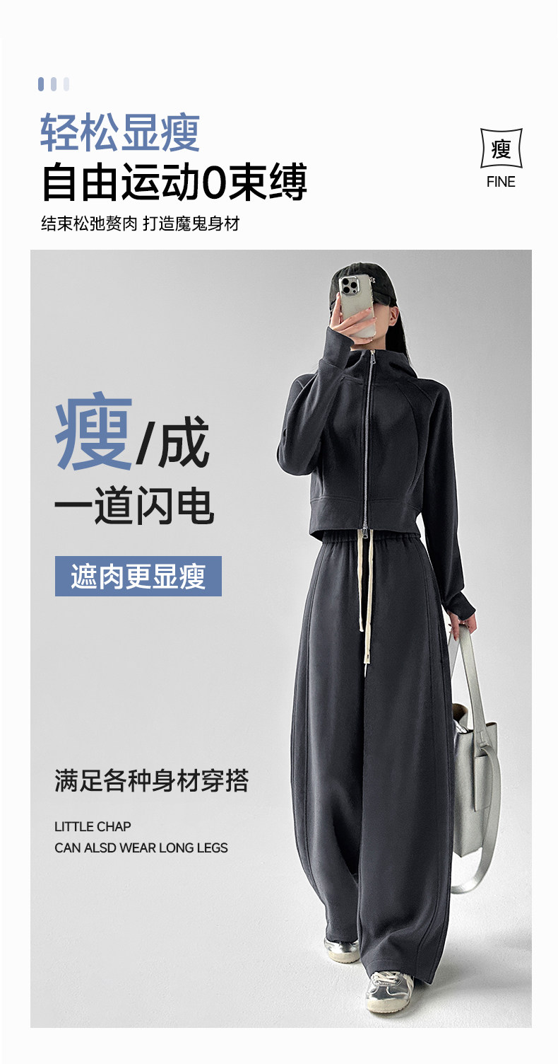 休闲运动套装女春秋2026新款连帽卫衣+直筒显瘦卫裤高级感两件套
