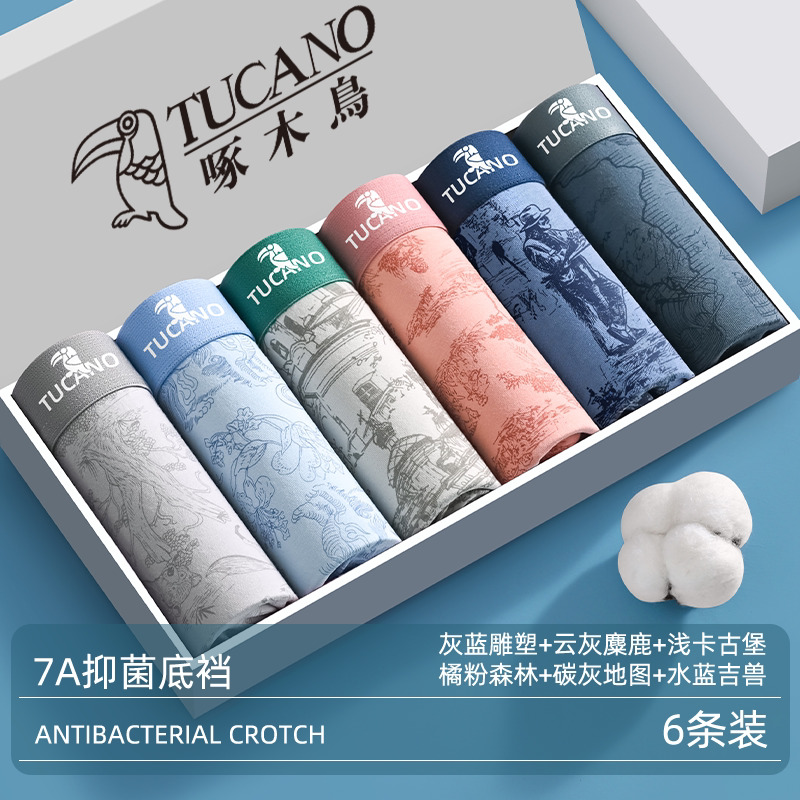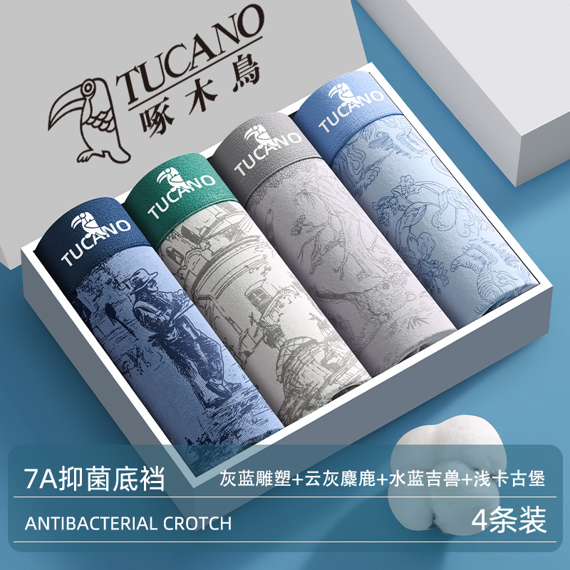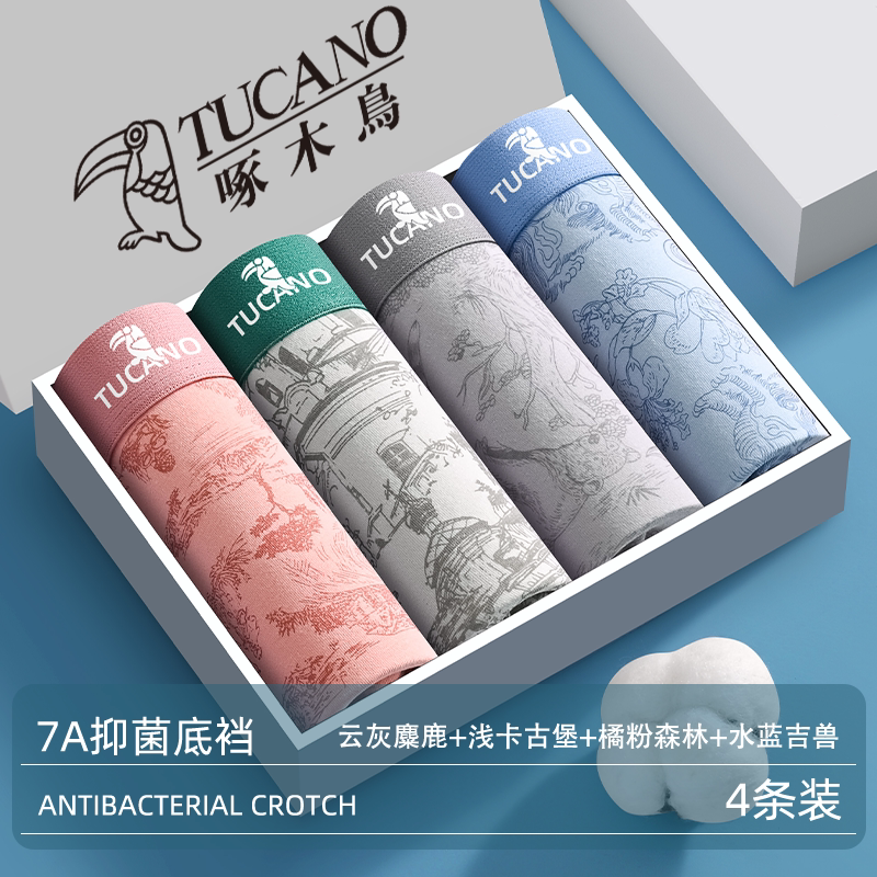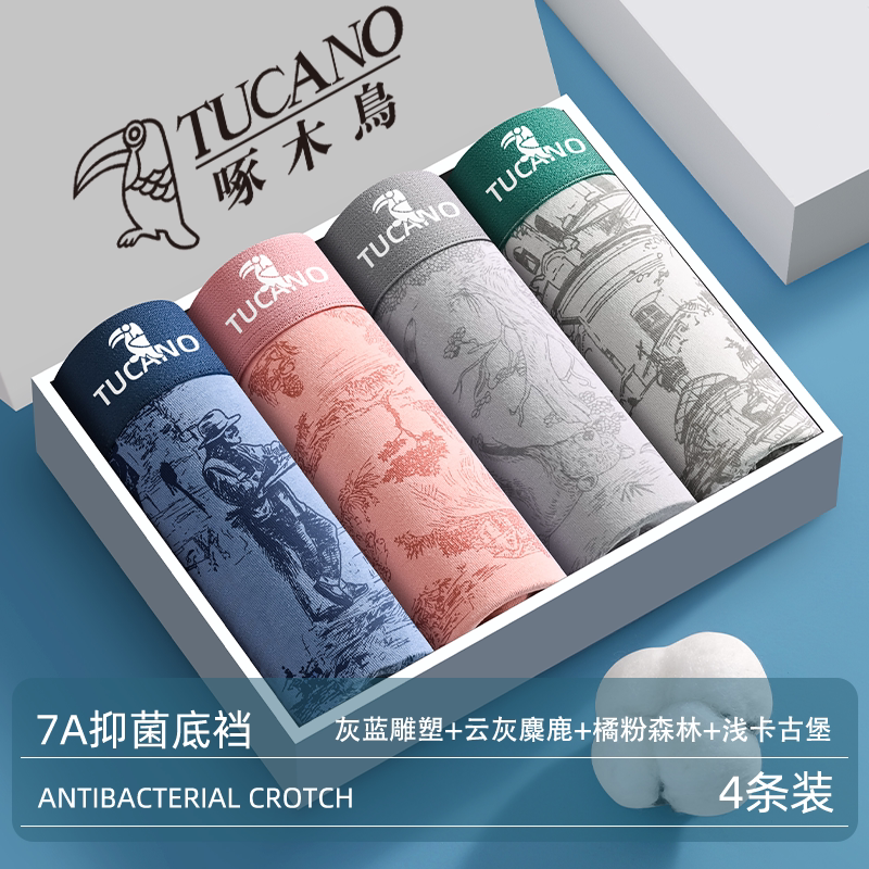 男士内裤男款纯棉男生平角裤啄木鸟官方旗舰店2026新款抗菌四角裤