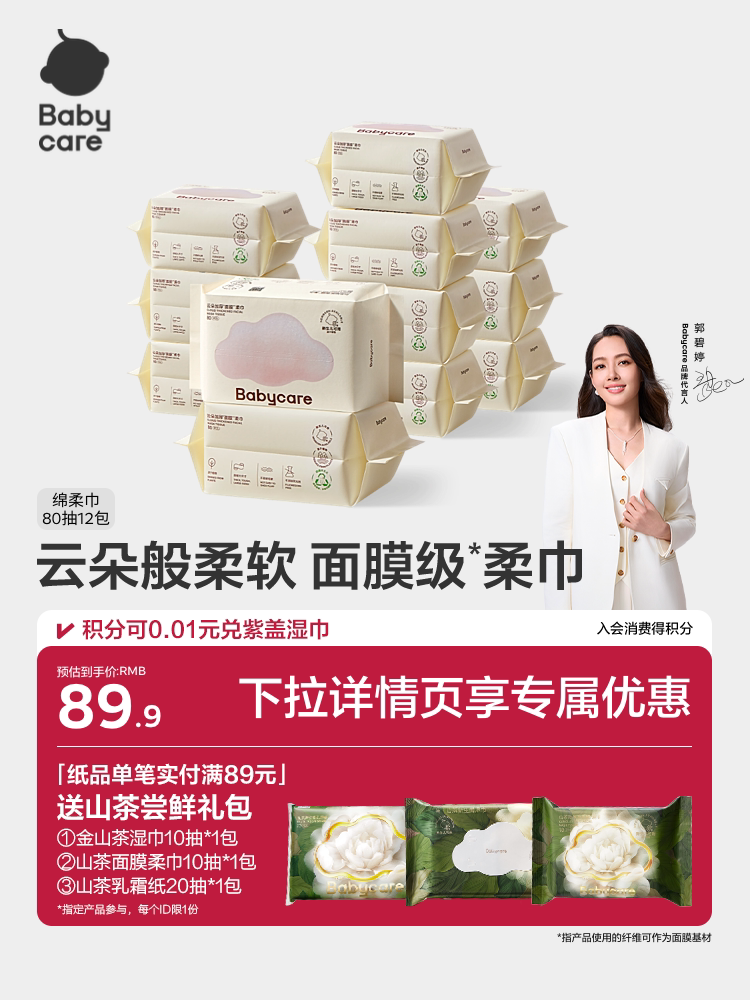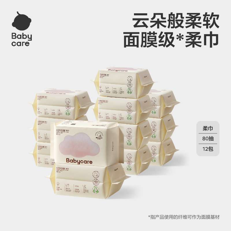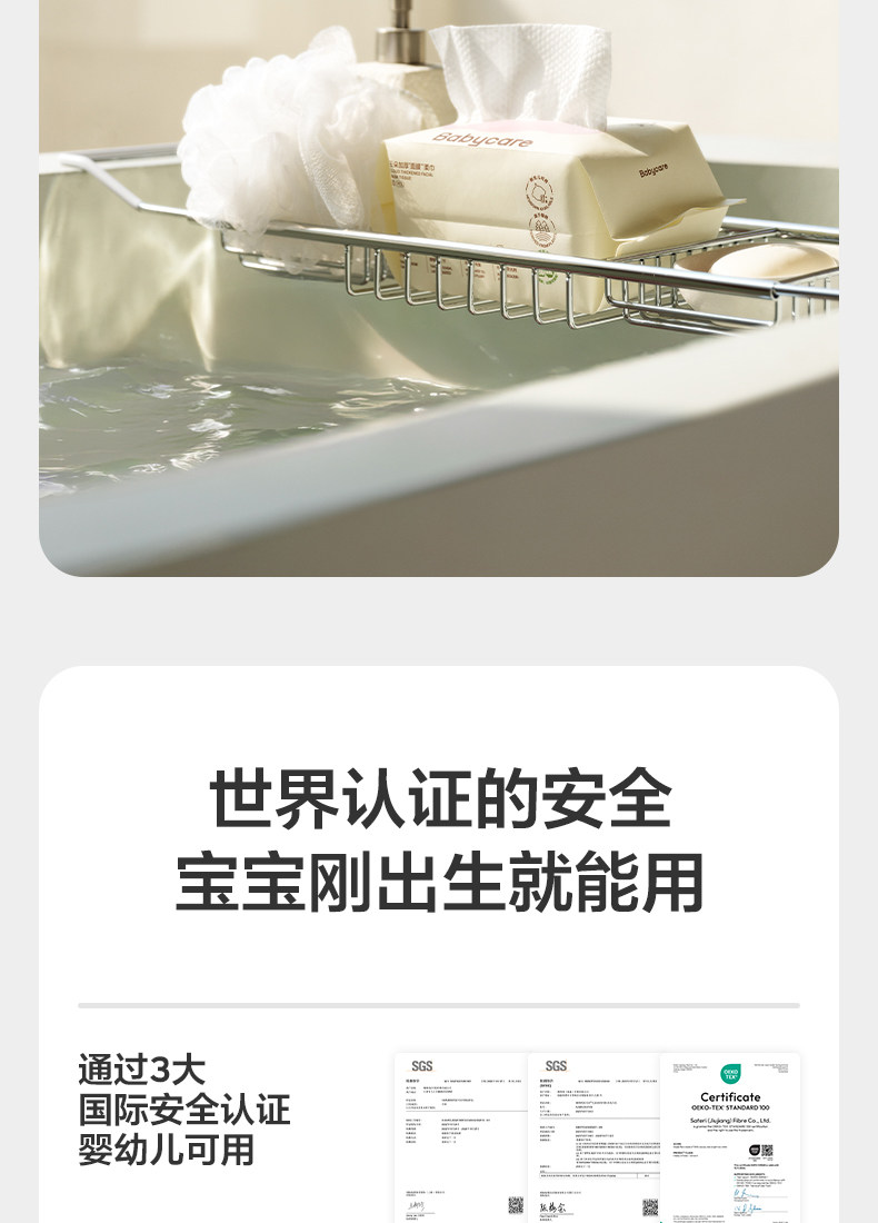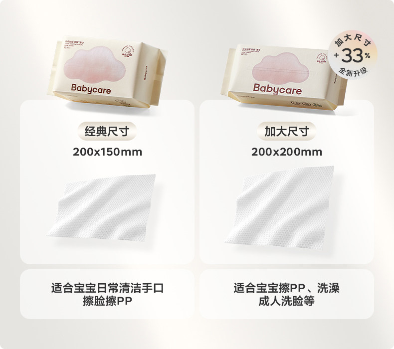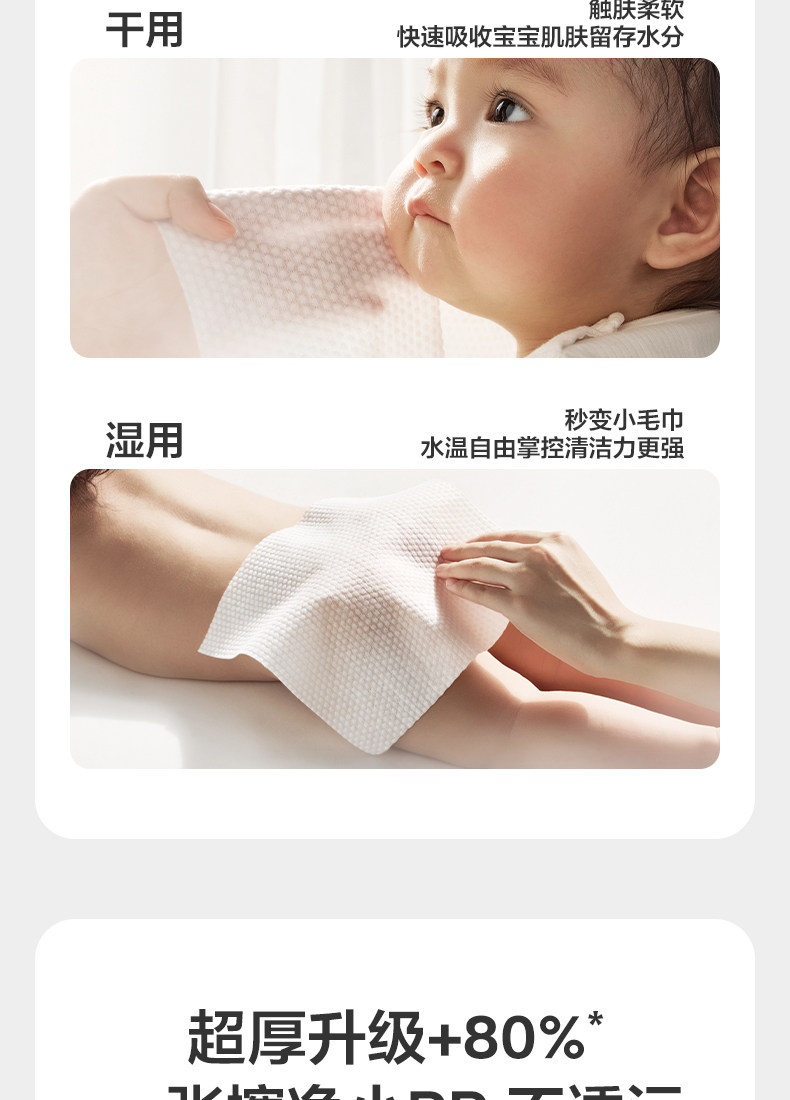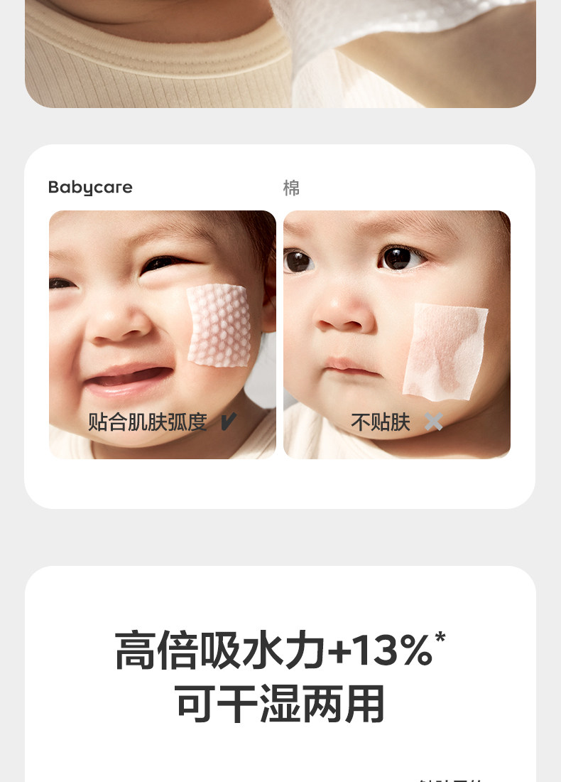 babycare小熊巾一次性非棉柔巾加大新生儿可用干湿两用洁面洗脸巾