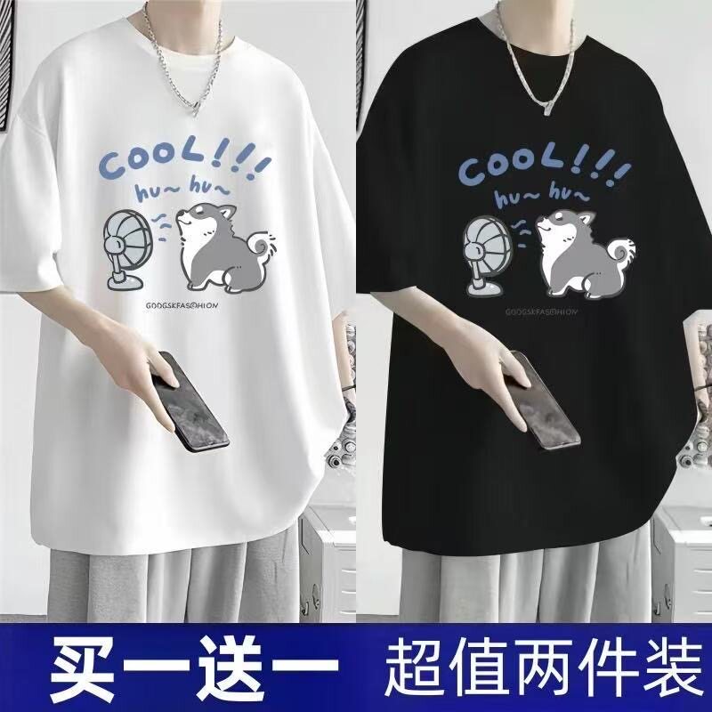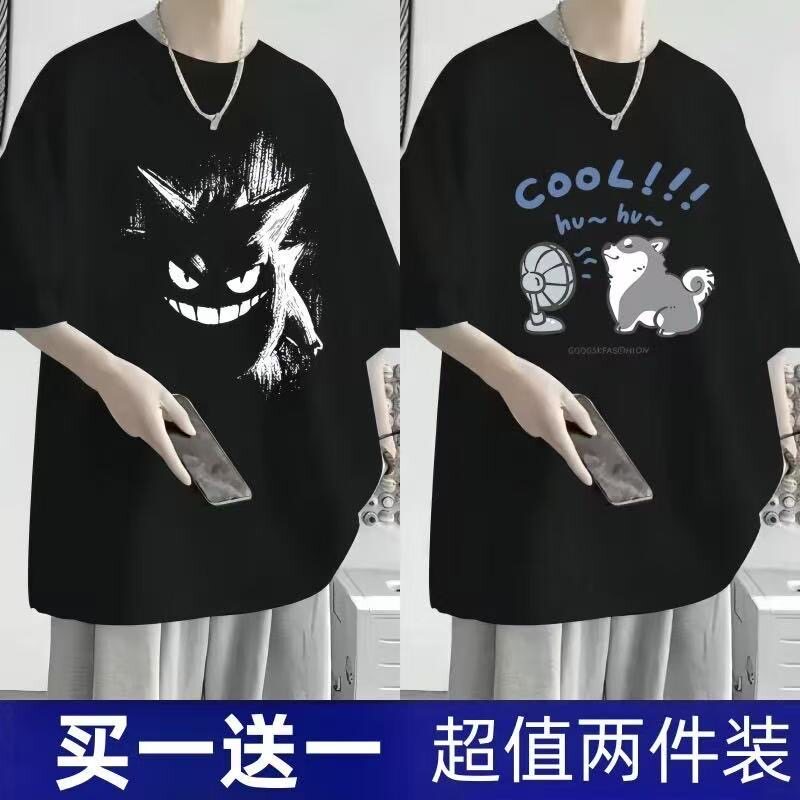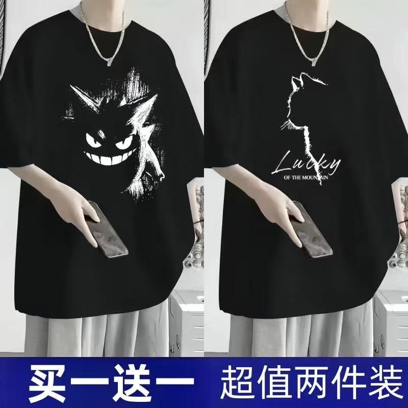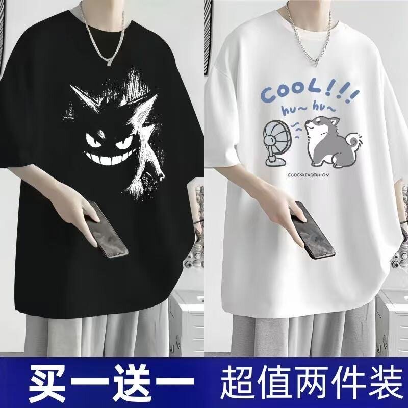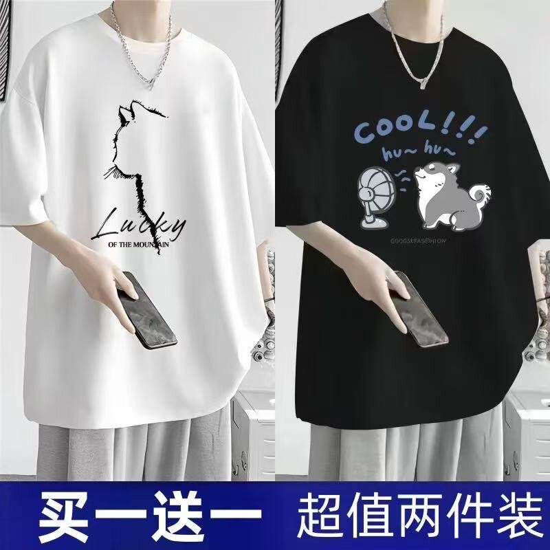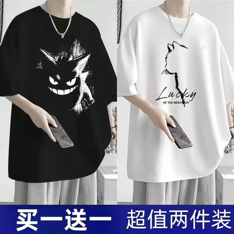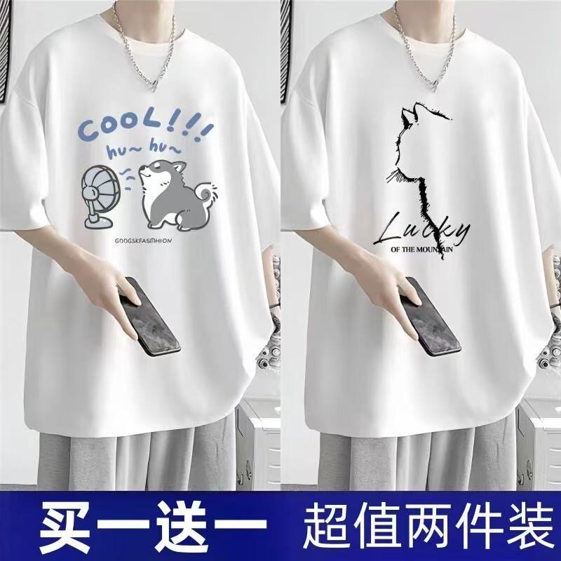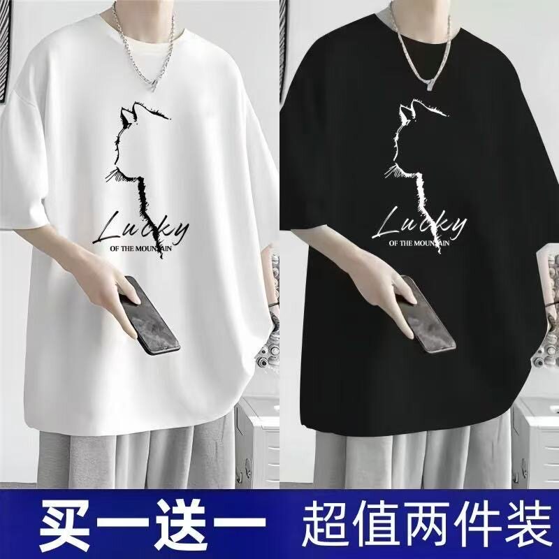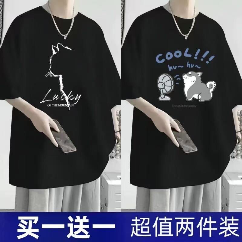 短袖t恤男夏季新款大码男装港风潮流宽松胖子五分袖学生显瘦上衣