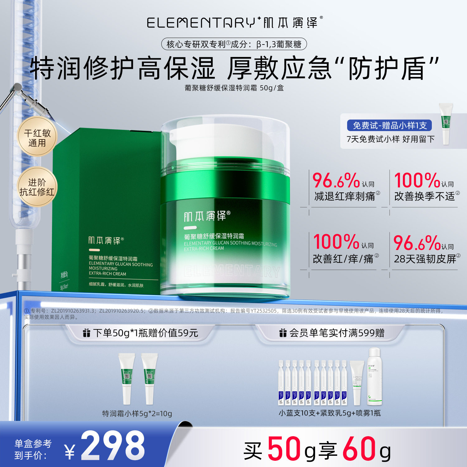 肌本演绎舒缓修护保湿特润霜水润敏肌β葡聚糖维护屏障受损清爽