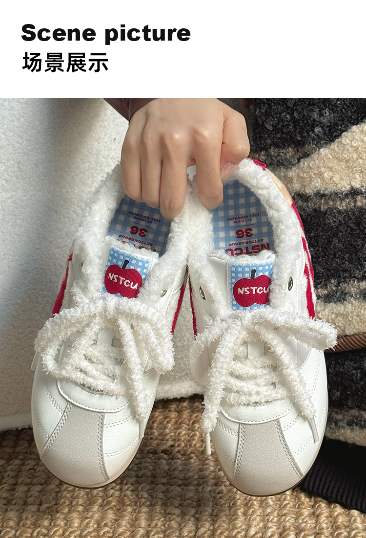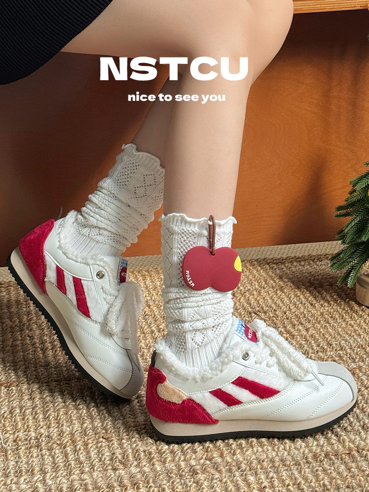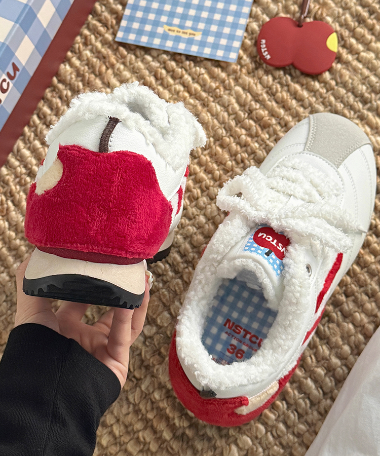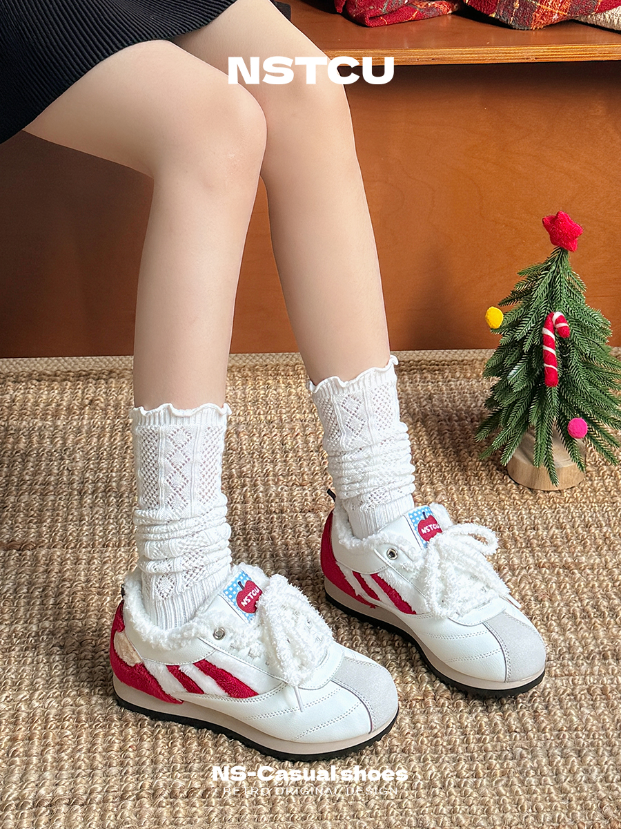 NSTCU一口苹果百搭运动鞋女2025秋冬爆款加绒小白鞋厚底休闲板鞋
