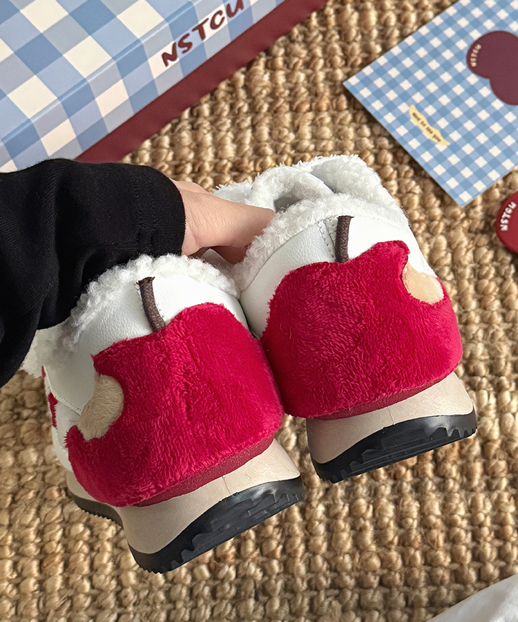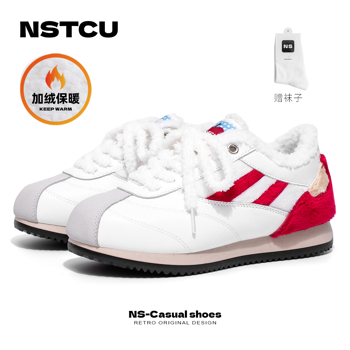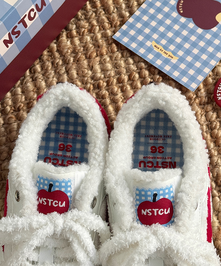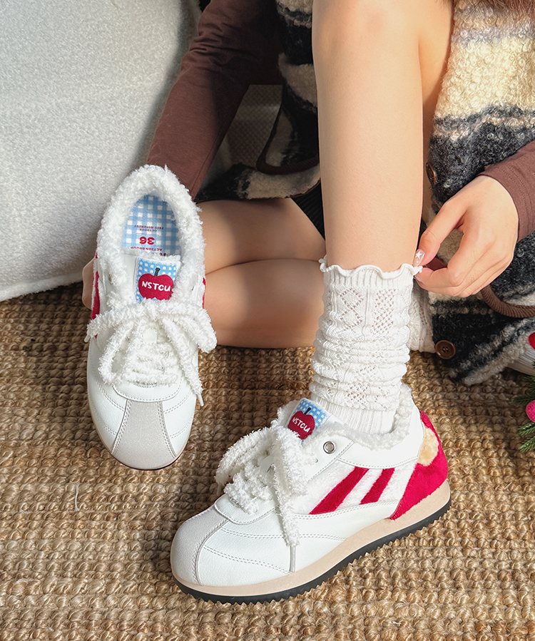 NSTCU一口苹果百搭运动鞋女2025秋冬爆款加绒小白鞋厚底休闲板鞋