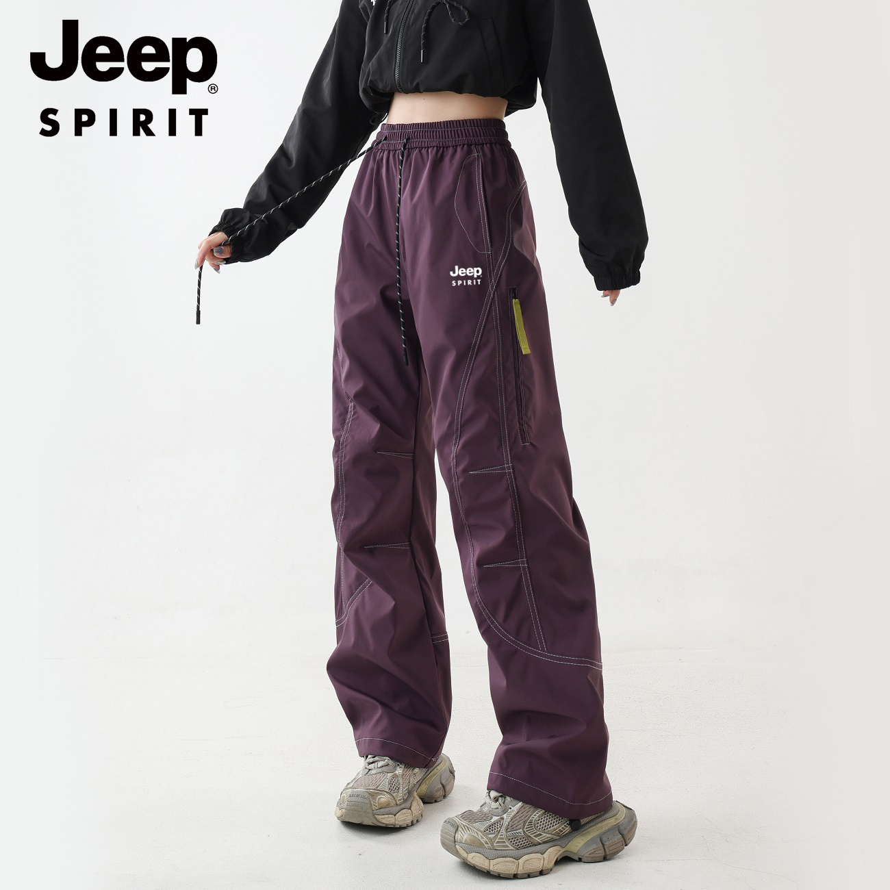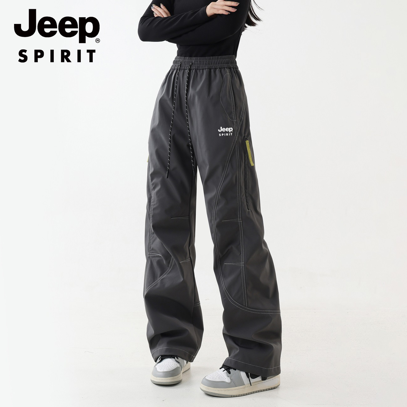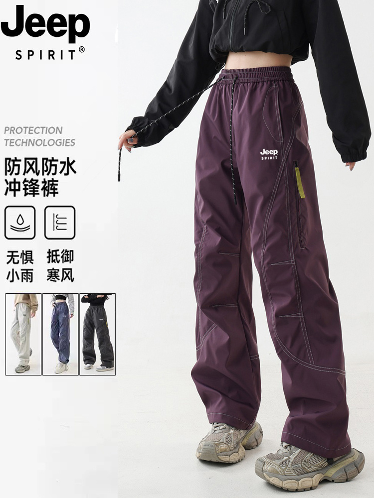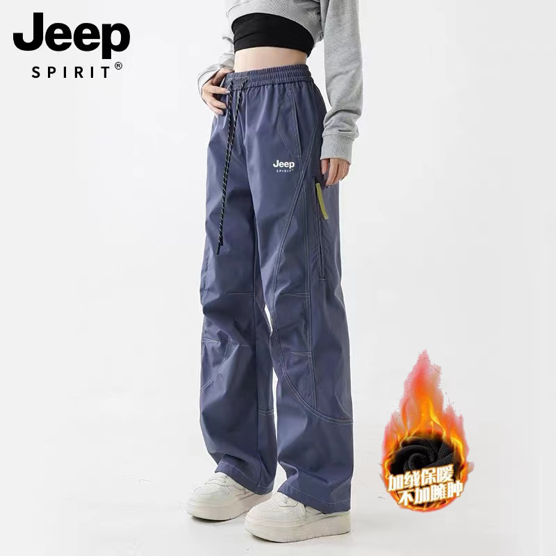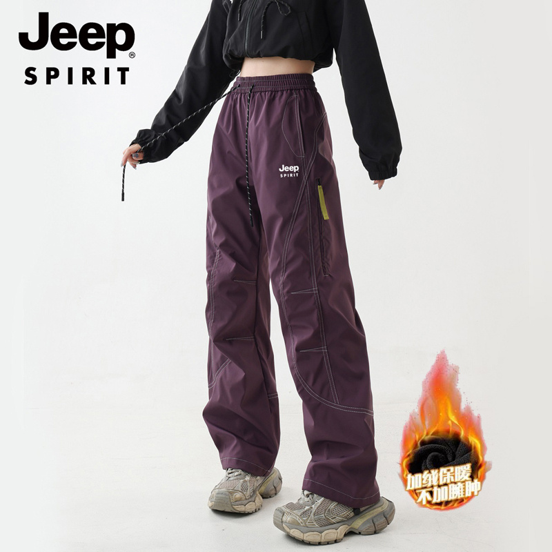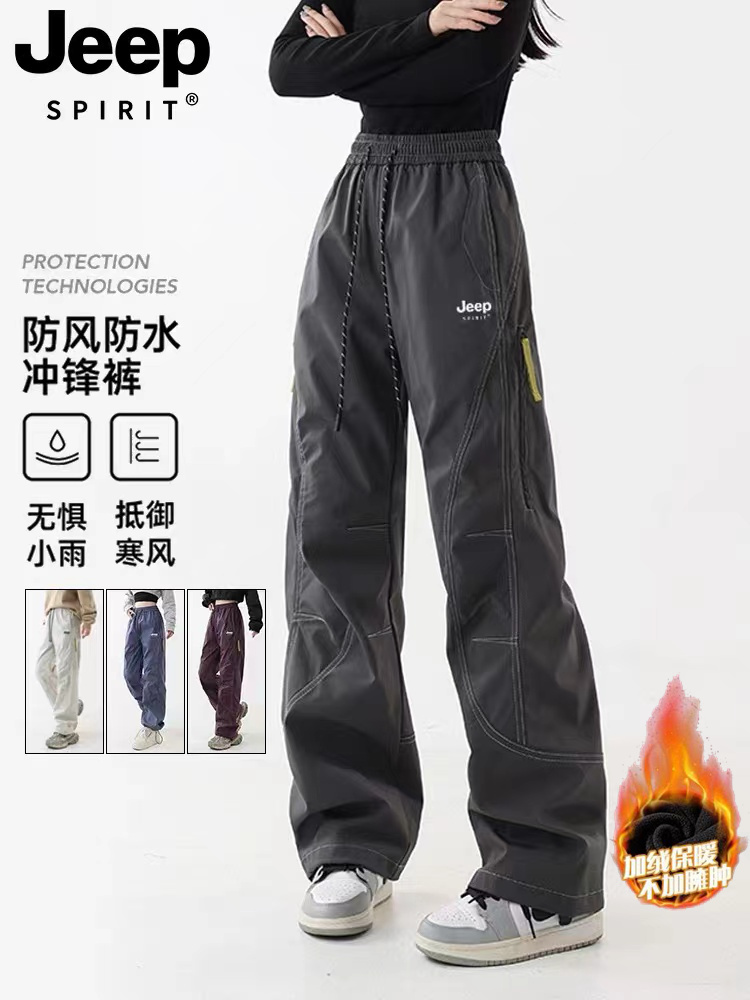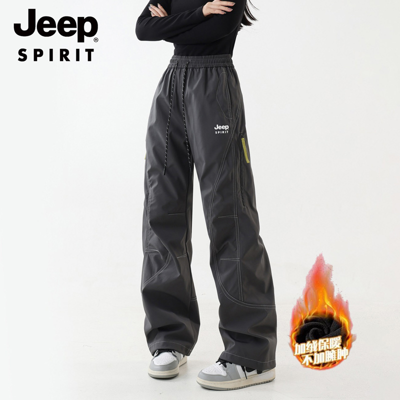 JEEP SPIRIT 加绒加厚冲锋裤男女秋冬宽松直筒户外运动登山工装裤