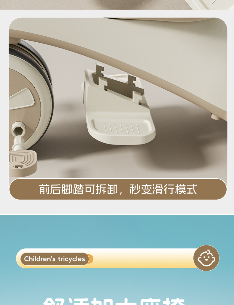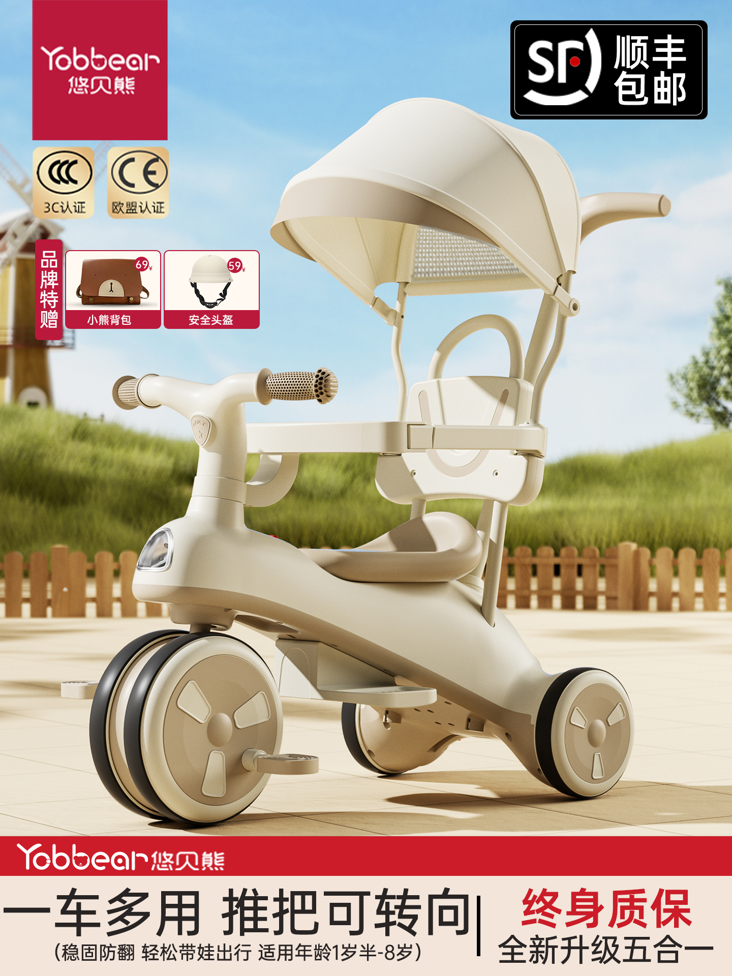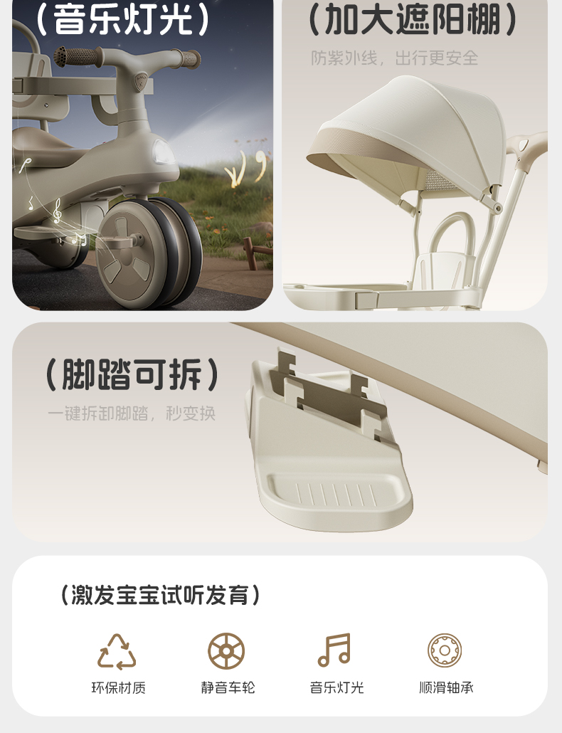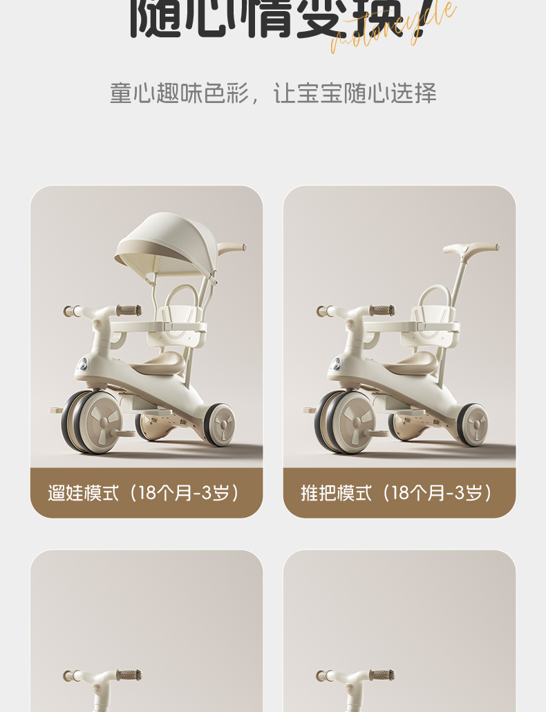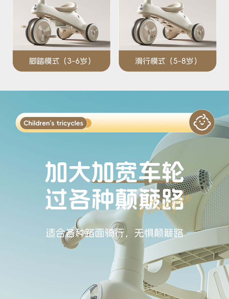 儿童三轮车脚踏车幼婴儿推车自行车玩具车男女宝宝滑行平衡车遛娃