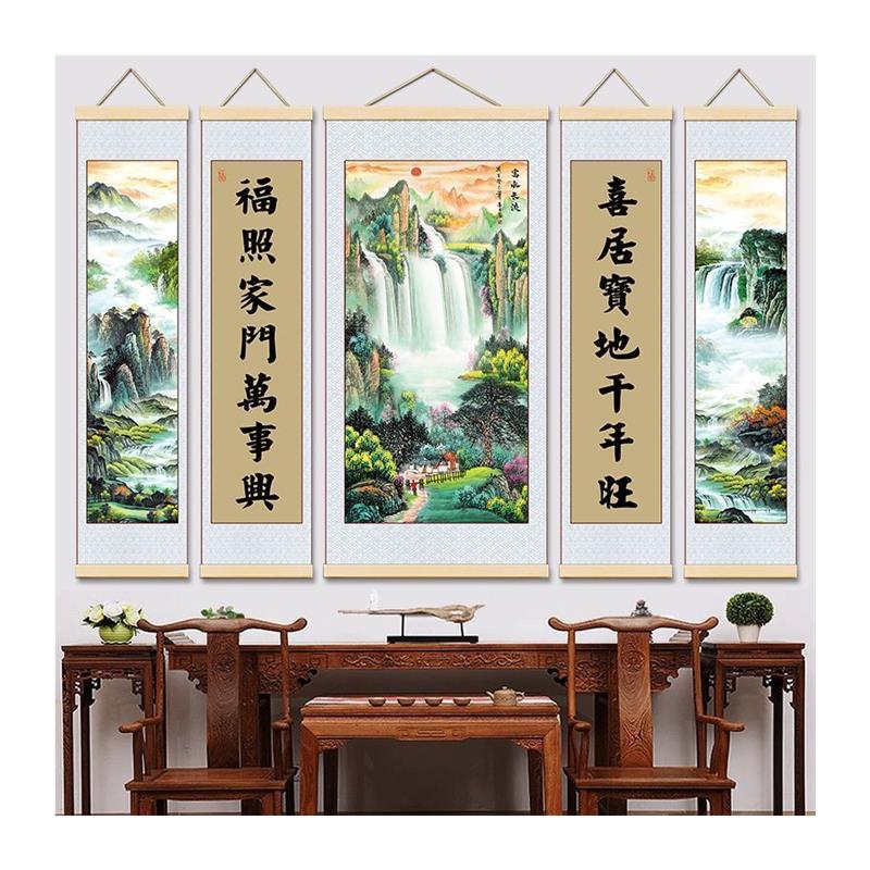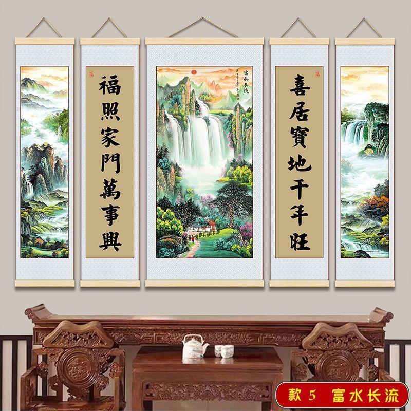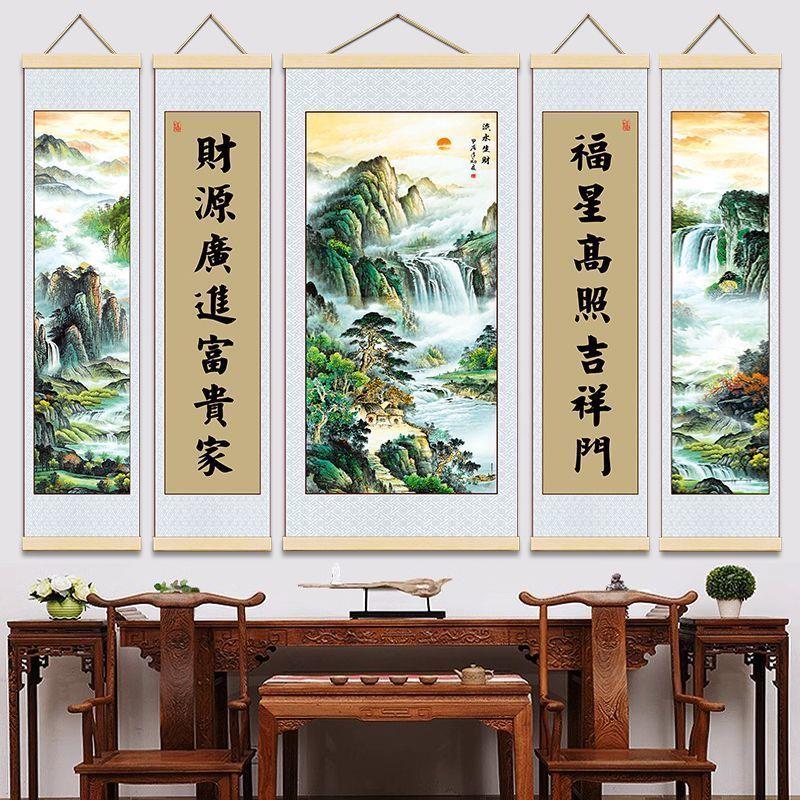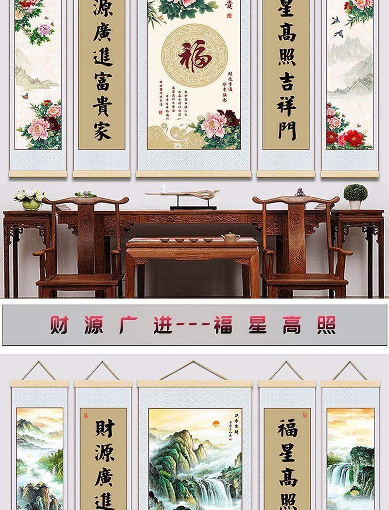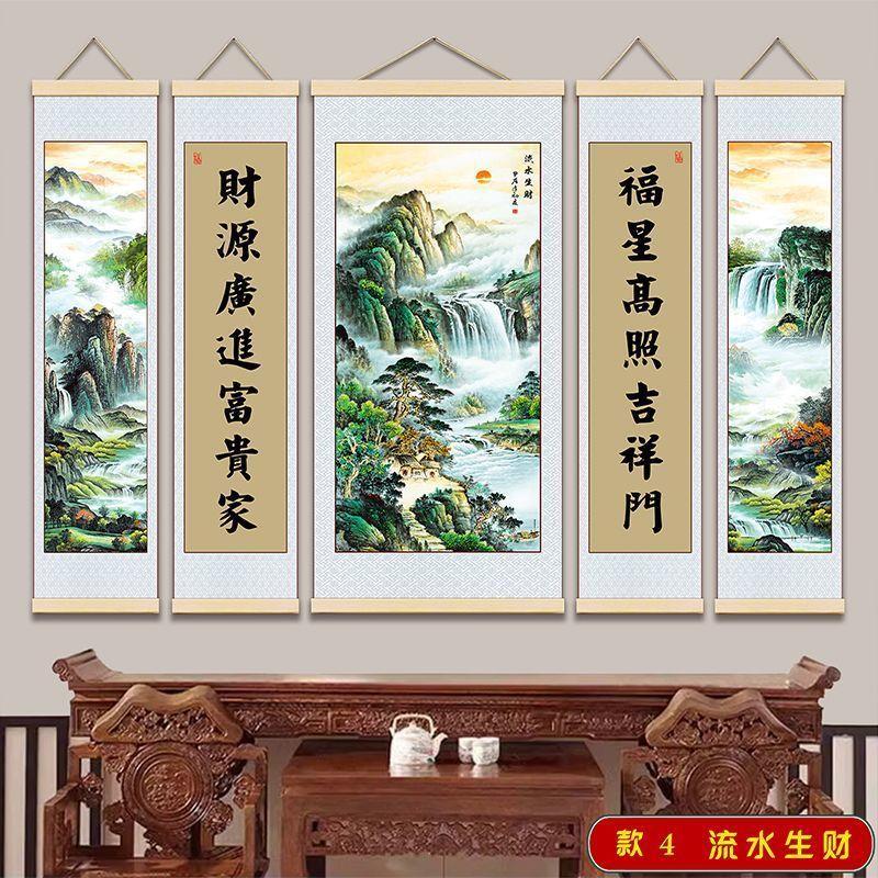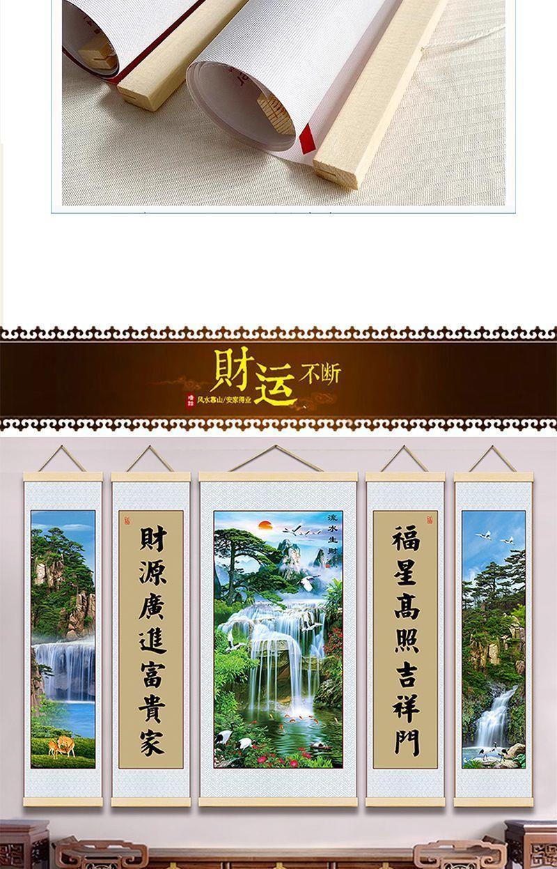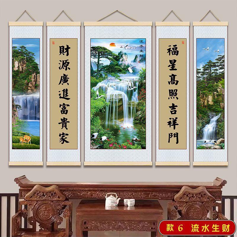 农村中堂画新款流水生财山水客厅招财挂画老房子家和牡丹装饰画