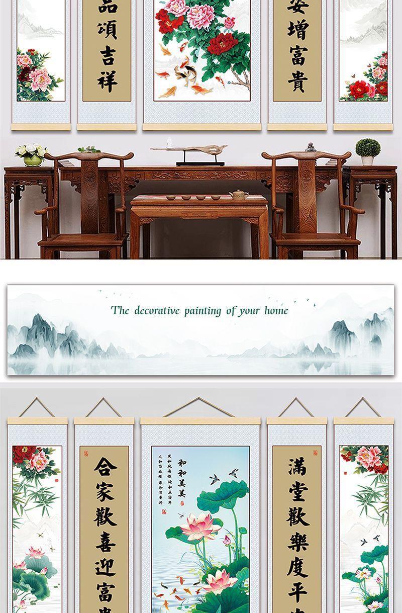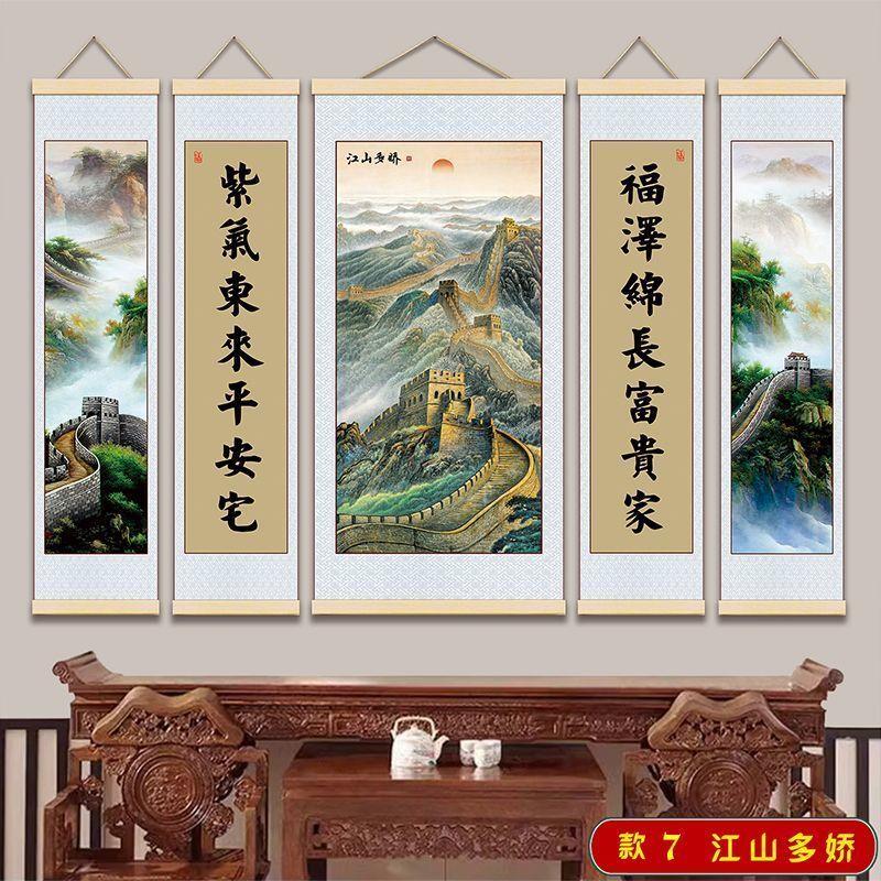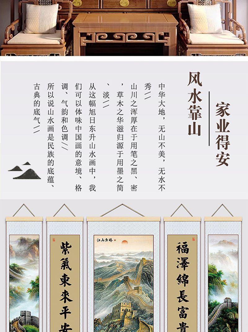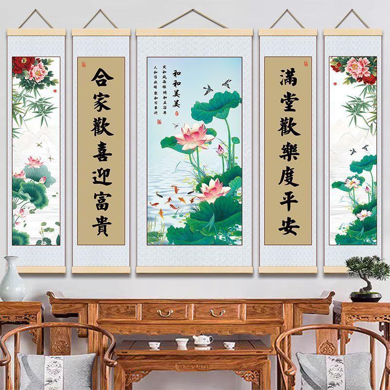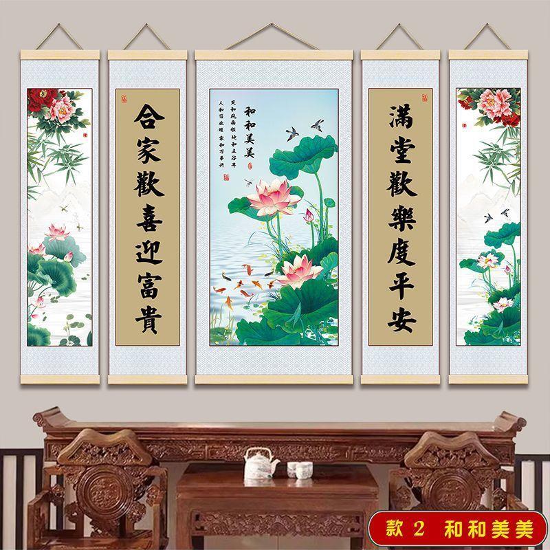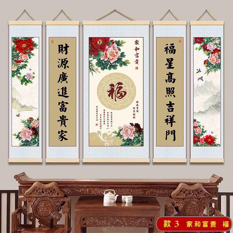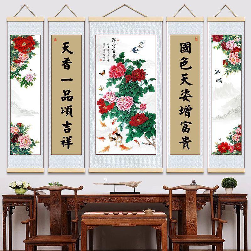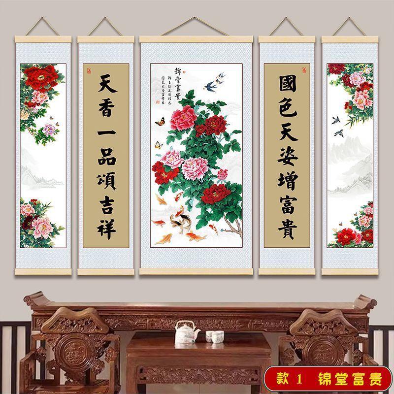 农村中堂画新款流水生财山水客厅招财挂画老房子家和牡丹装饰画