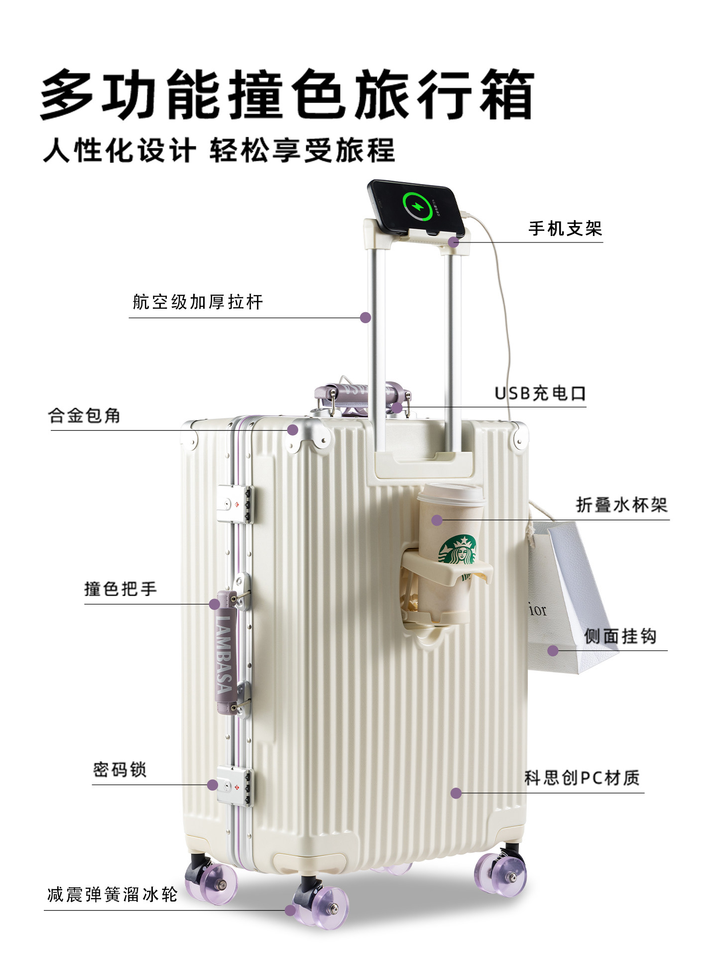 2026新款行李箱20寸女生高颜值铝框旅行箱可登机密码拉杆箱子男24