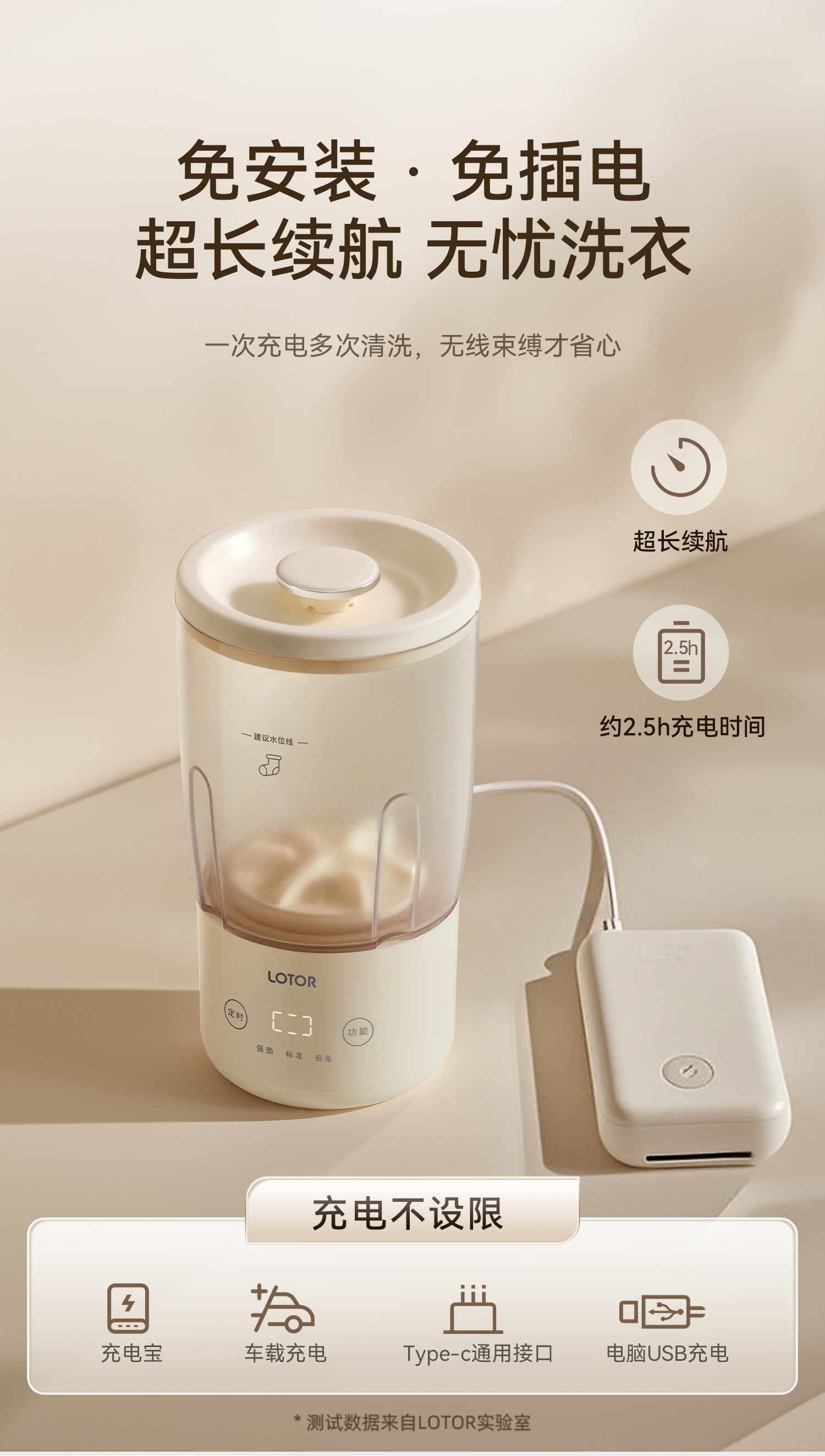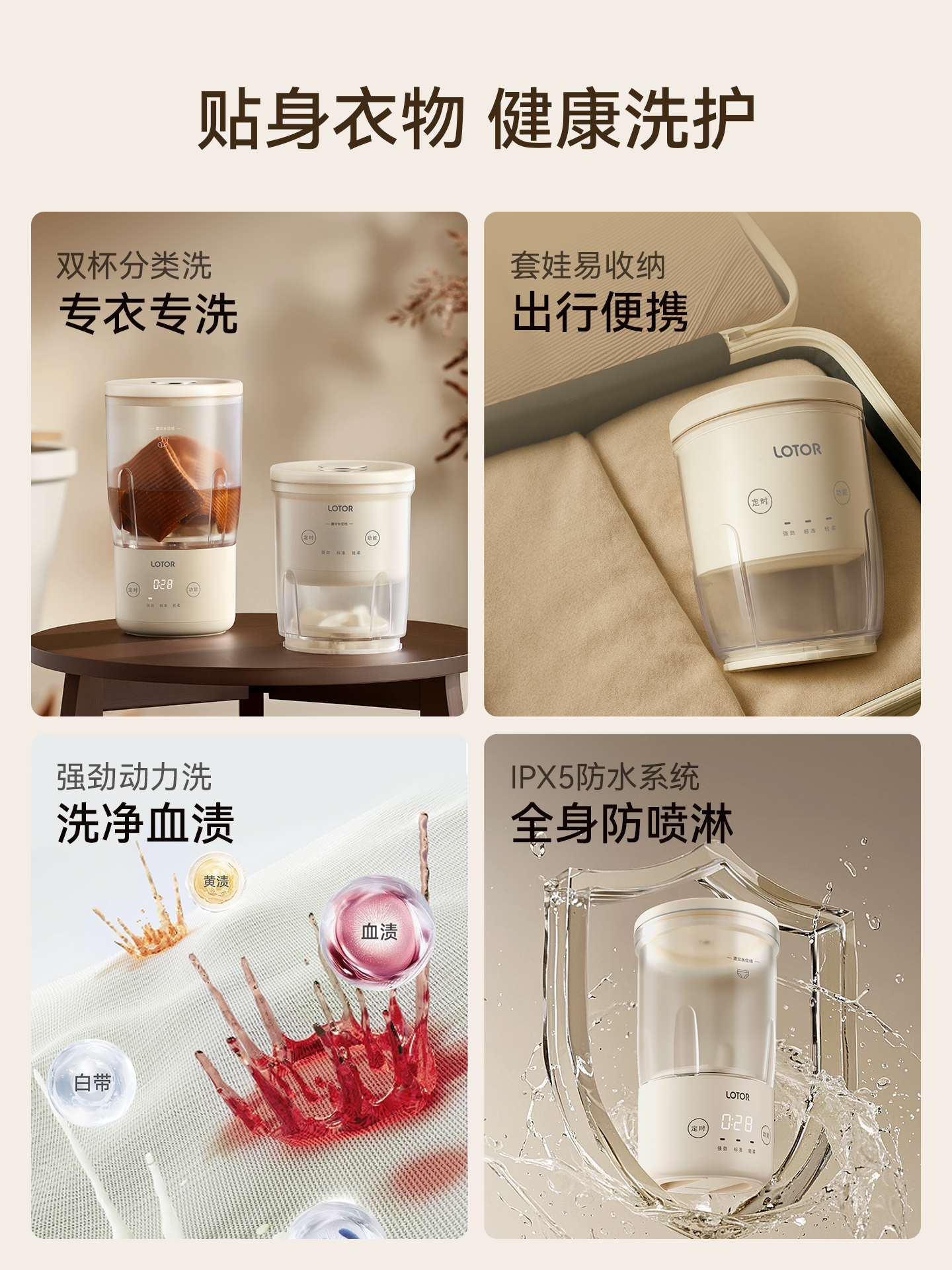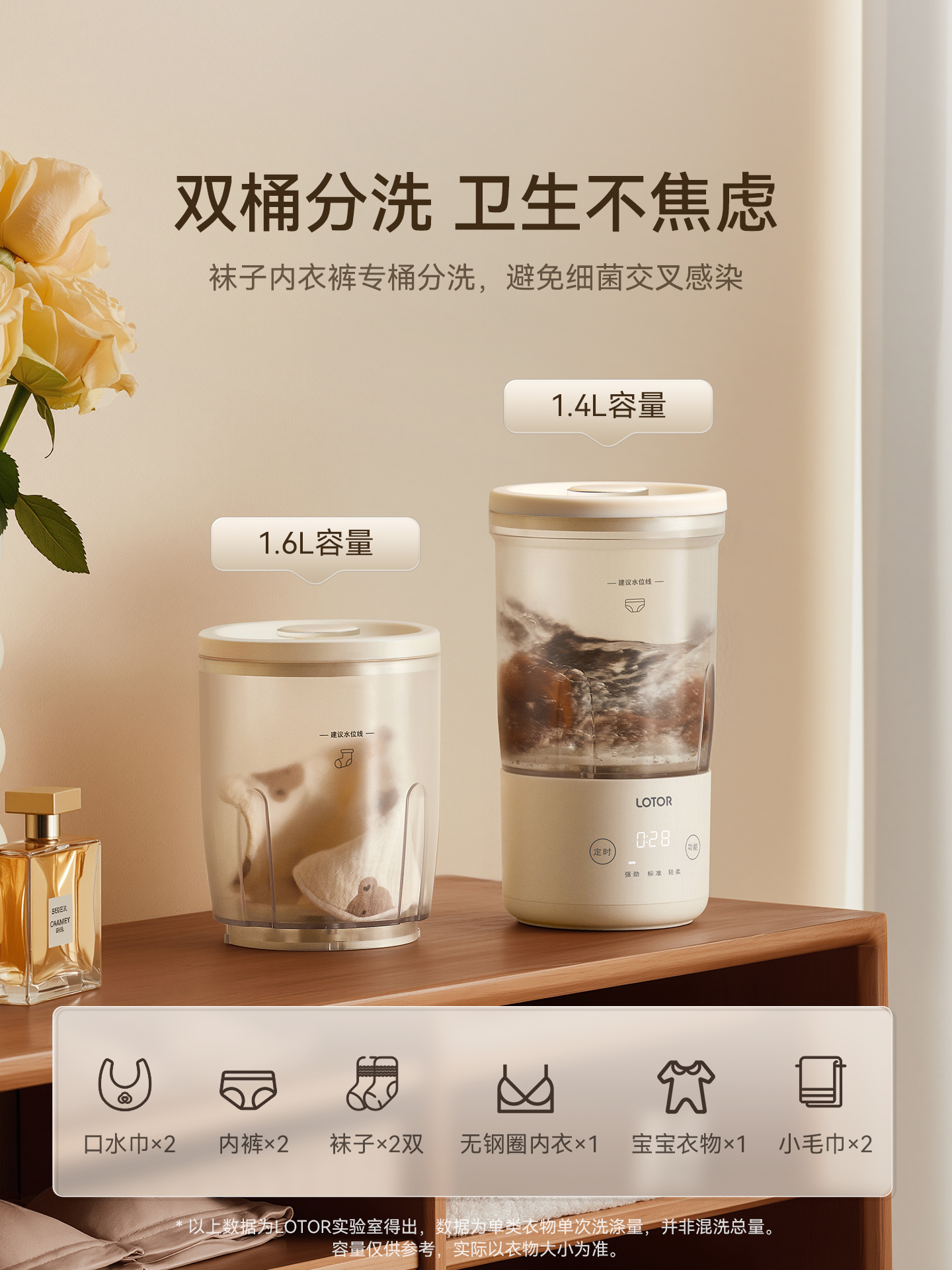 lotor徕多双杯洗衣机无线迷你洗内衣内裤袜子专用小型便携洗衣杯