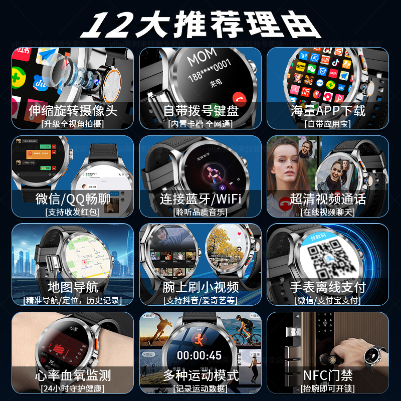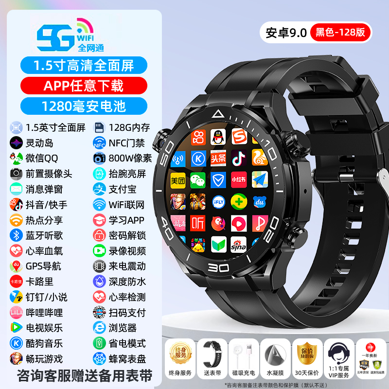 【官方旗舰·双系统】圆屏华强北WATCH GT5智能电话手表可插卡WiFi下载APP多功能NFC成人青少年初高中生专用