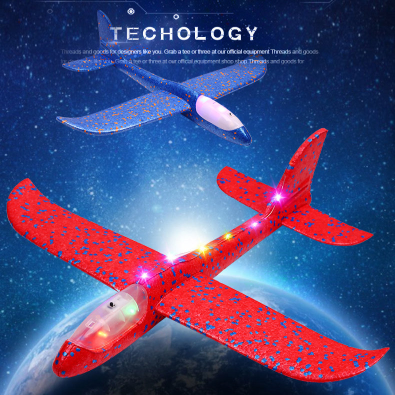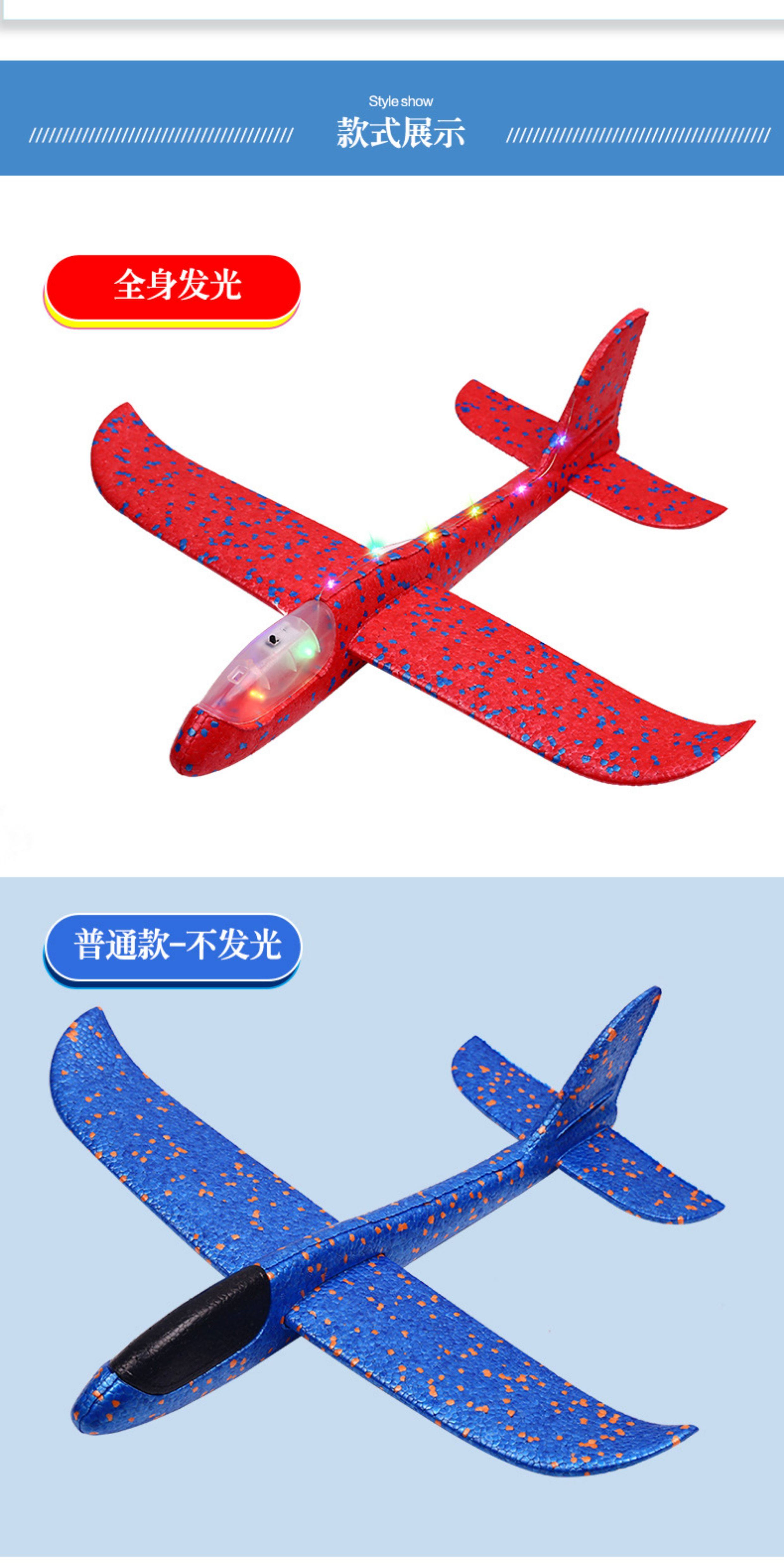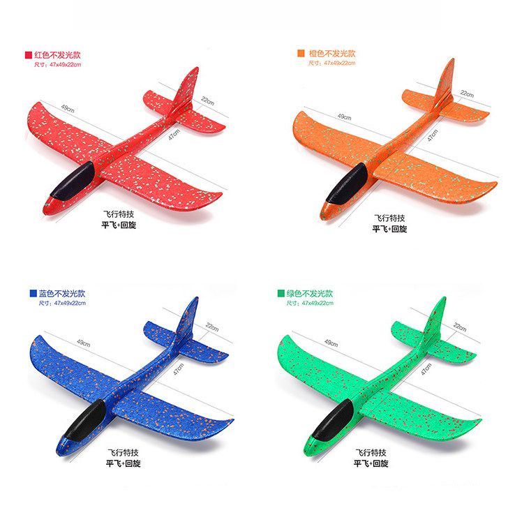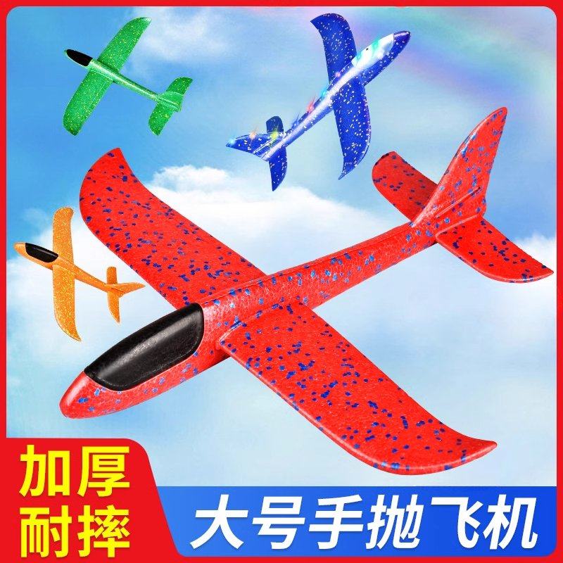 49cm大号手抛飞机玩具儿童泡沫飞机回旋投掷滑翔发光户外滑行耐摔