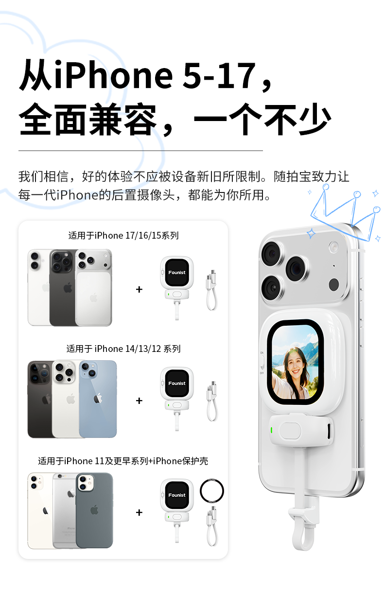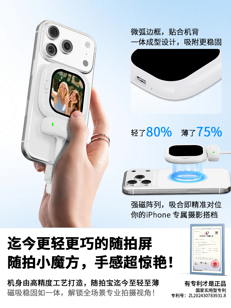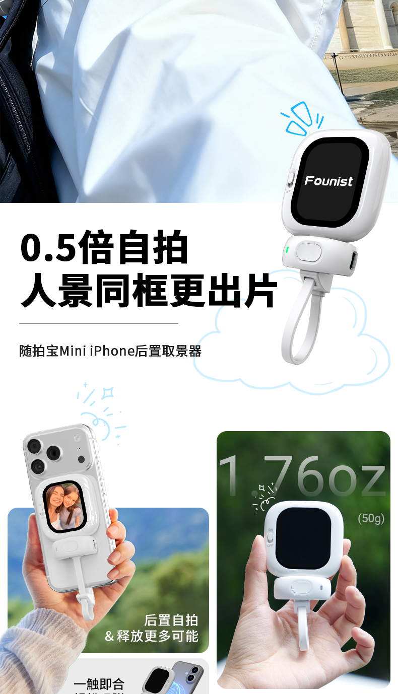CYNOVA Founist随拍宝适用于iPhone苹果17手机无线自拍显示屏磁吸后置拍照自拍神器投屏器便携礼物女生高级感