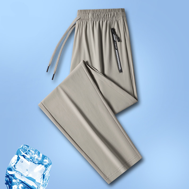高弹夏季冰丝裤子男薄款宽松速干透气直筒裤束脚运动休闲裤长裤