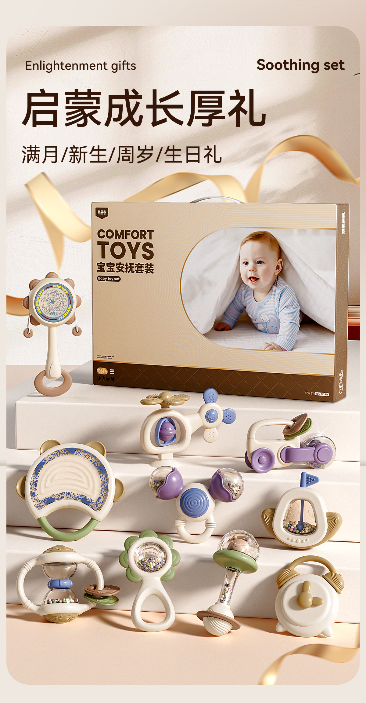 新生儿满月礼盒婴儿套装摇铃玩具宝宝早教可啃咬0到6个月见面礼物
