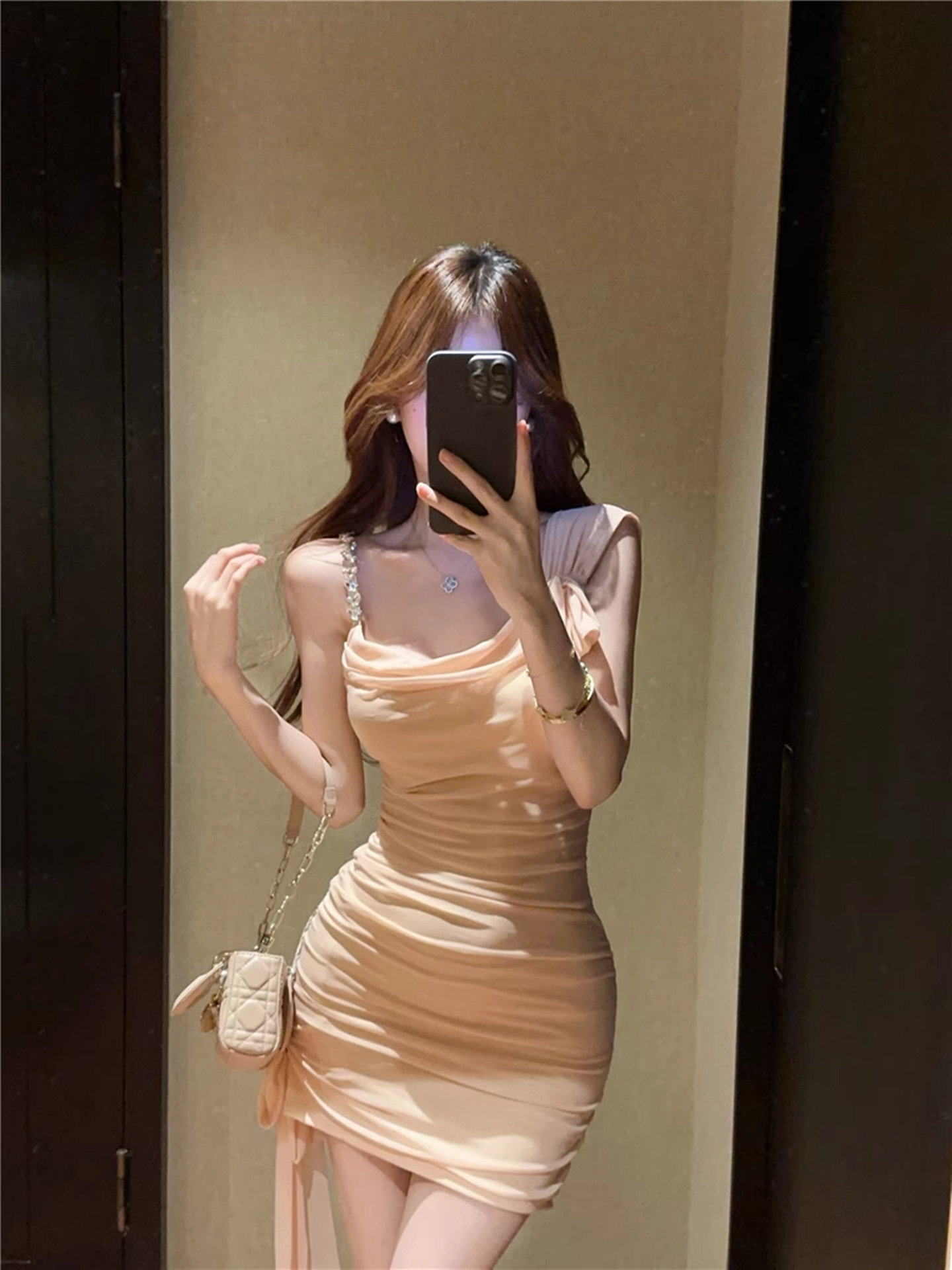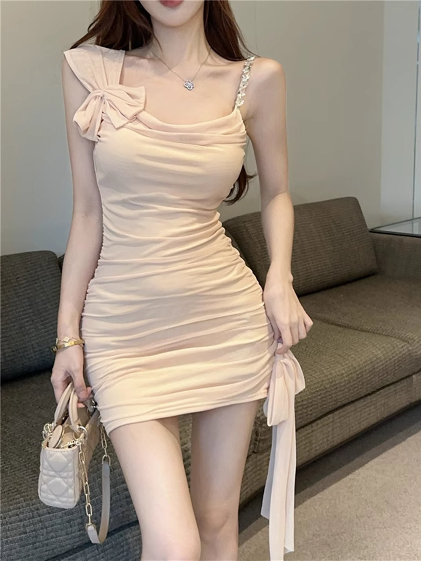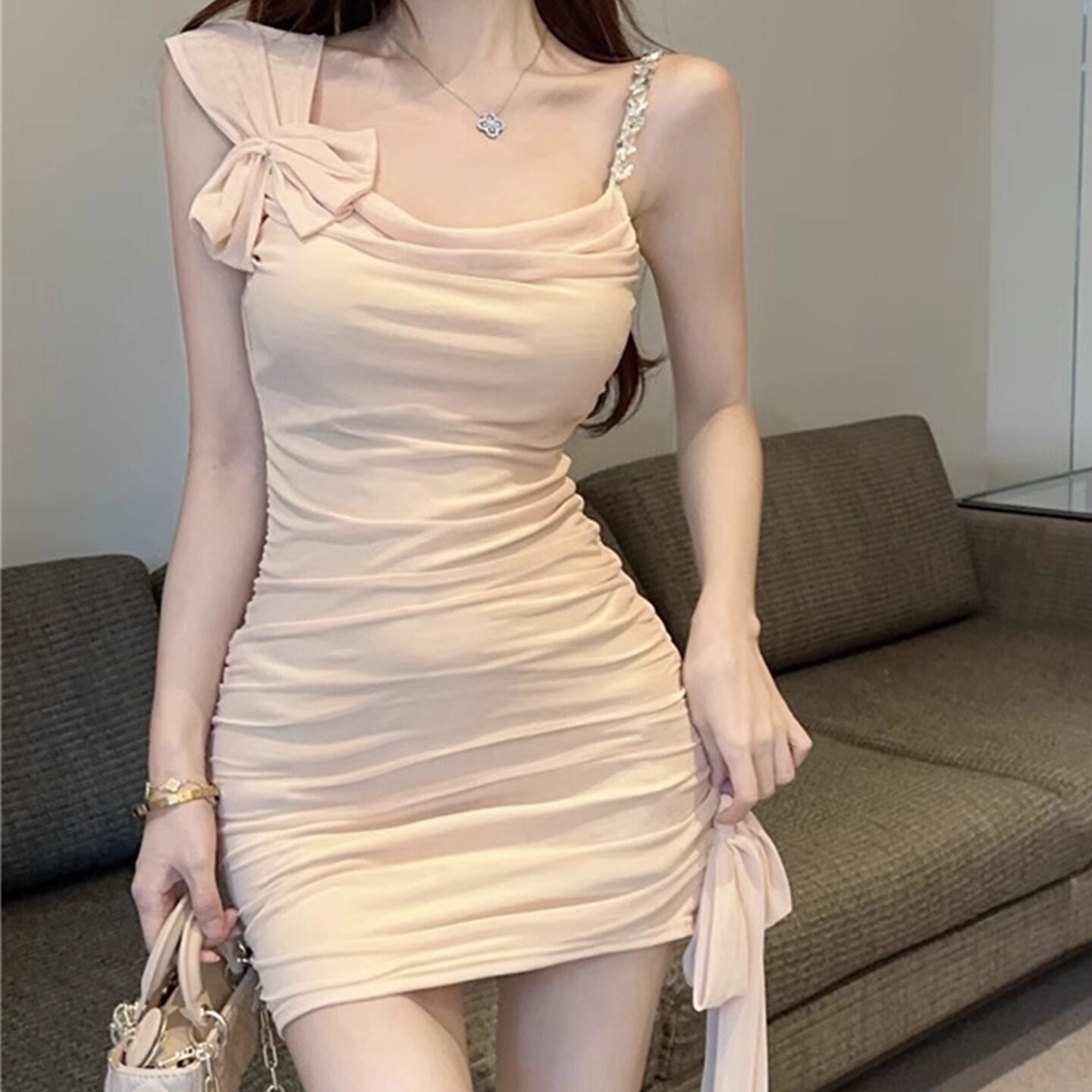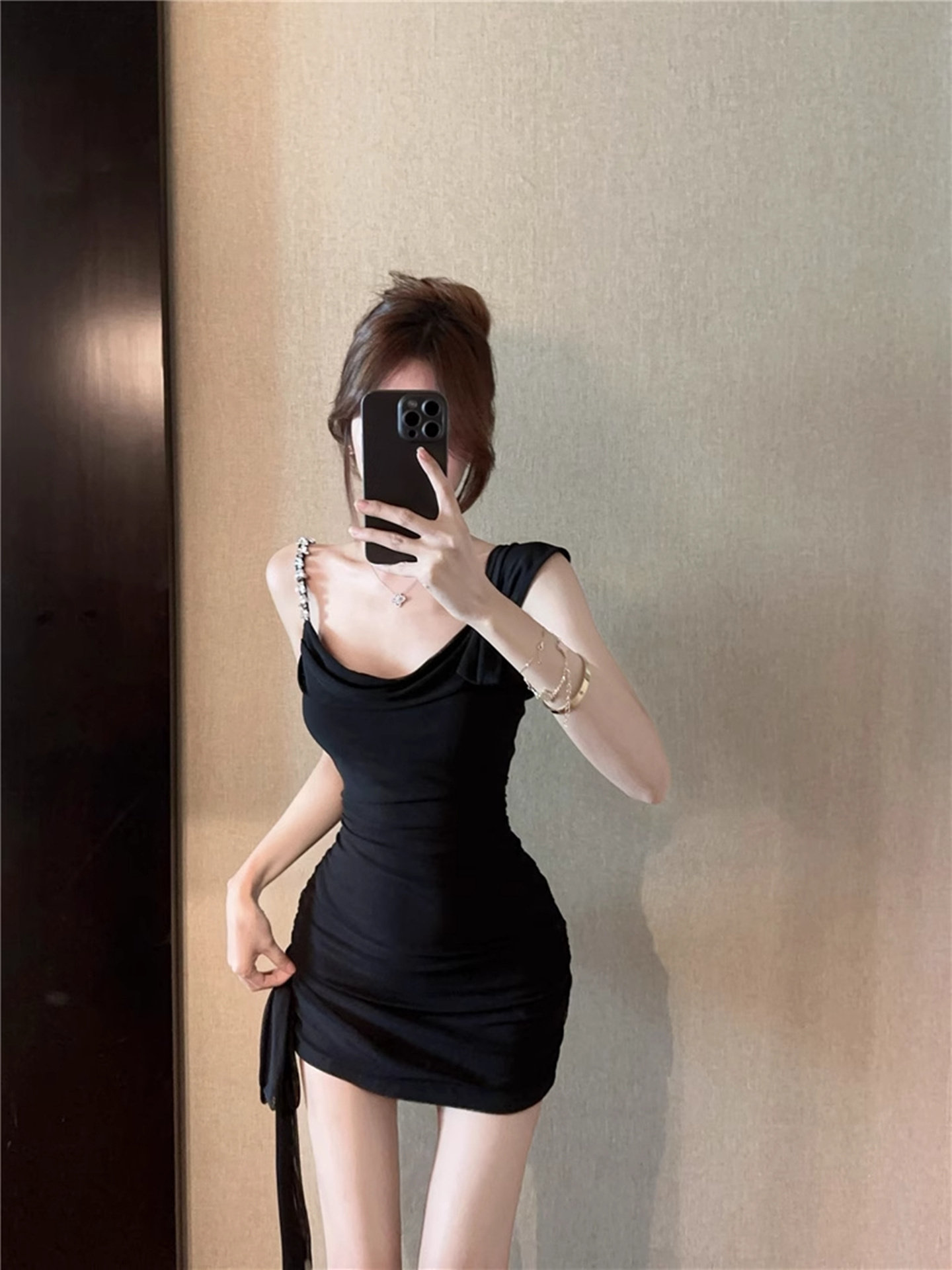 性感荡领不规则吊带礼服小黑裙女法式高级感气质连衣裙包臀短裙夏
