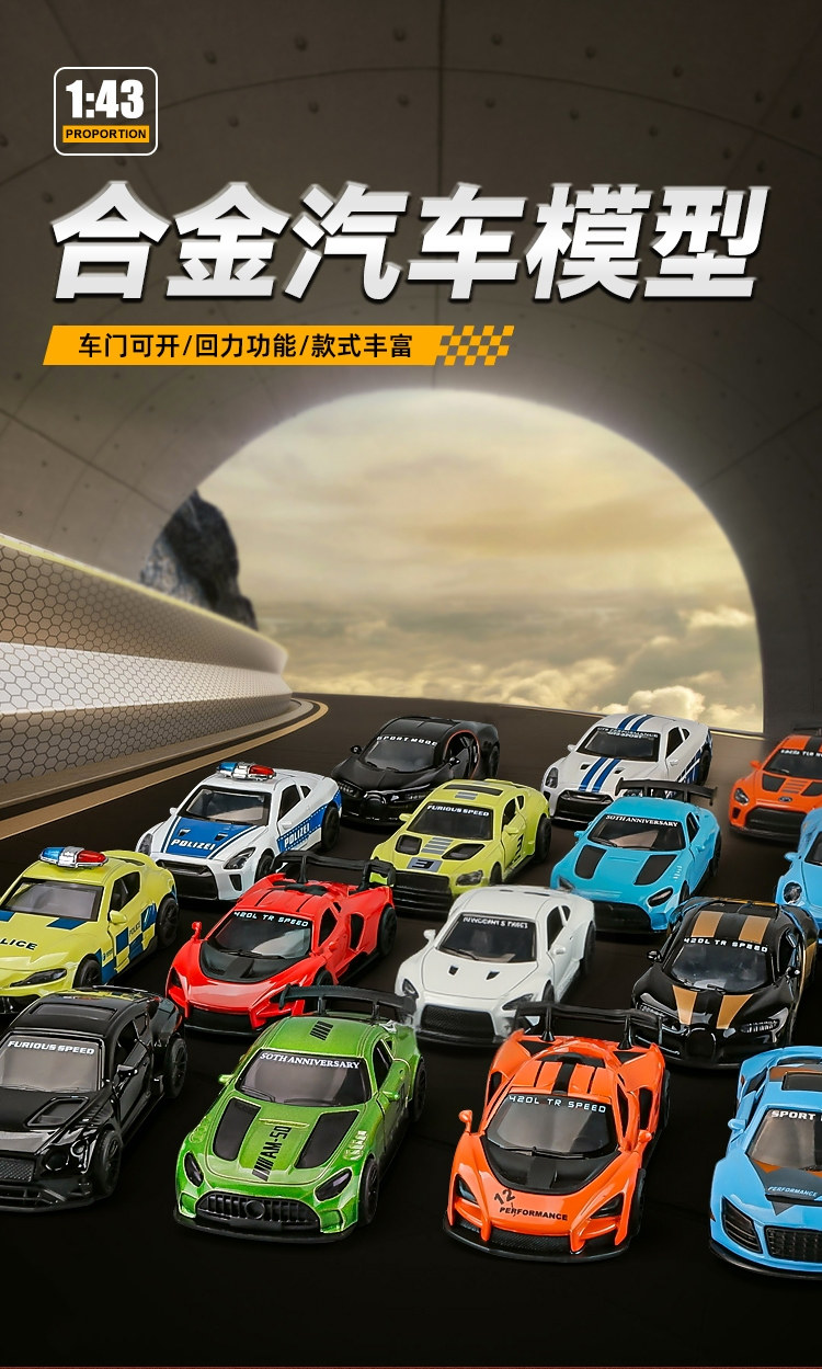 卡威合金小汽车玩具男孩玩具车模型儿童回力小车仿真跑车迷你赛车