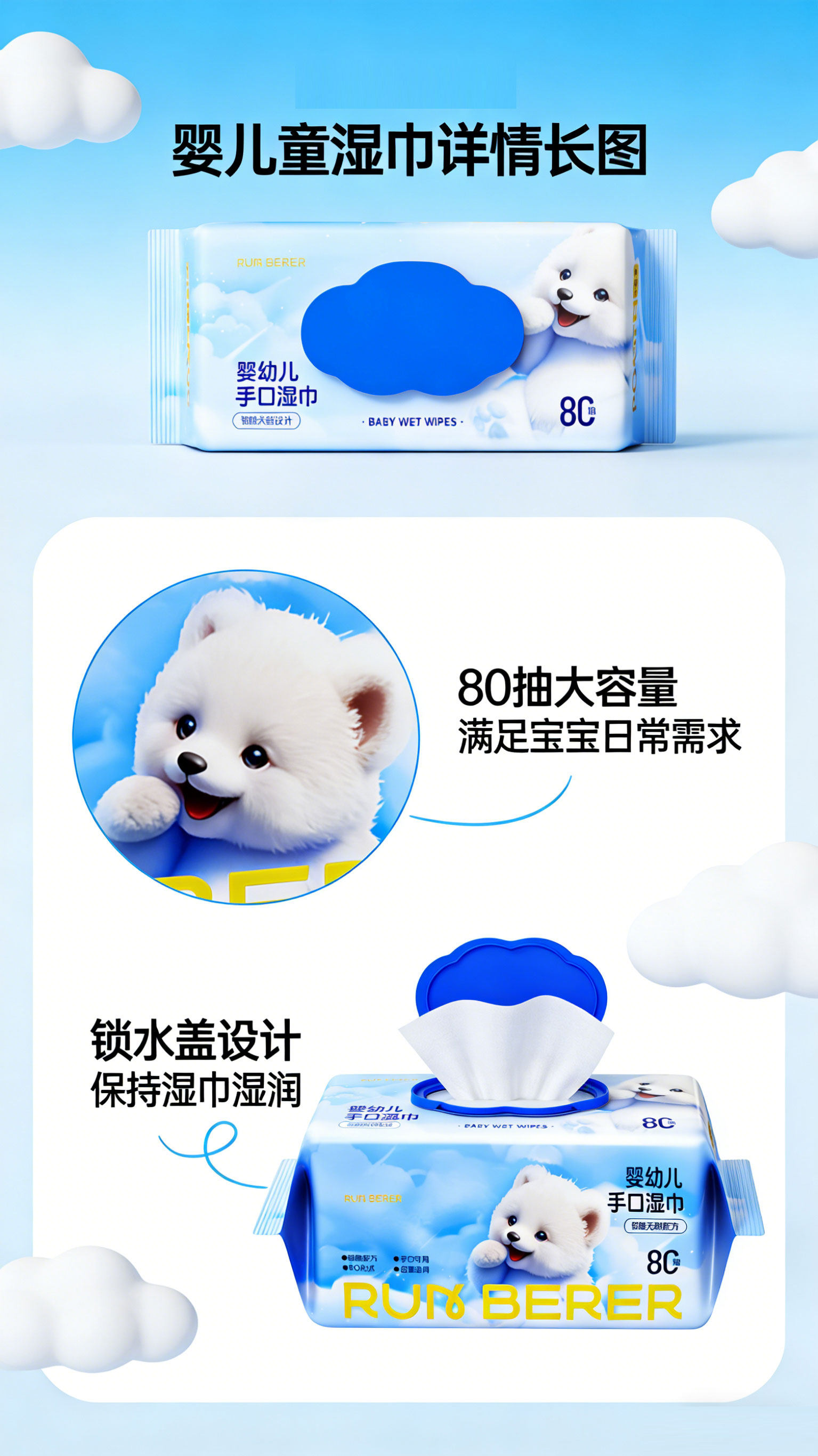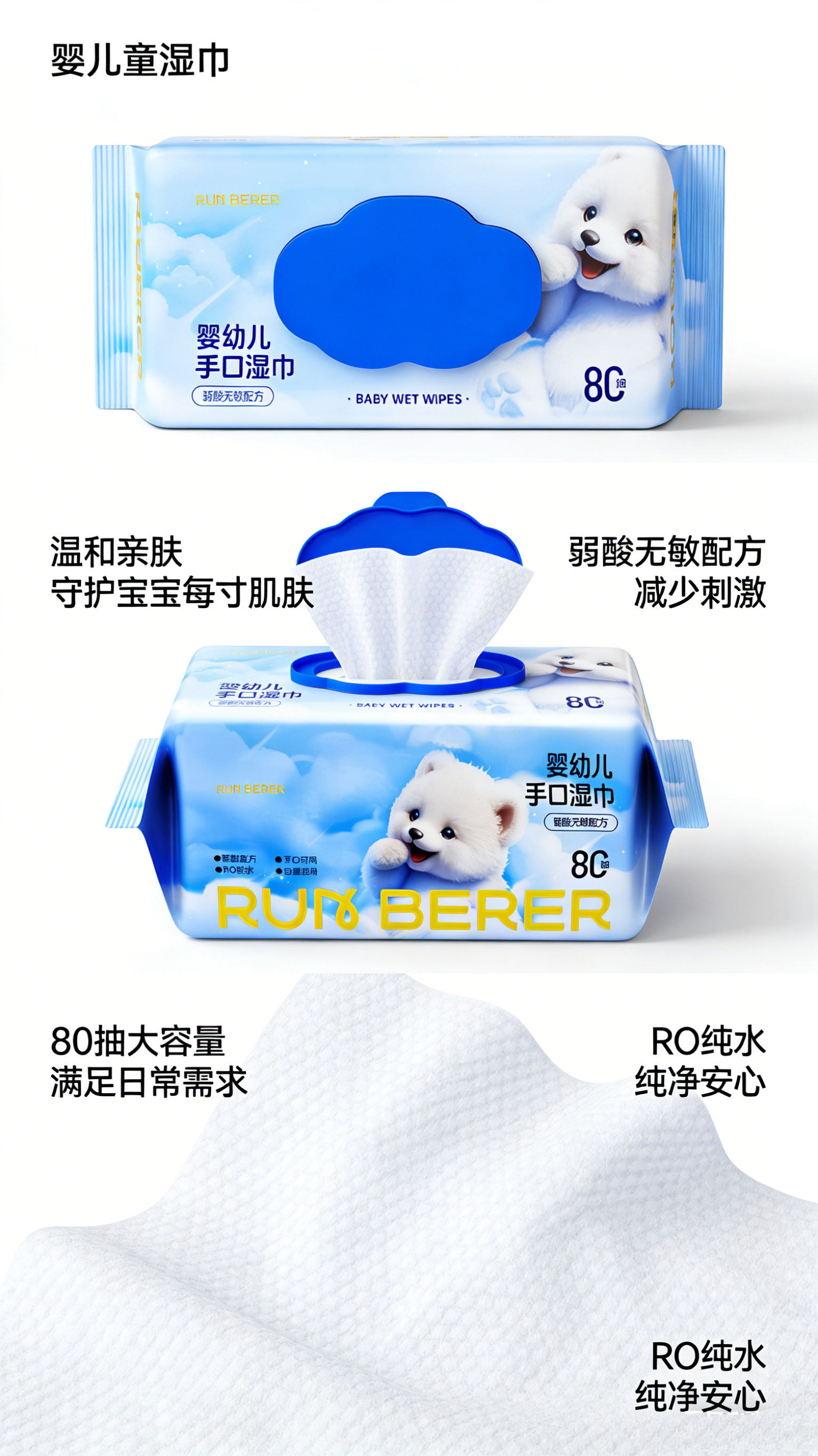 湿巾纸婴儿新生宝宝幼儿童手口屁专研厕纸用家庭实惠大包装箱80抽