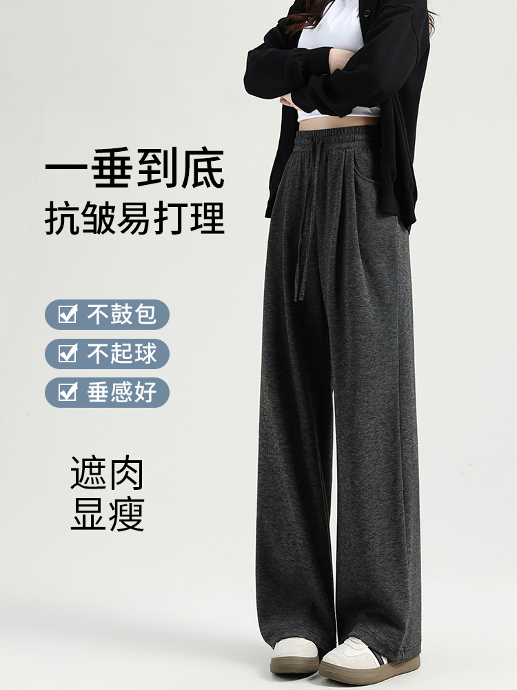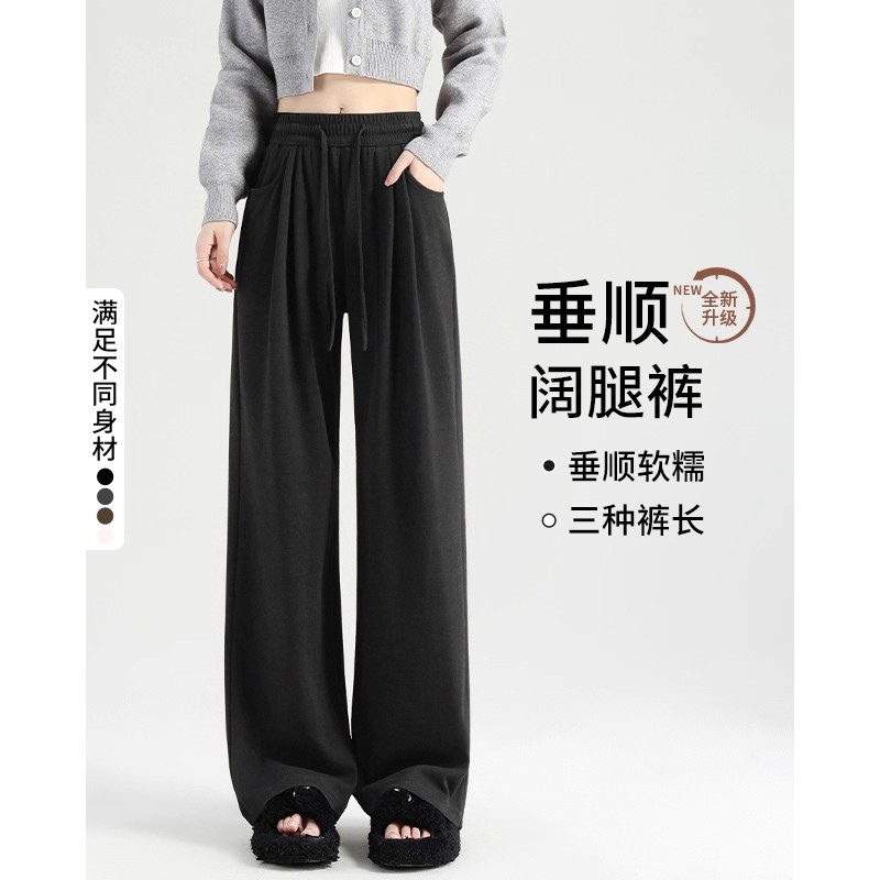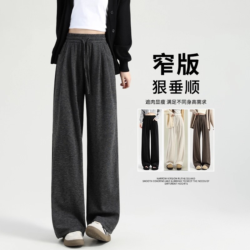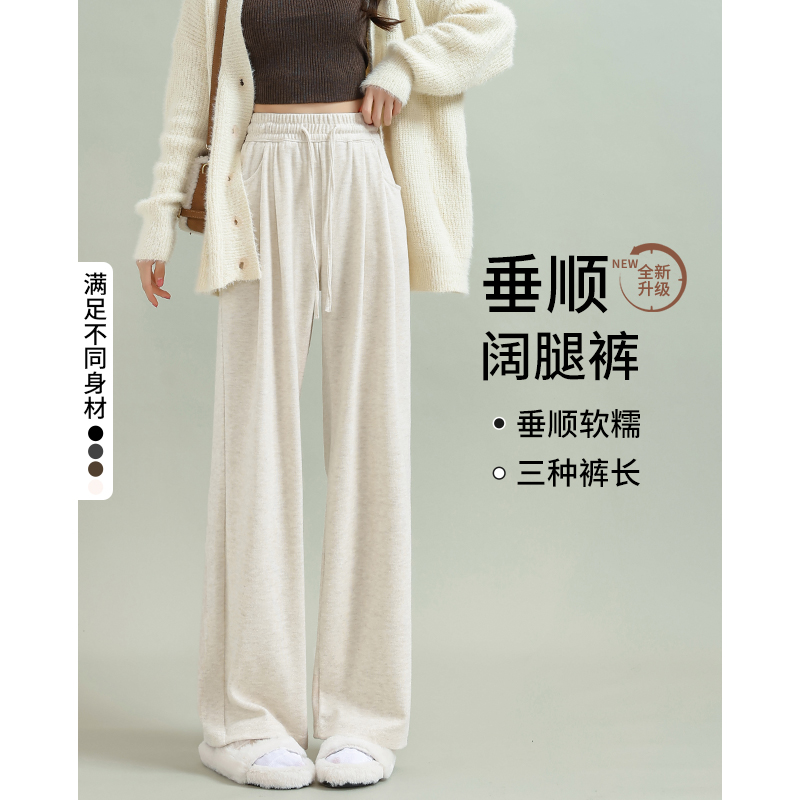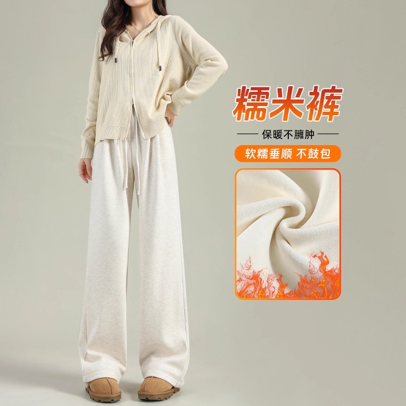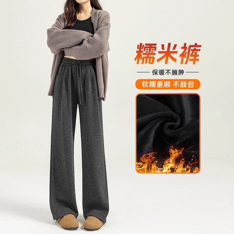 糯米裤女2025新款冬爆款休闲直筒小个子垂感灰色加厚加绒阔腿裤子