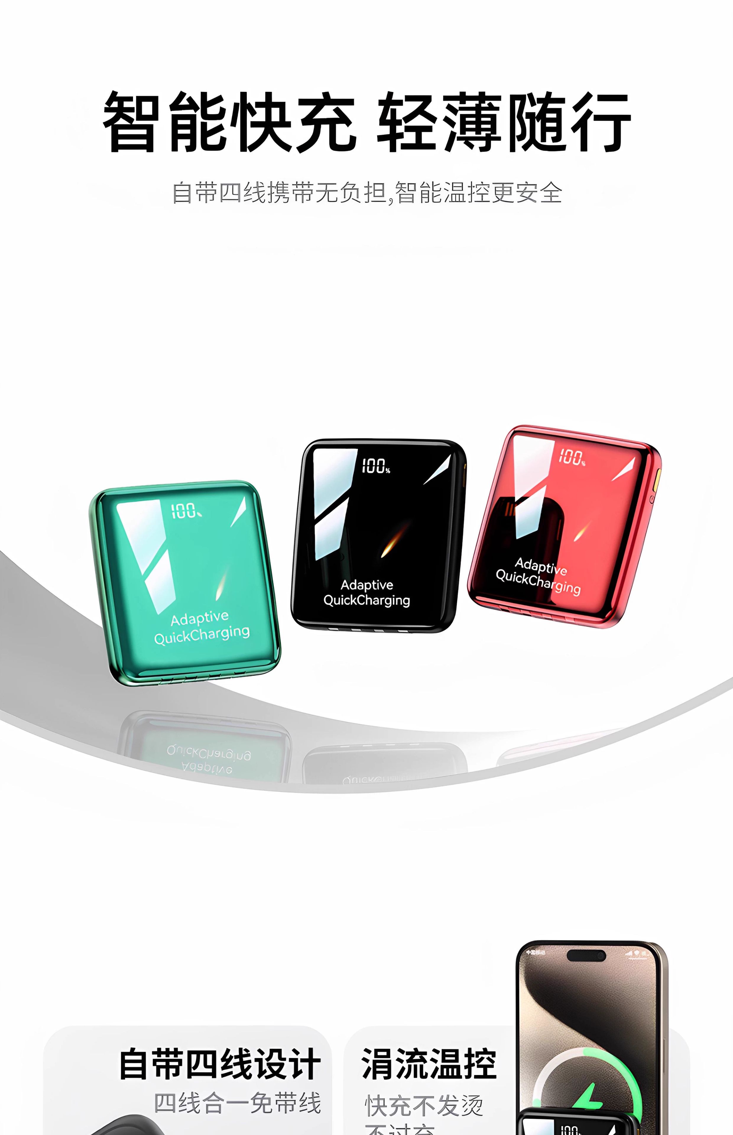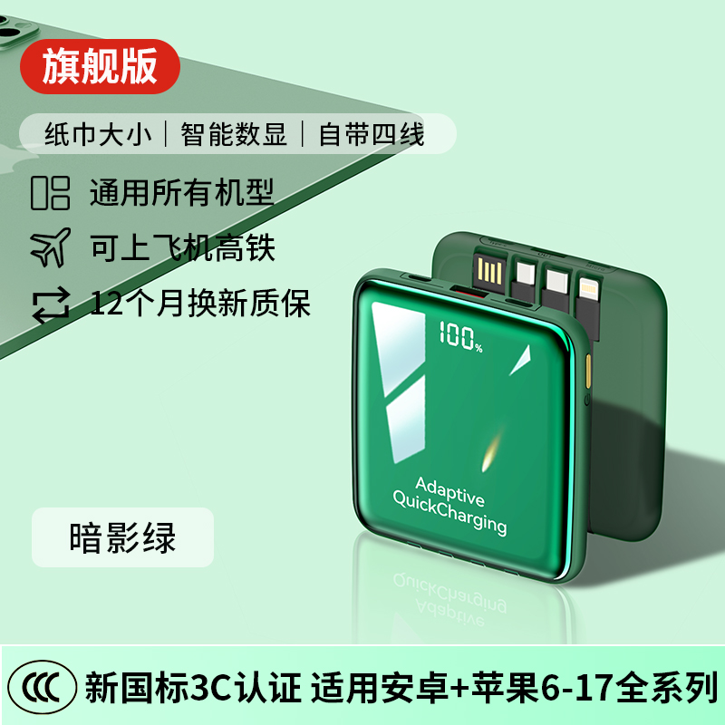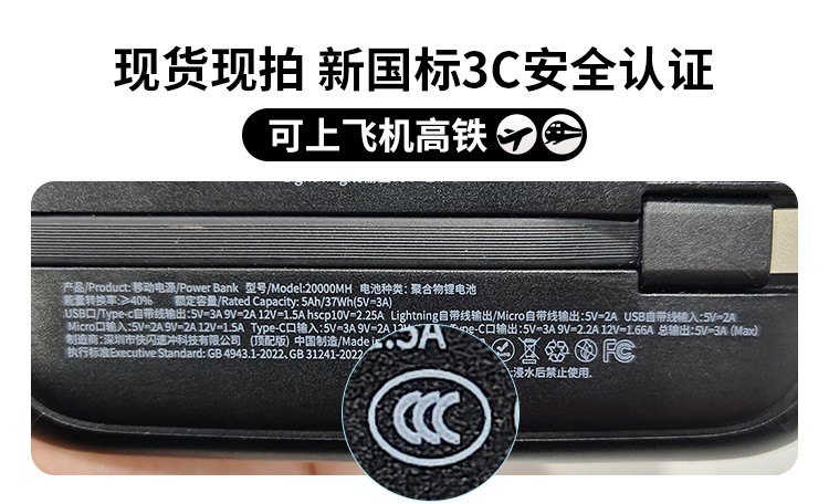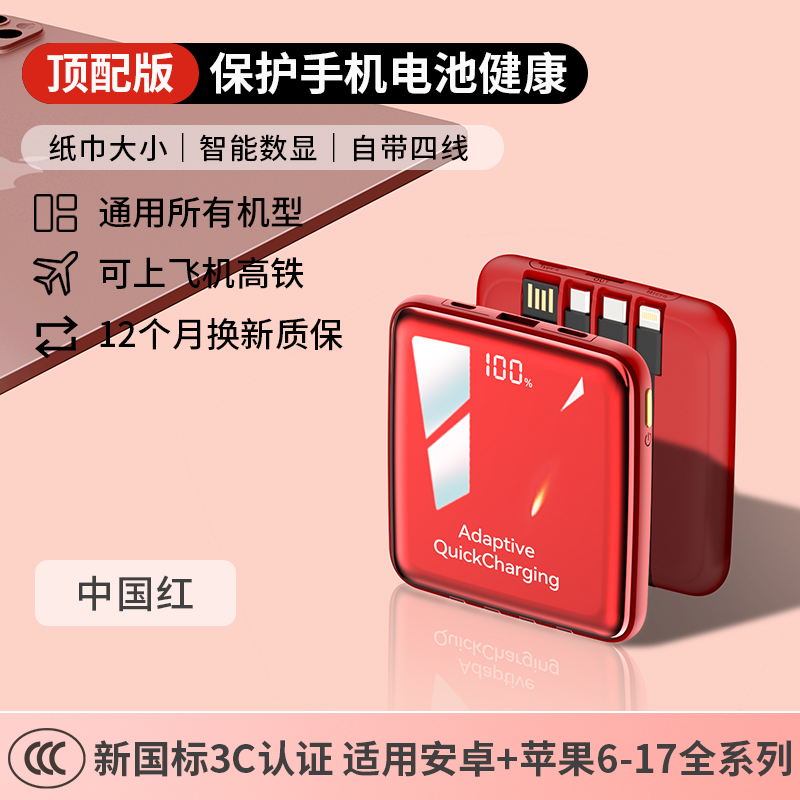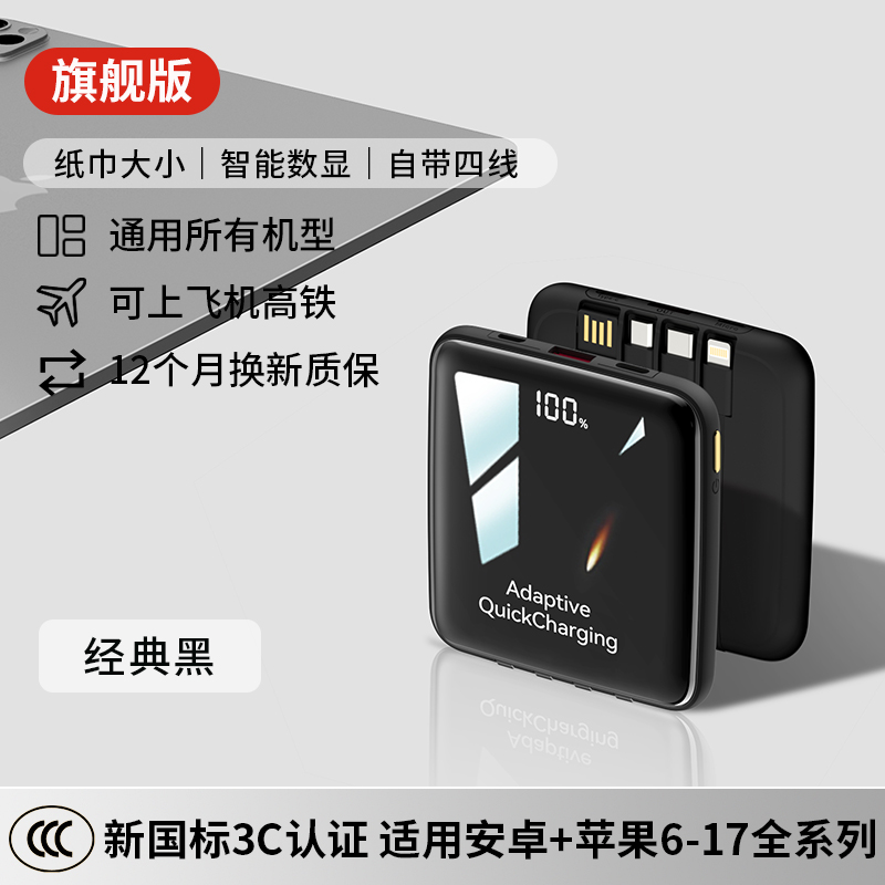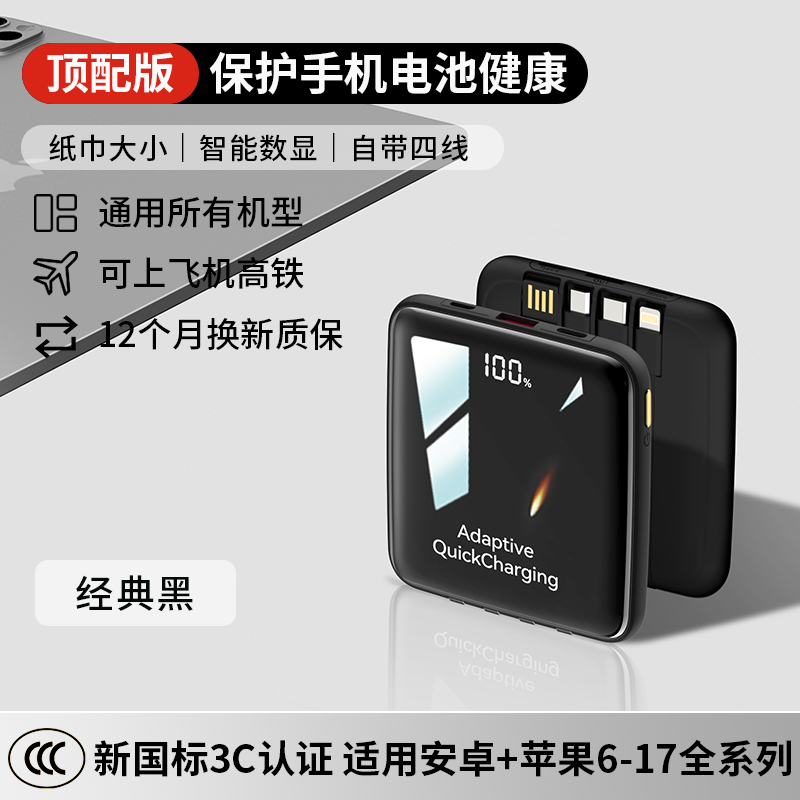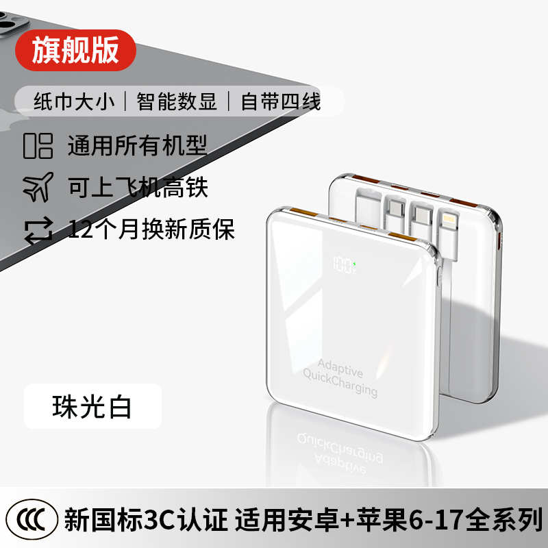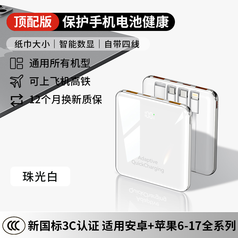 【新国标3C认证可上飞机】2025新款充电宝自带线超级快充20000毫安超薄小巧便携适用苹果专用官方正品旗舰店