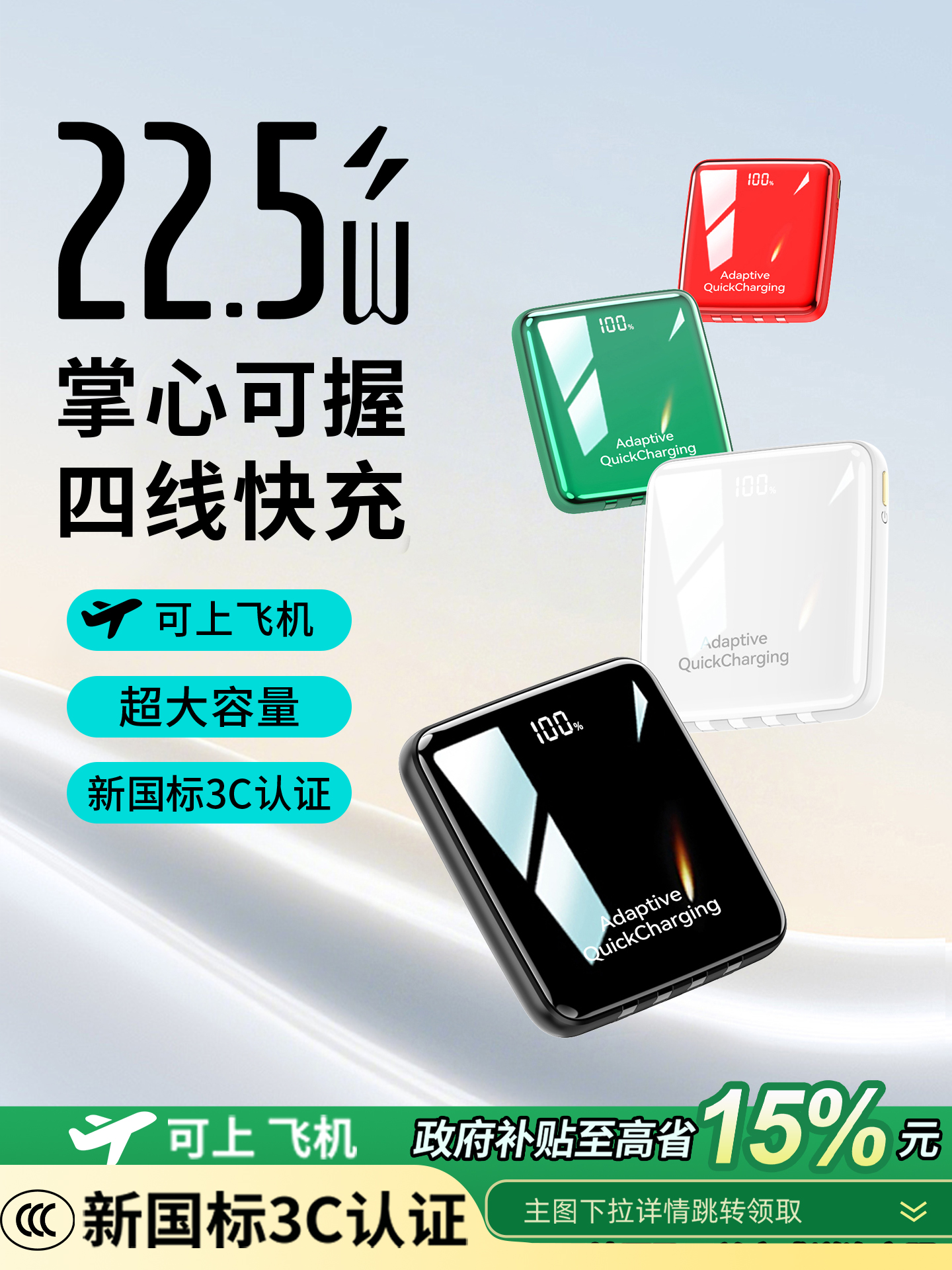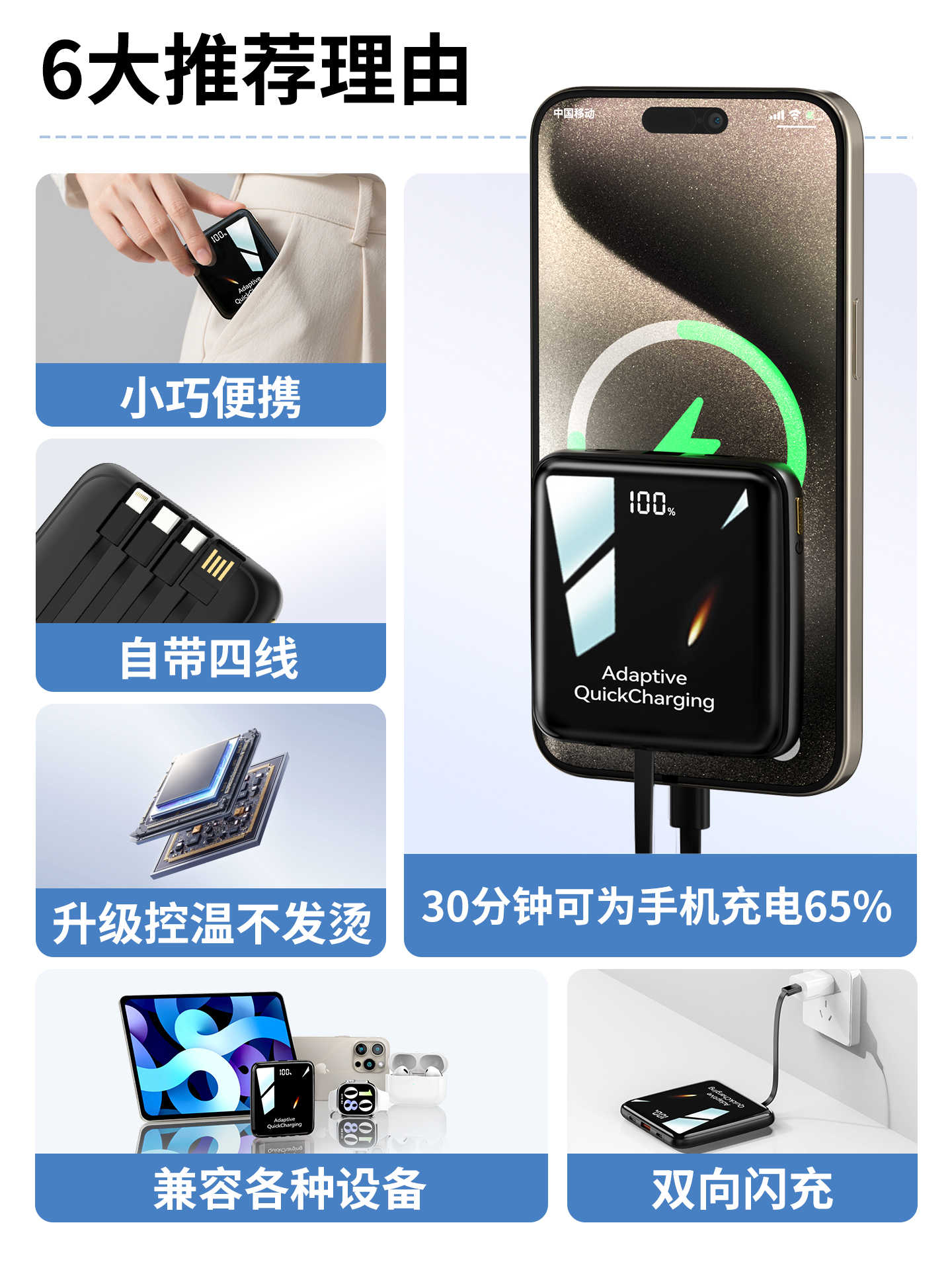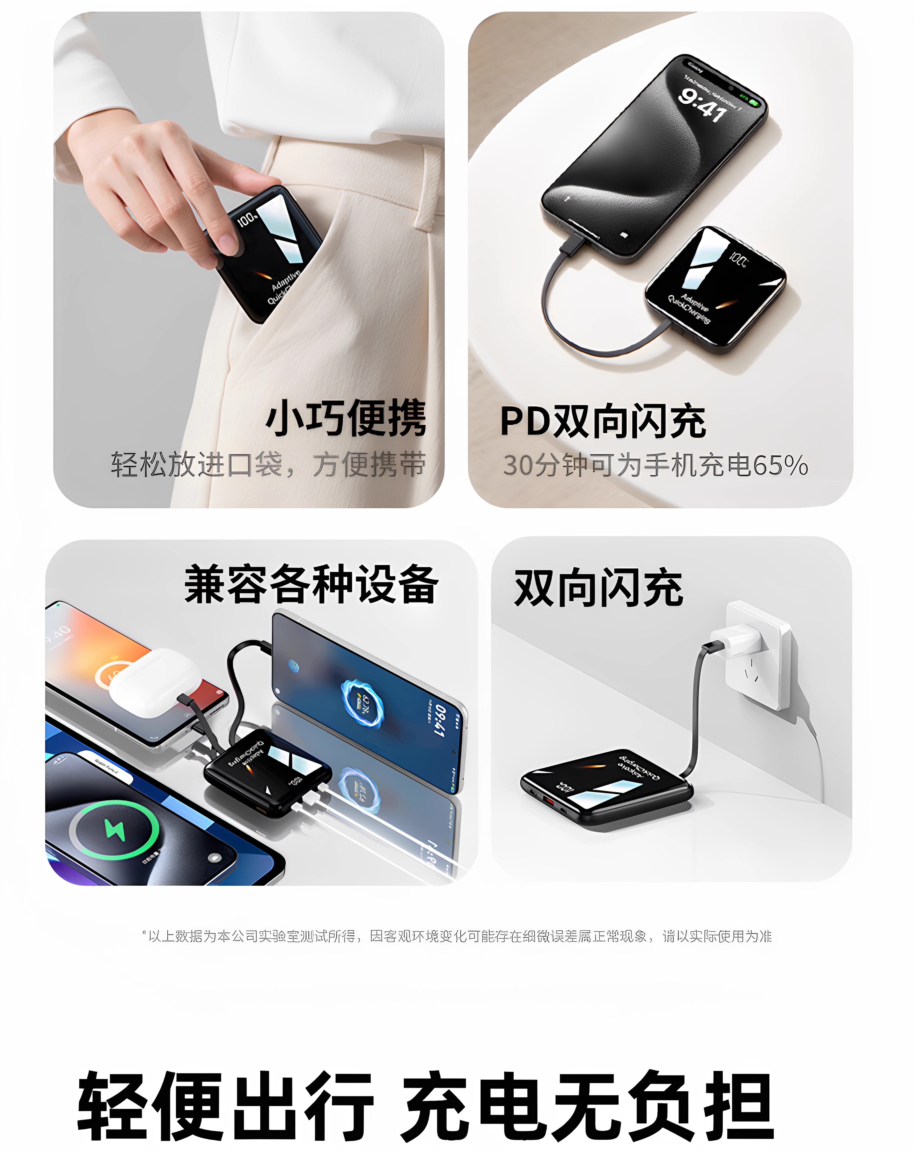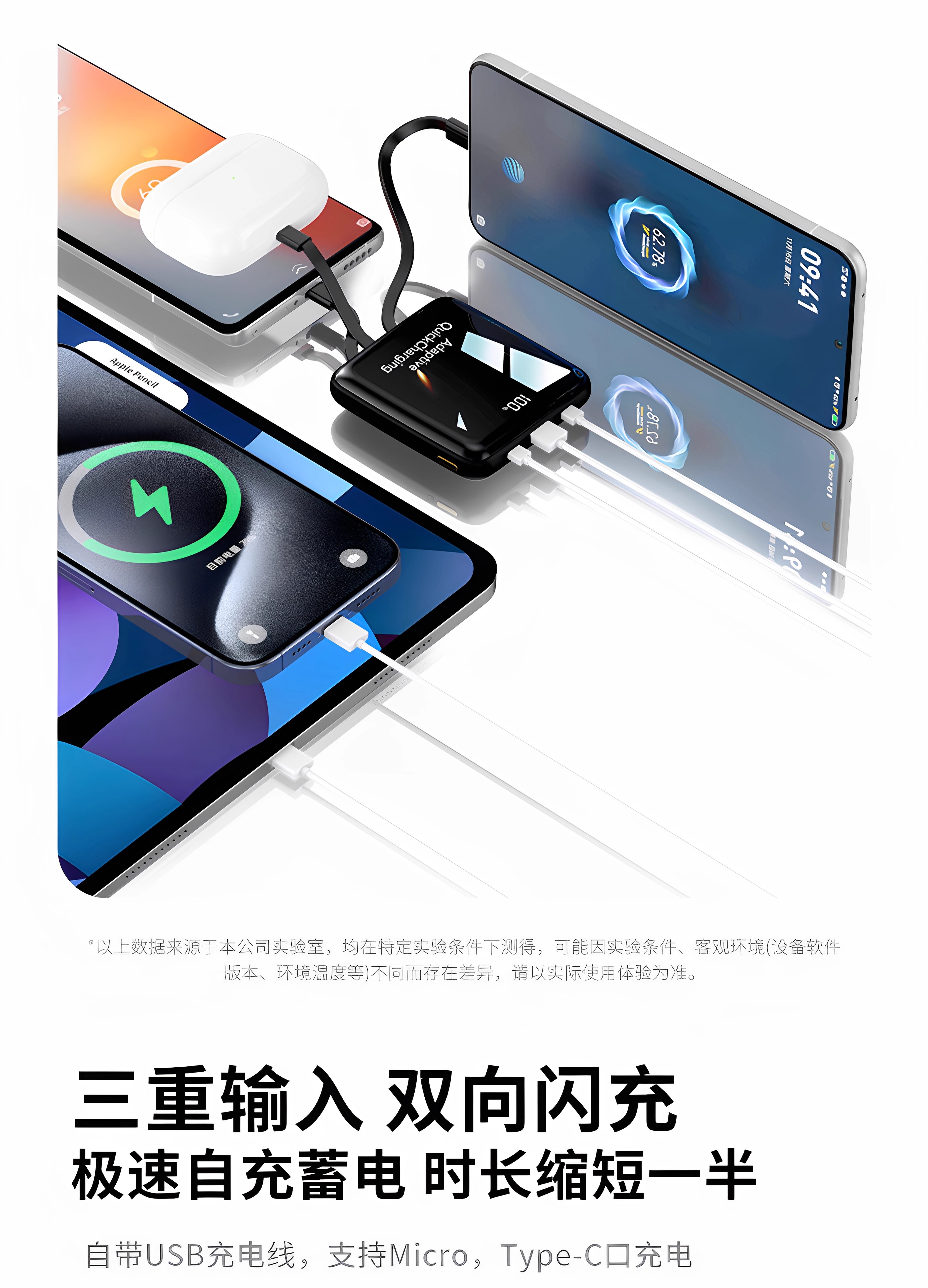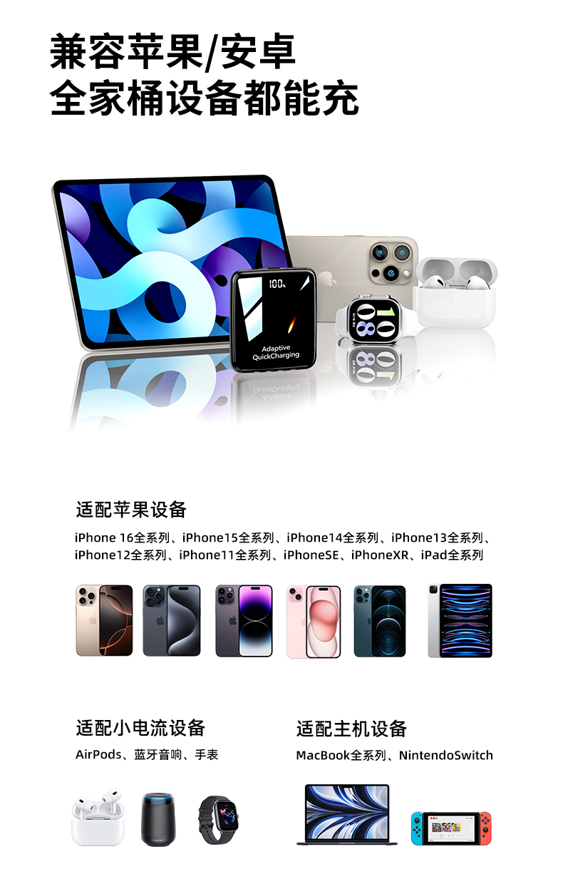 【新国标3C认证可上飞机】2025新款充电宝自带线超级快充20000毫安超薄小巧便携适用苹果专用官方正品旗舰店