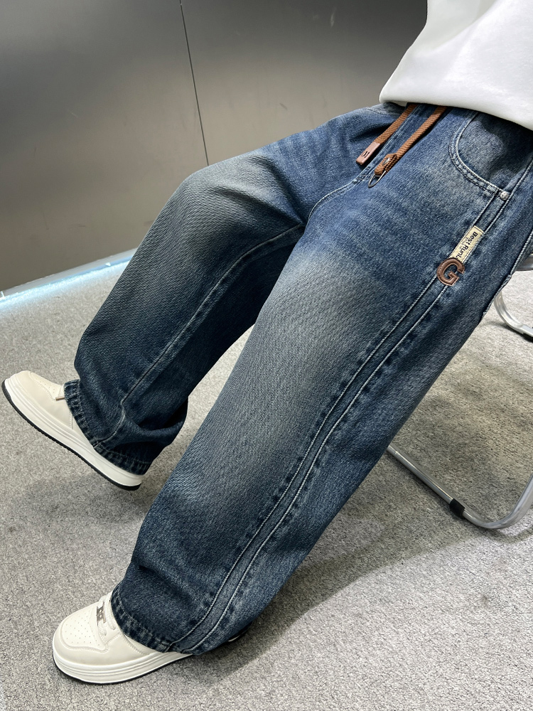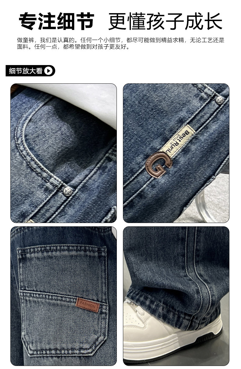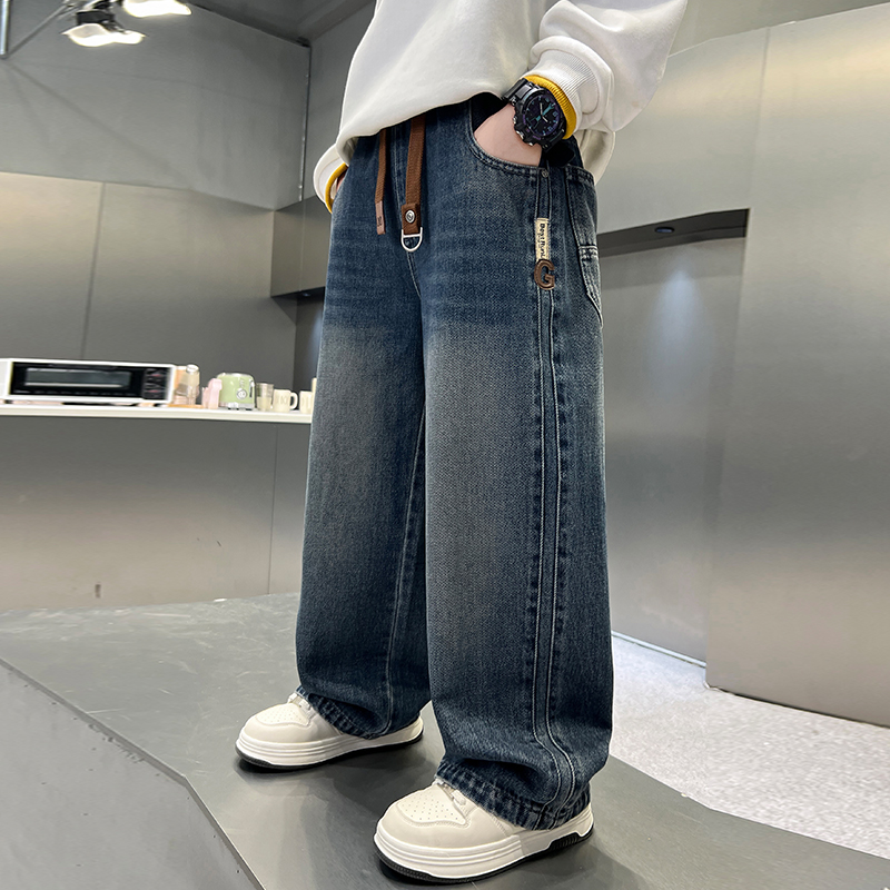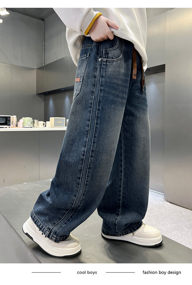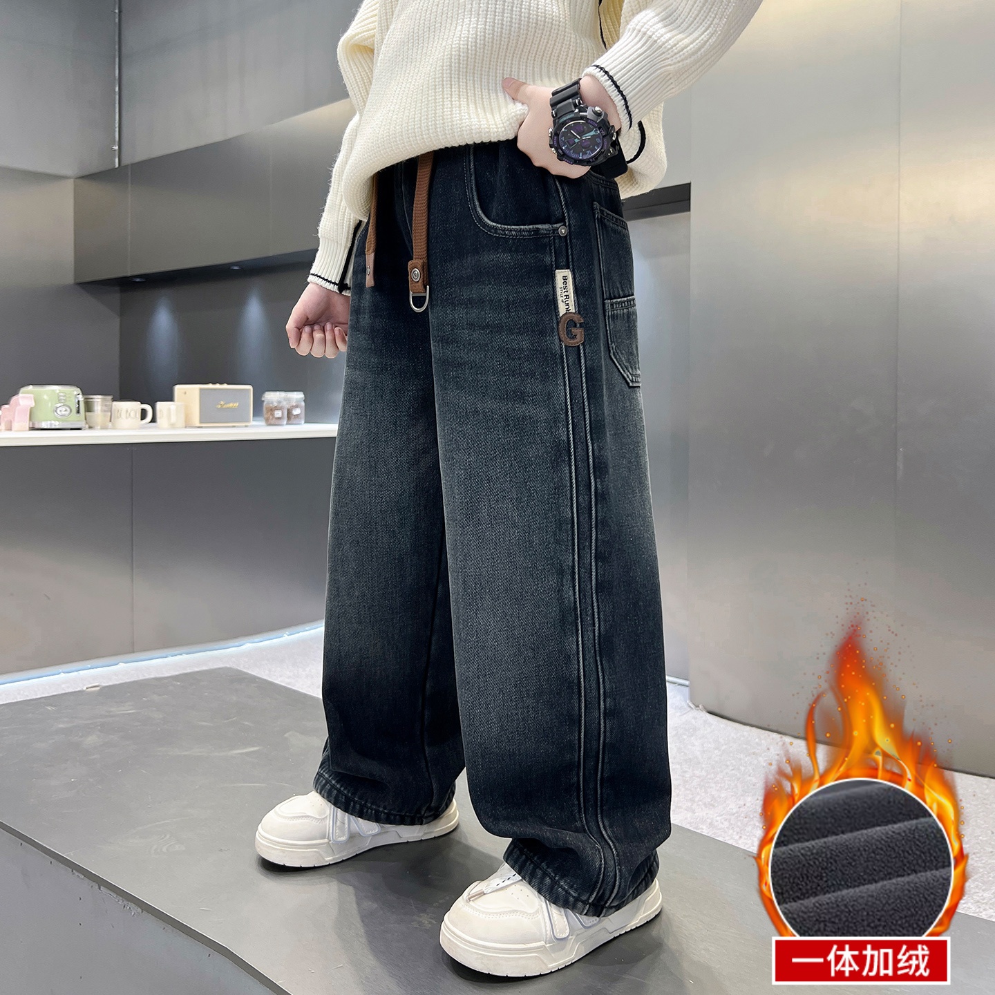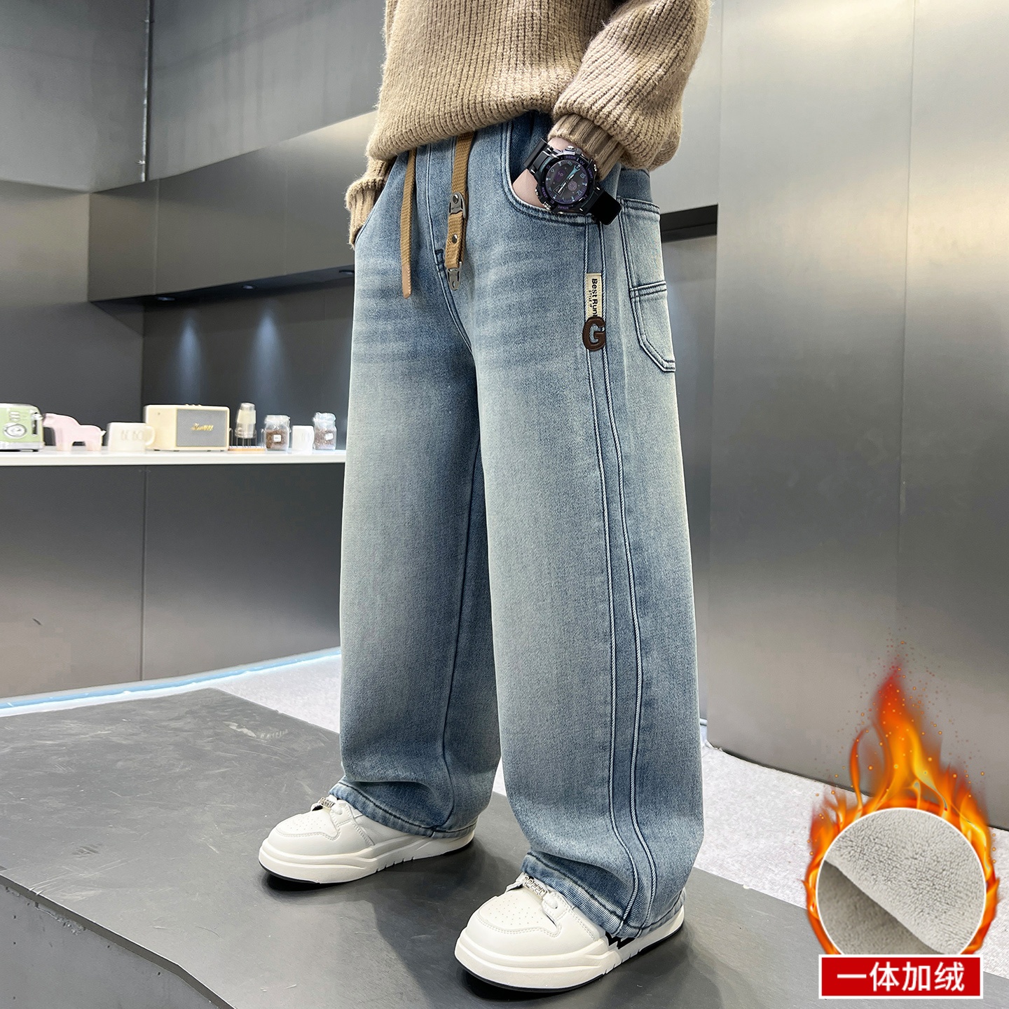 男童裤子春秋款2025新款中大童酷帅男孩直筒裤冬装儿童加绒牛仔裤