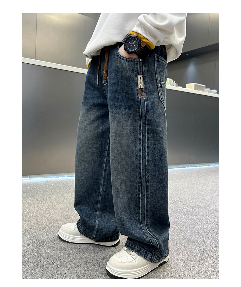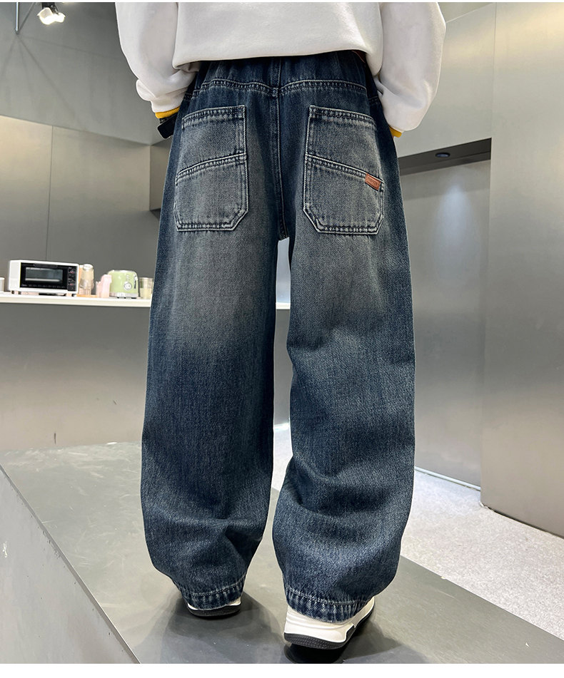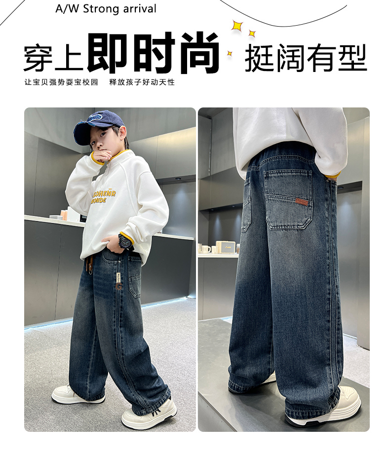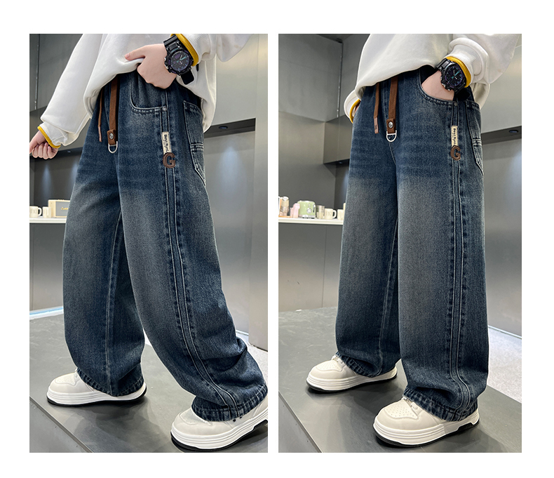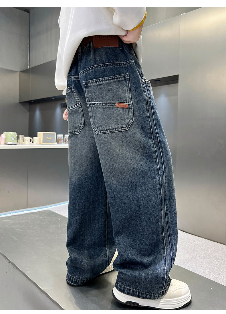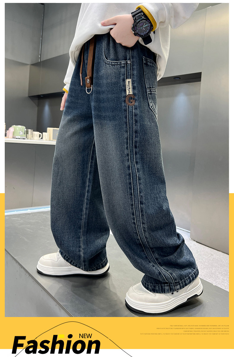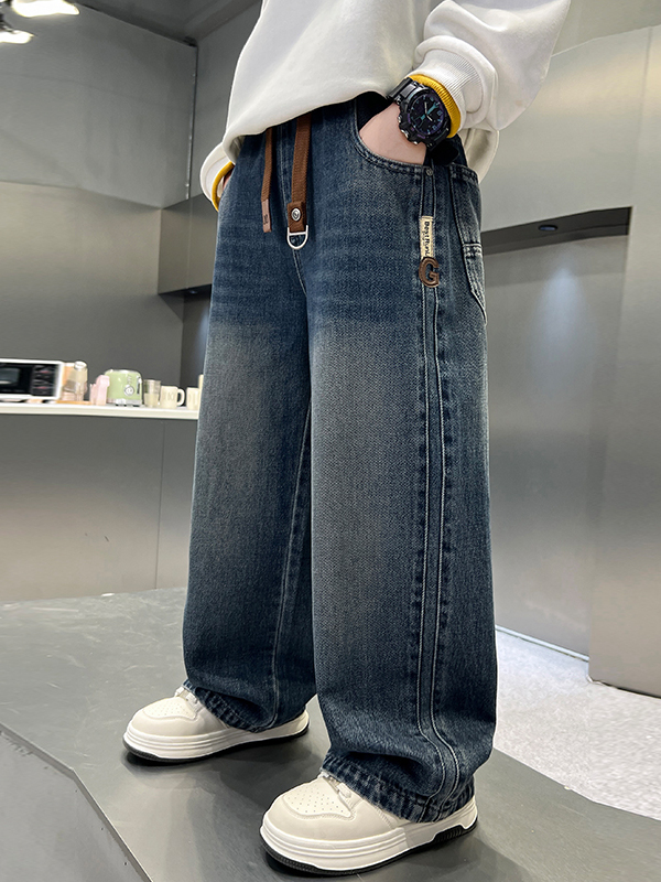 男童裤子春秋款2025新款中大童酷帅男孩直筒裤冬装儿童加绒牛仔裤