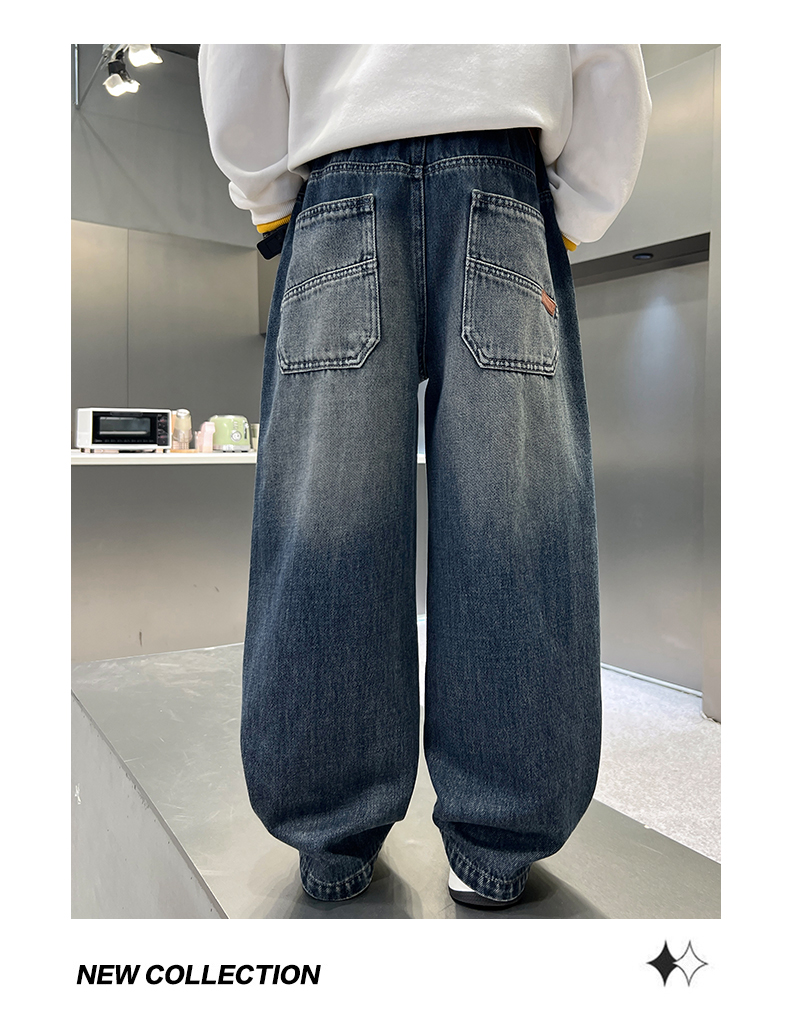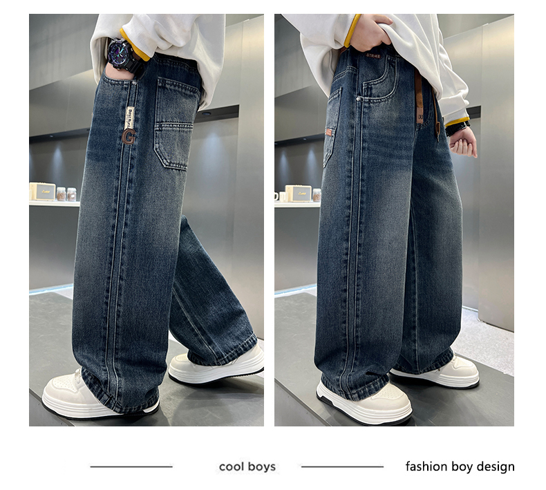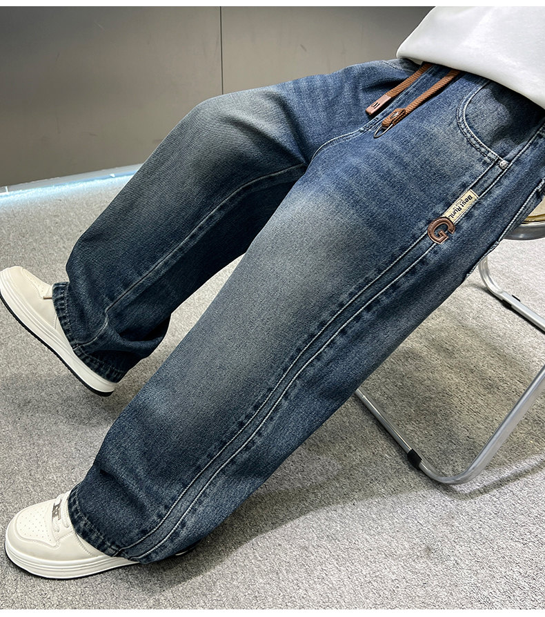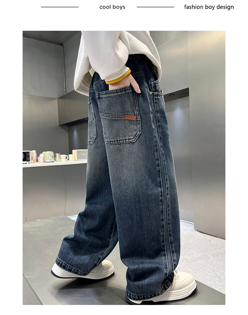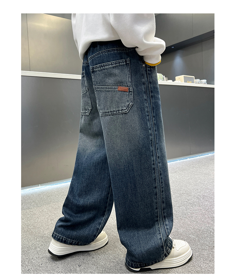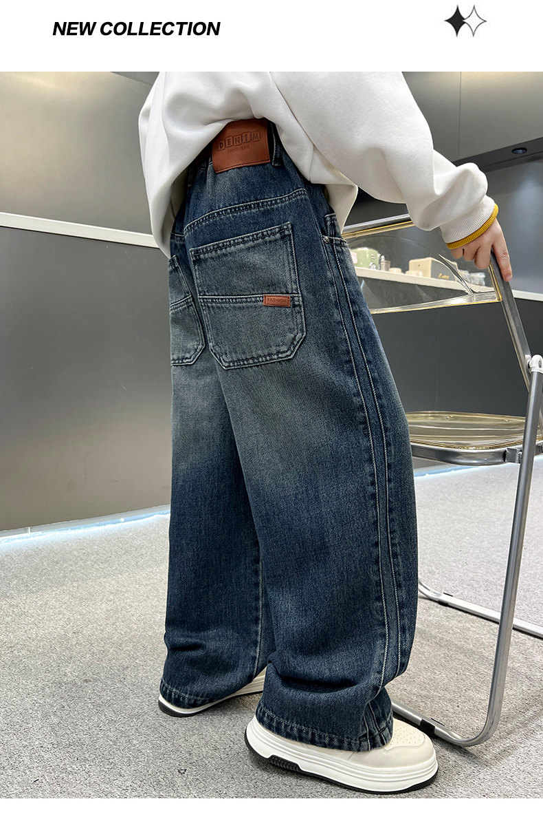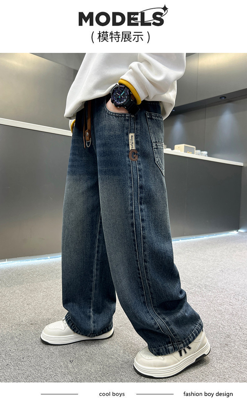 男童裤子春秋款2025新款中大童酷帅男孩直筒裤冬装儿童加绒牛仔裤