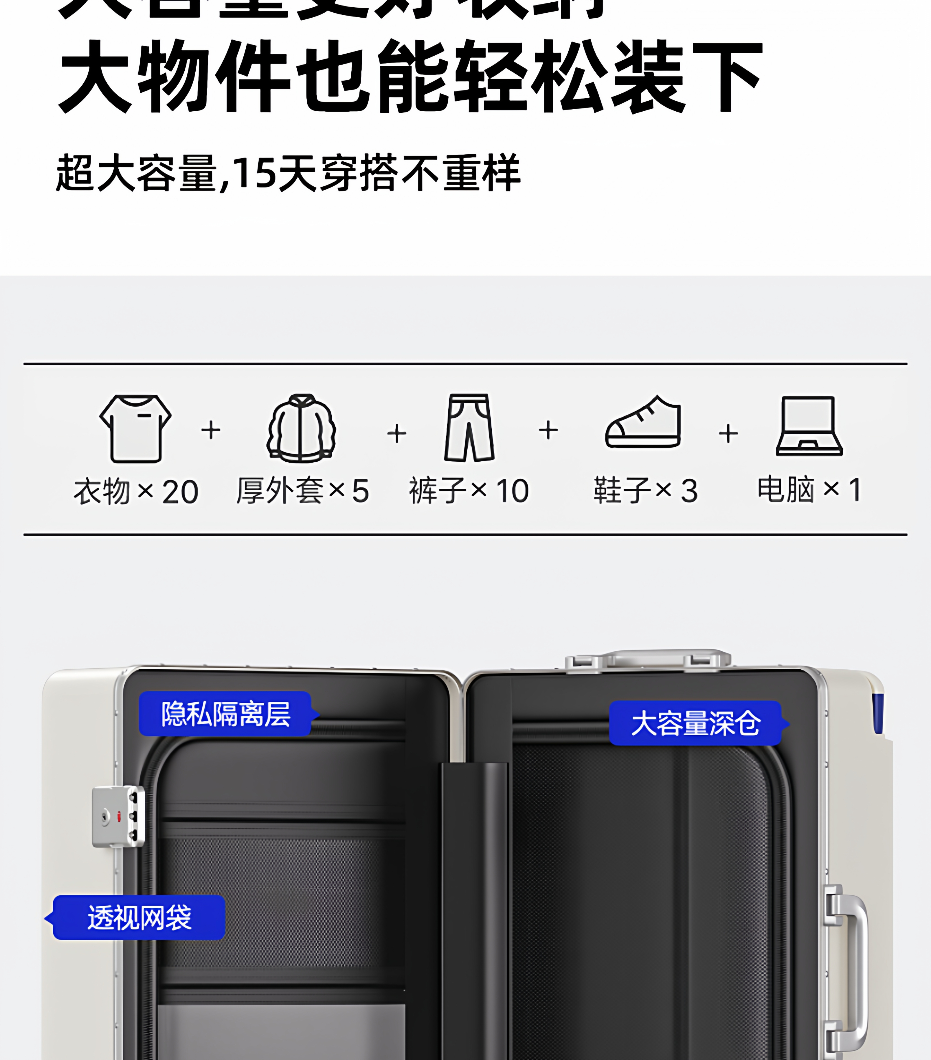 轩尼哲2025新款行李箱拉杆箱女大容量铝框密码箱20寸登机旅行箱男
