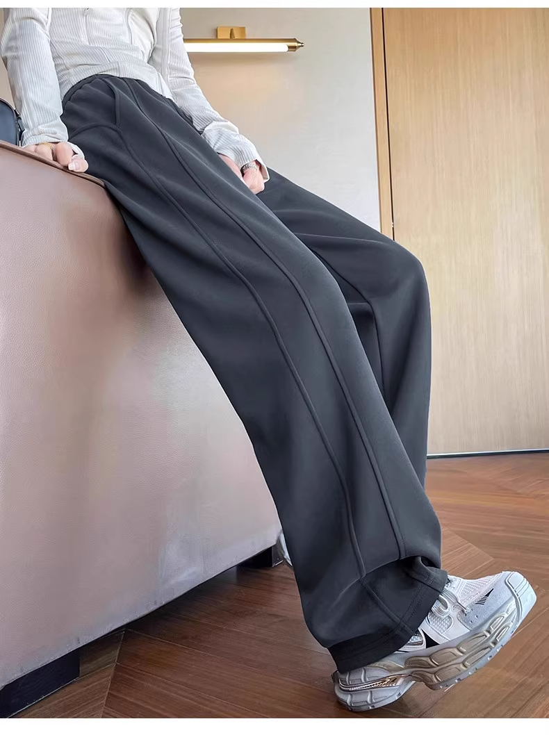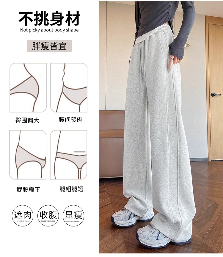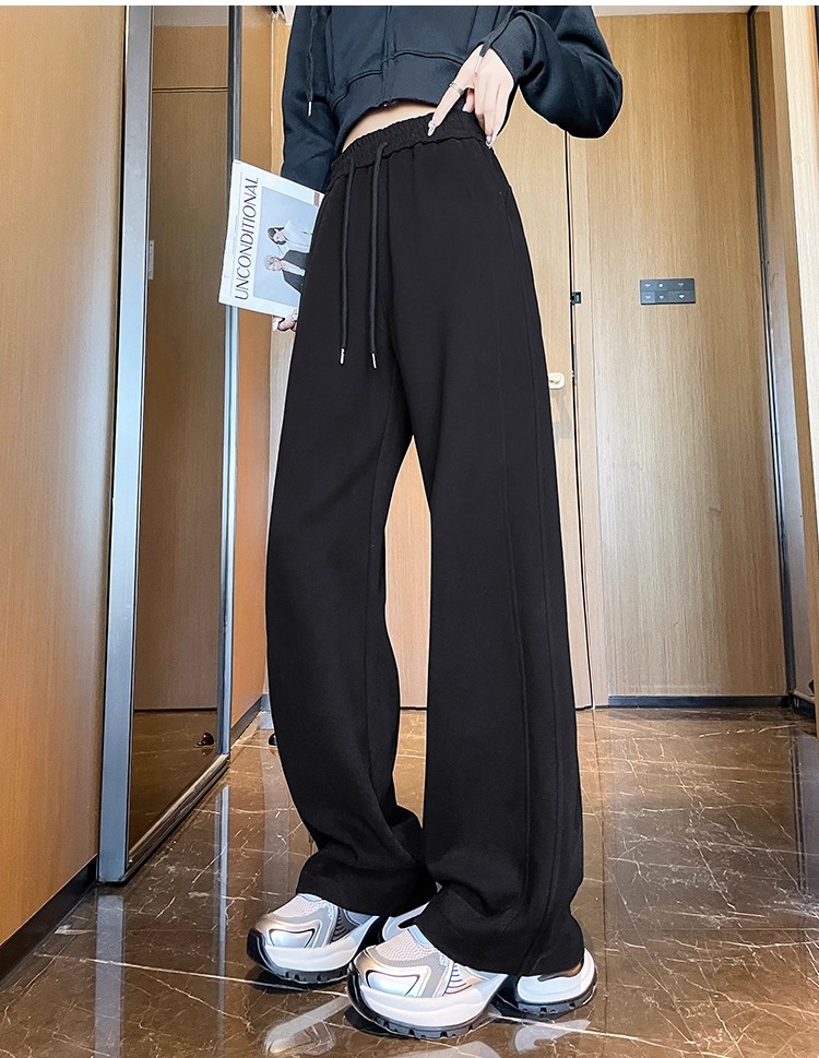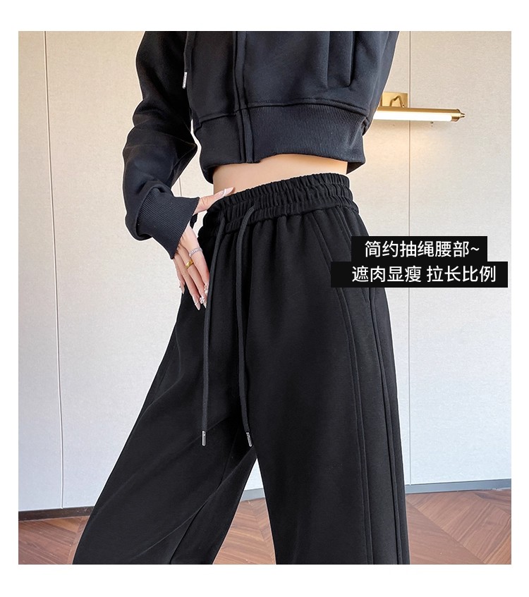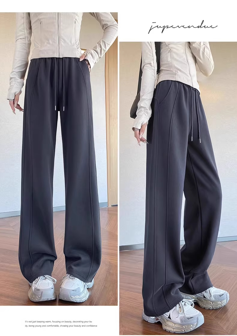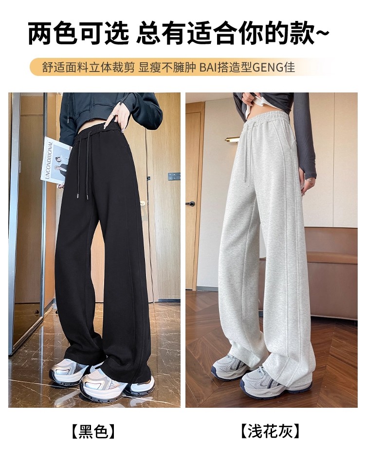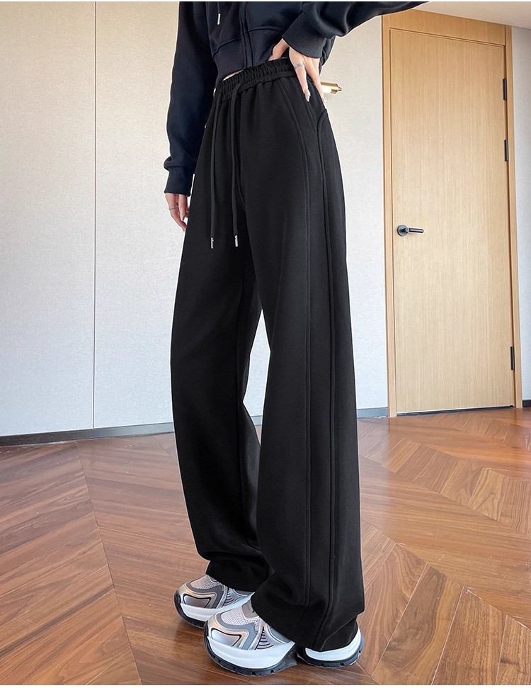高个子加长美式运动卫裤女秋冬加绒加厚窄版直筒拖地休闲阔腿裤子
