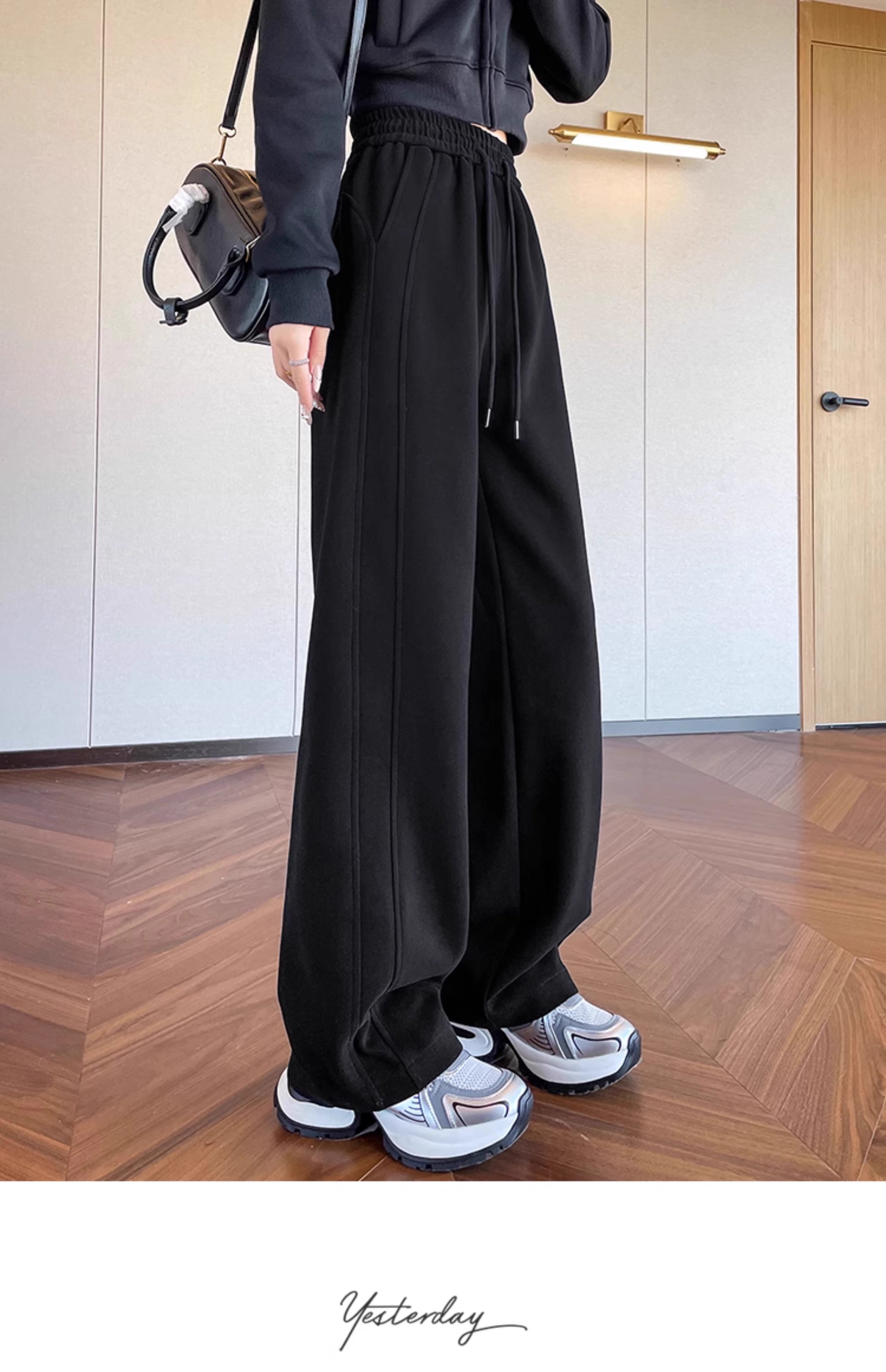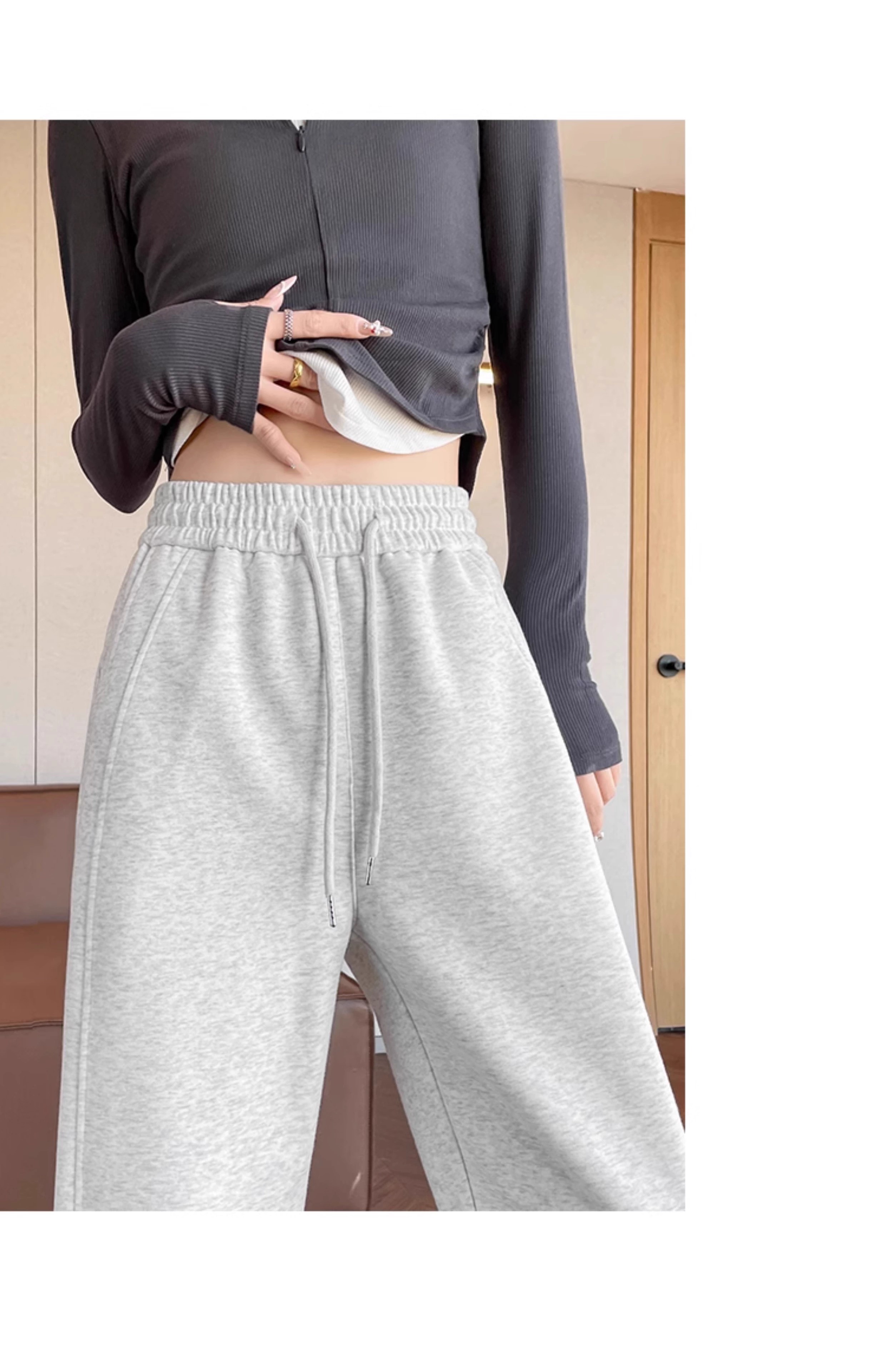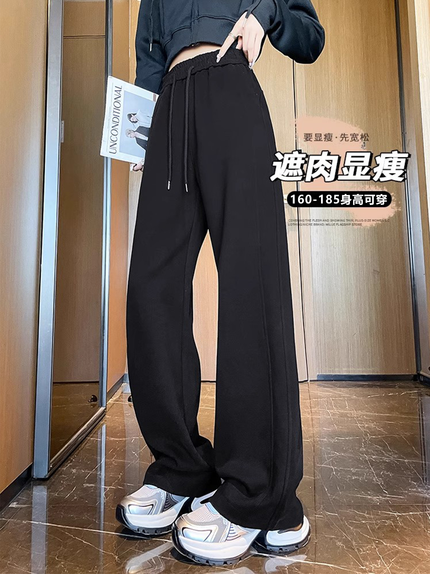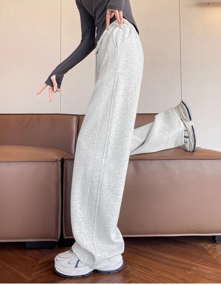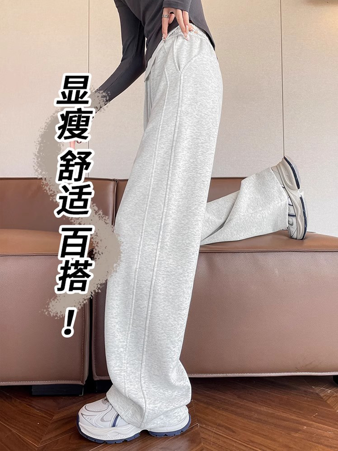 高个子加长美式运动卫裤女秋冬加绒加厚窄版直筒拖地休闲阔腿裤子