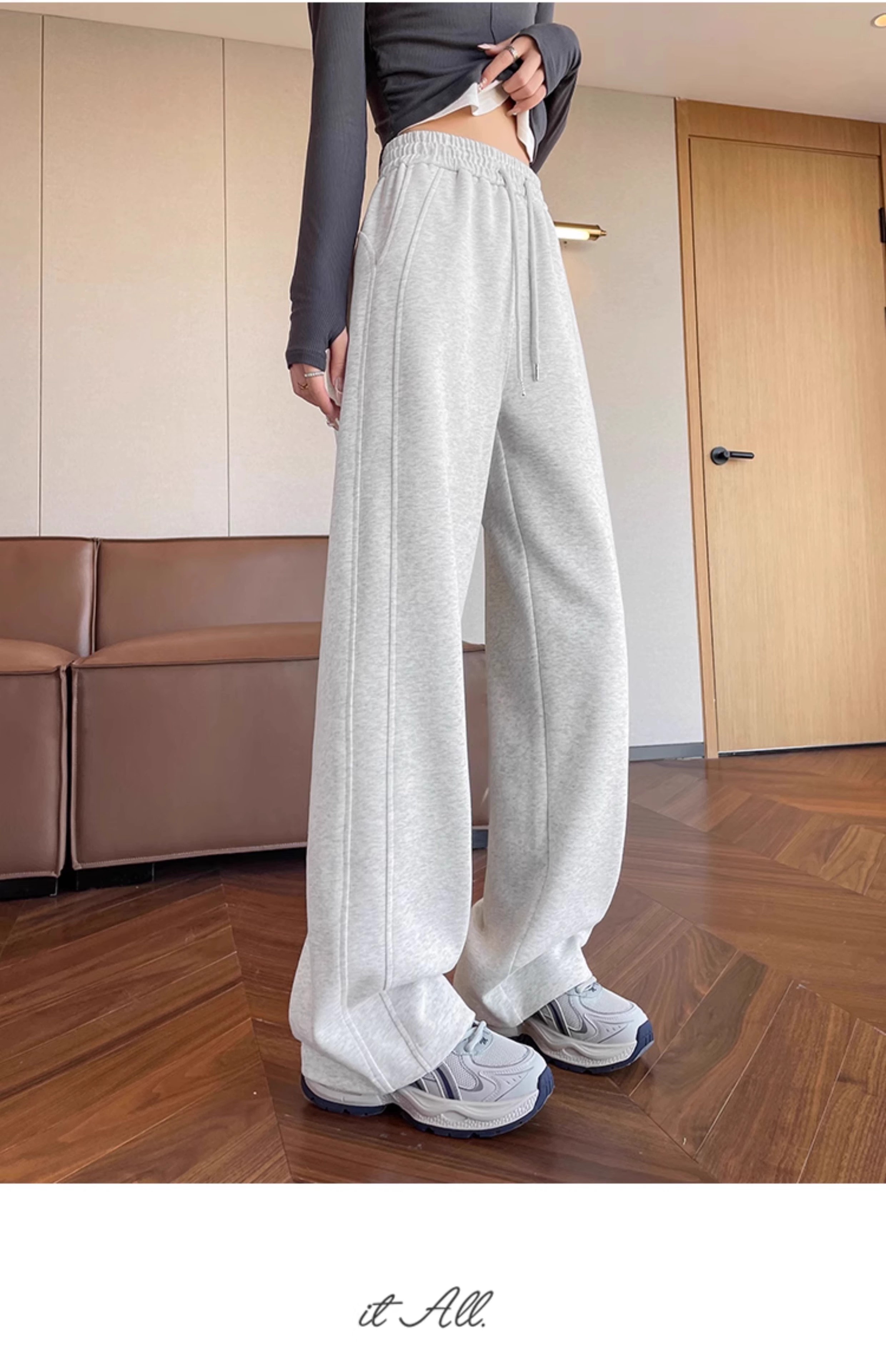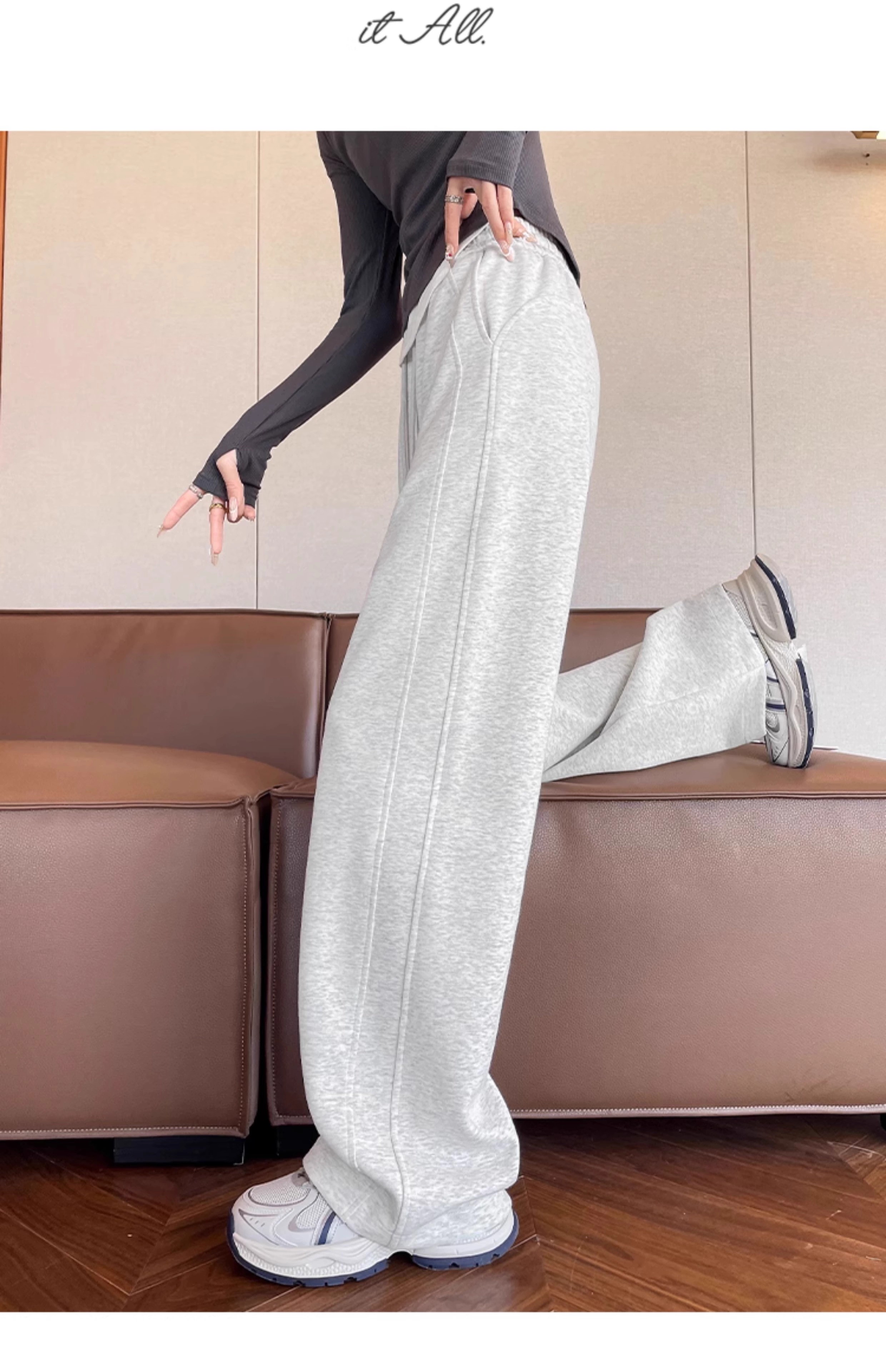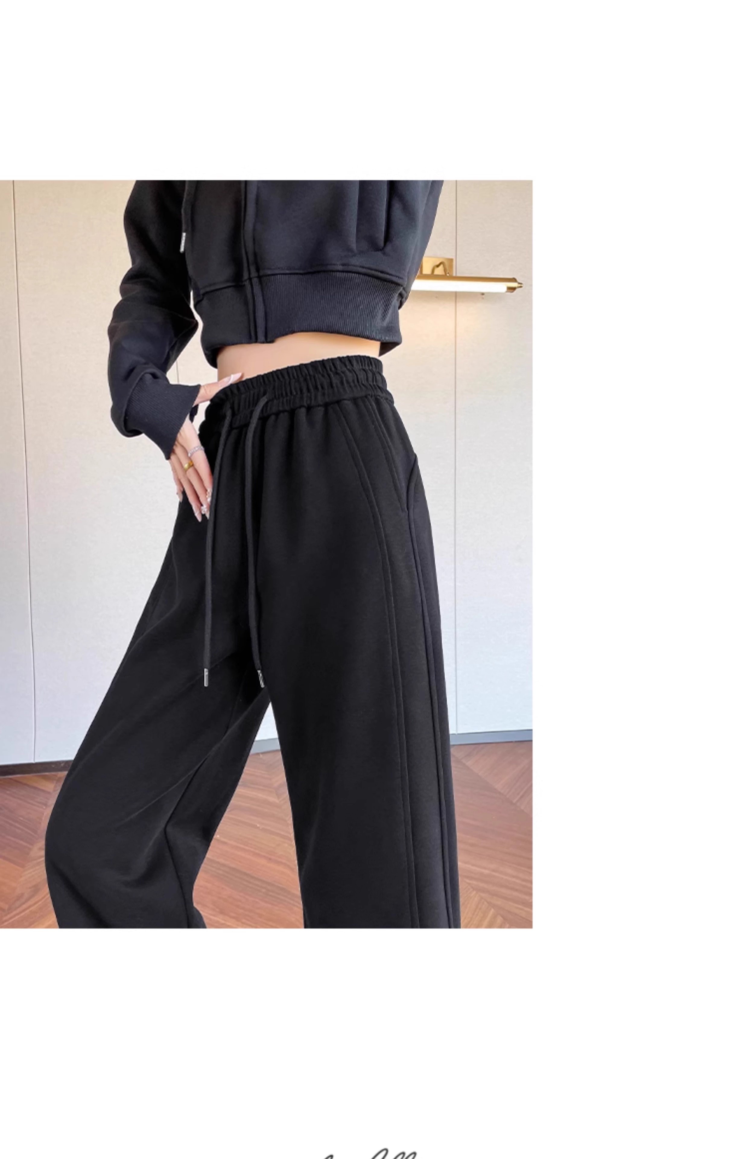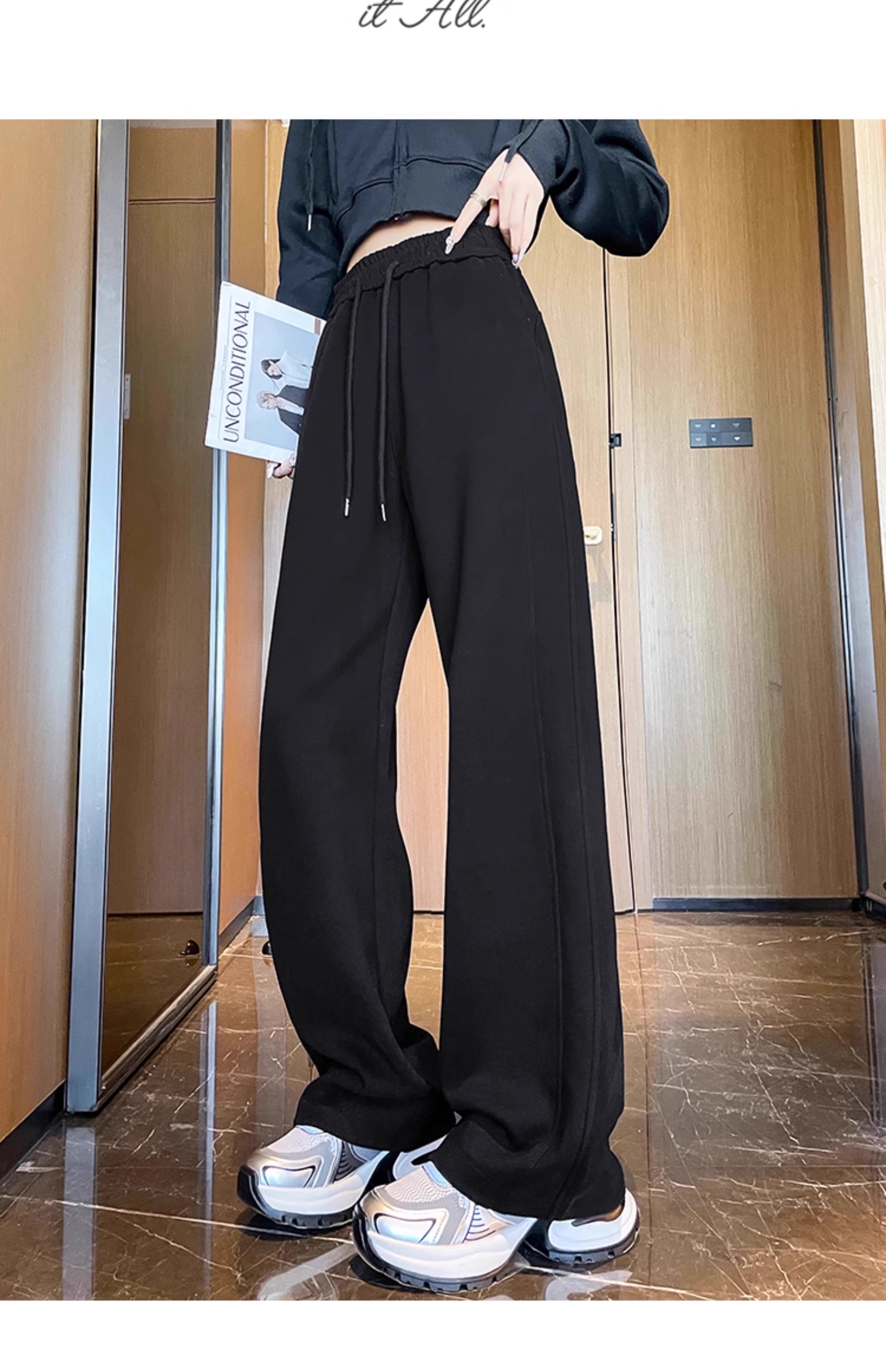 高个子加长美式运动卫裤女秋冬加绒加厚窄版直筒拖地休闲阔腿裤子