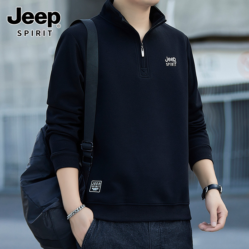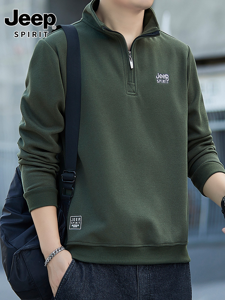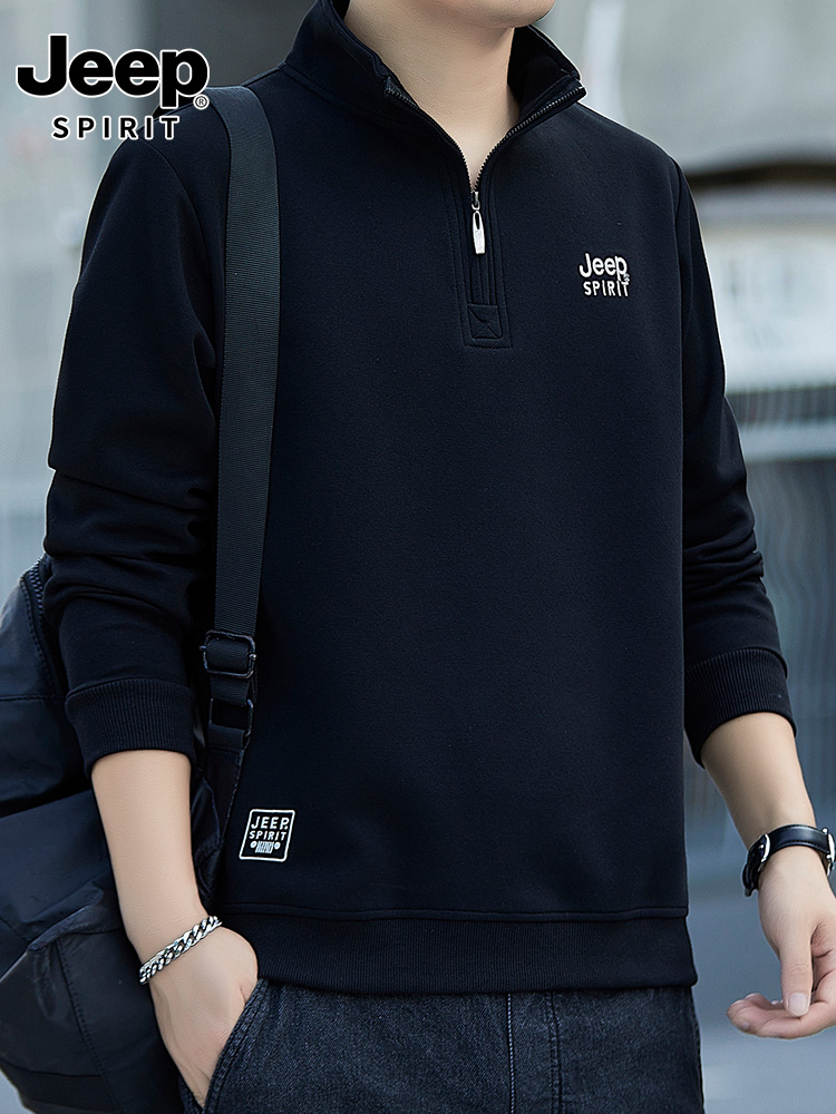 JEEP吉普卫衣男士秋季新款长袖打底衫宽松男中青年半拉链休闲上衣