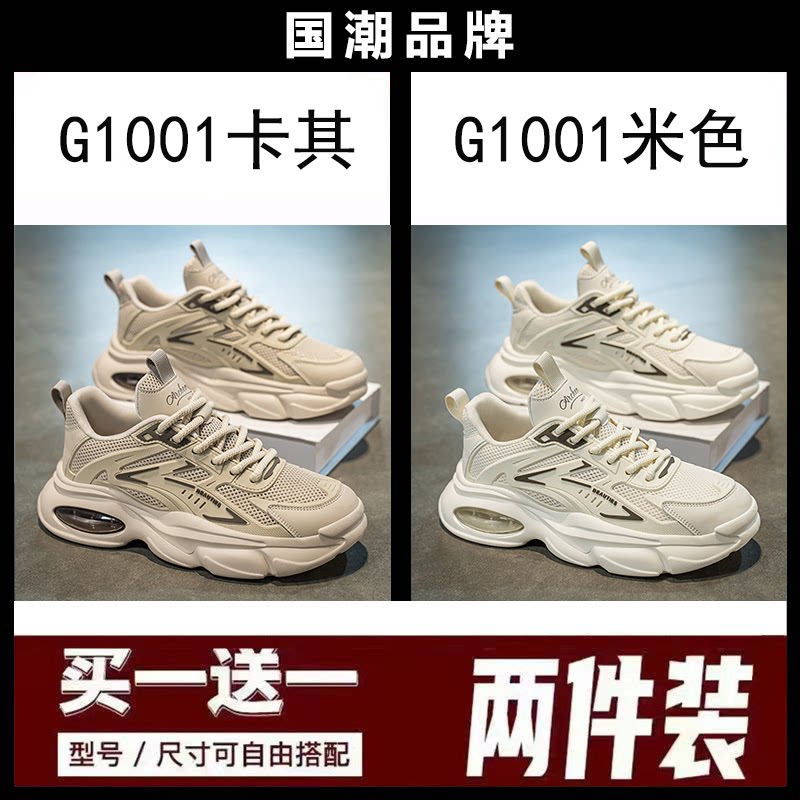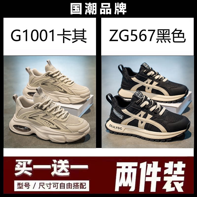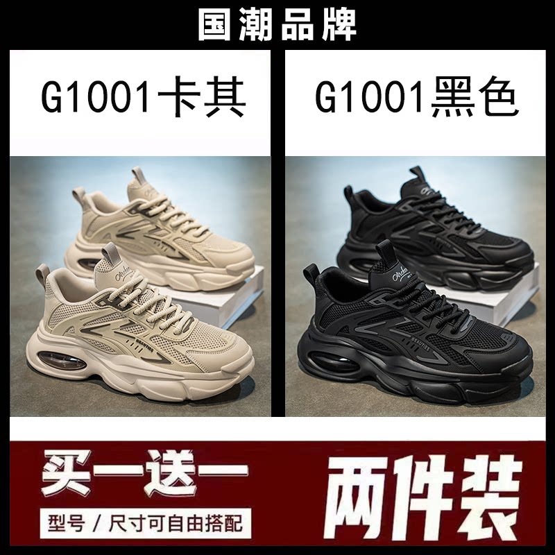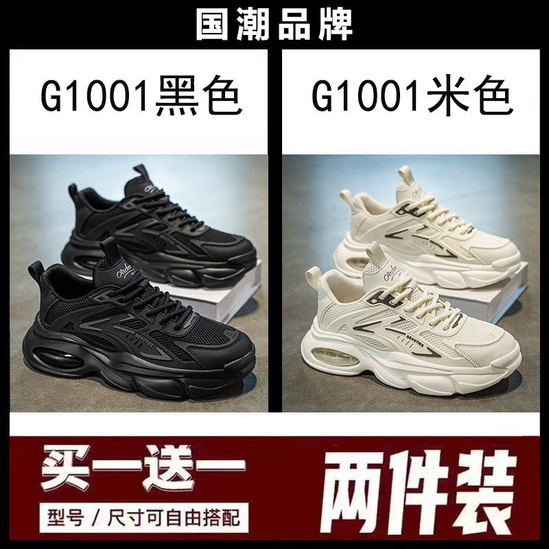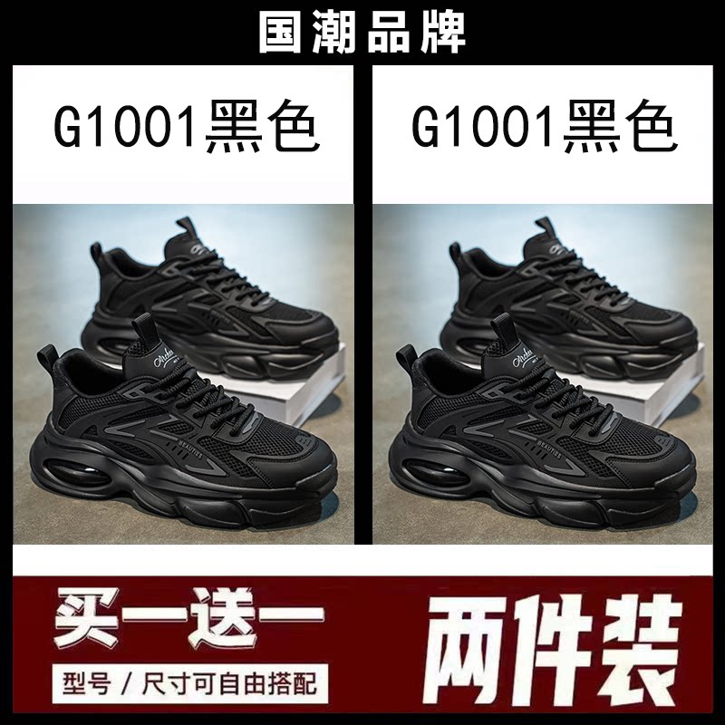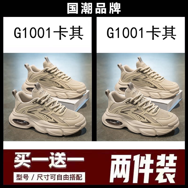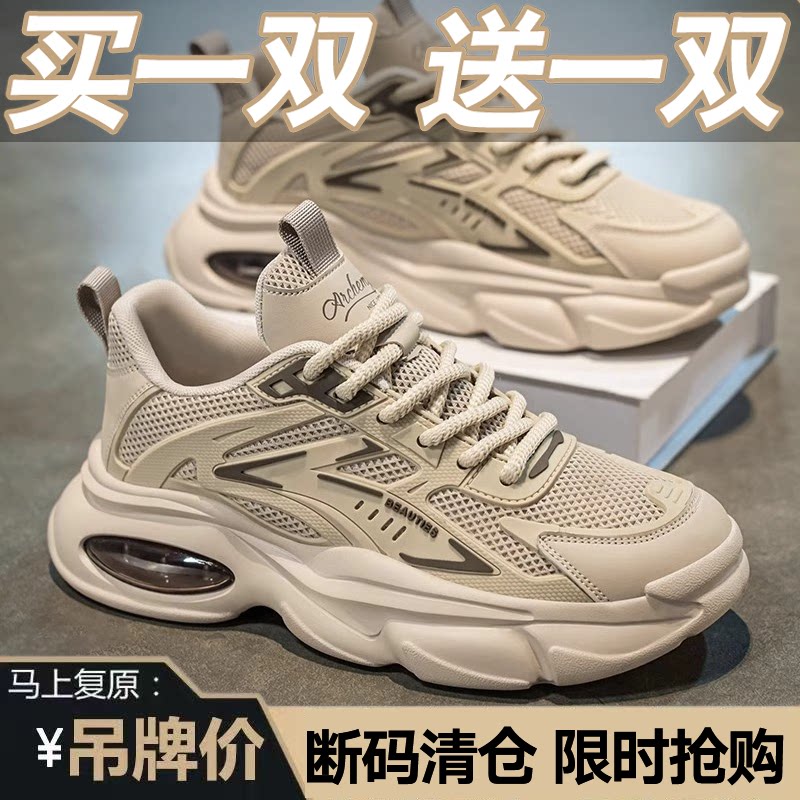 买一送一品牌男鞋秋季透气网面防臭百搭运动休闲跑步厚底老爹潮鞋