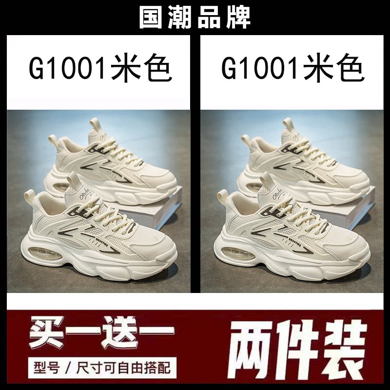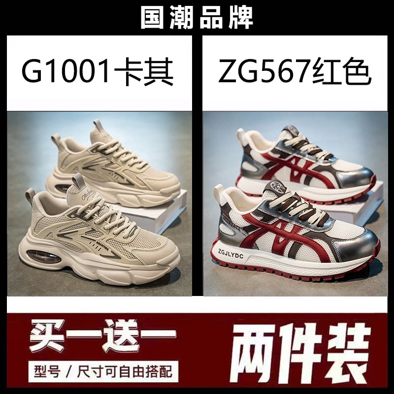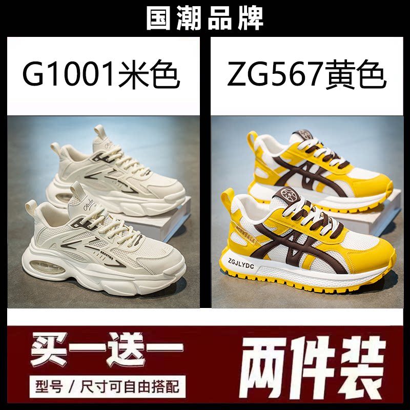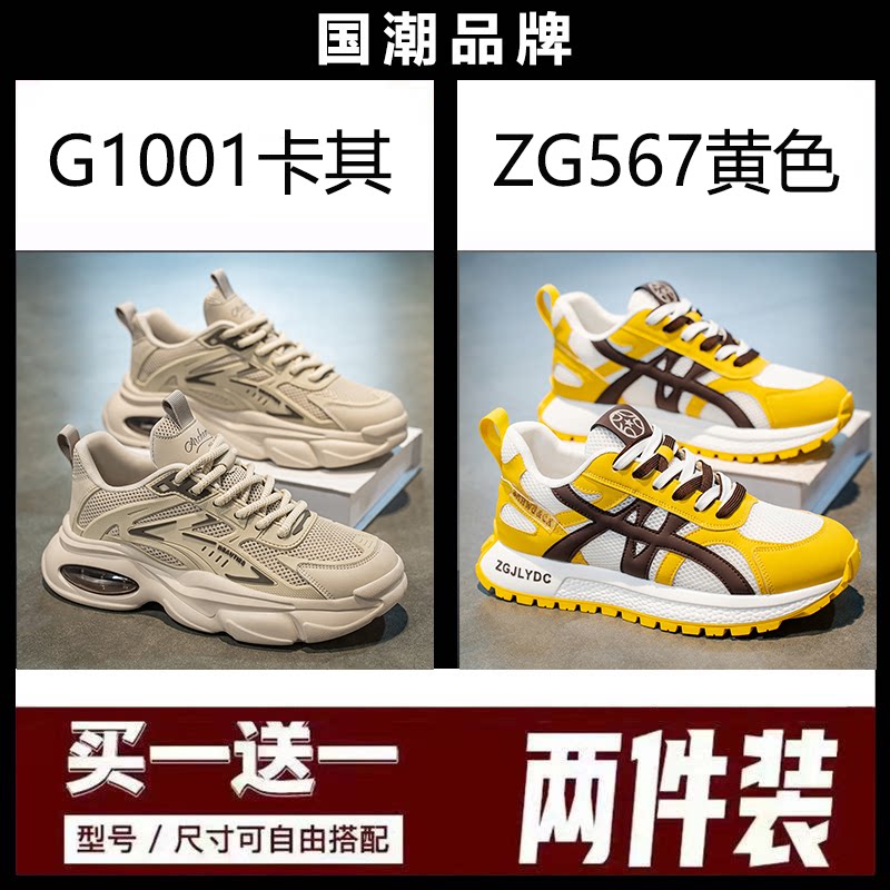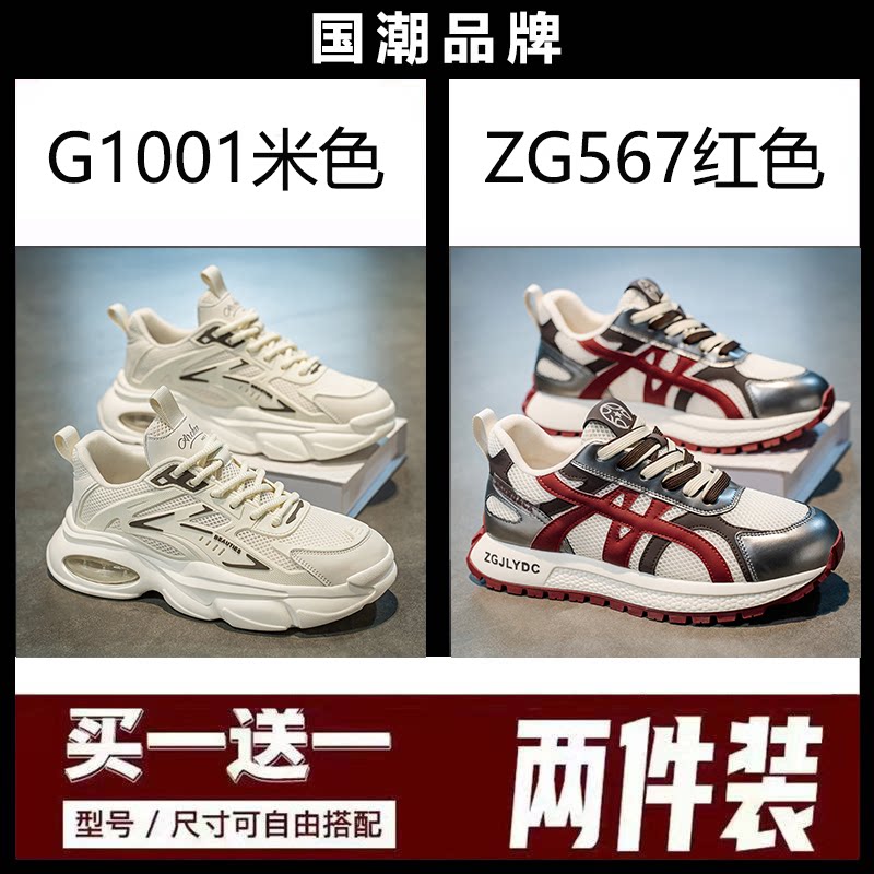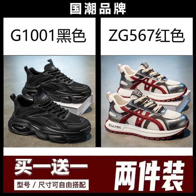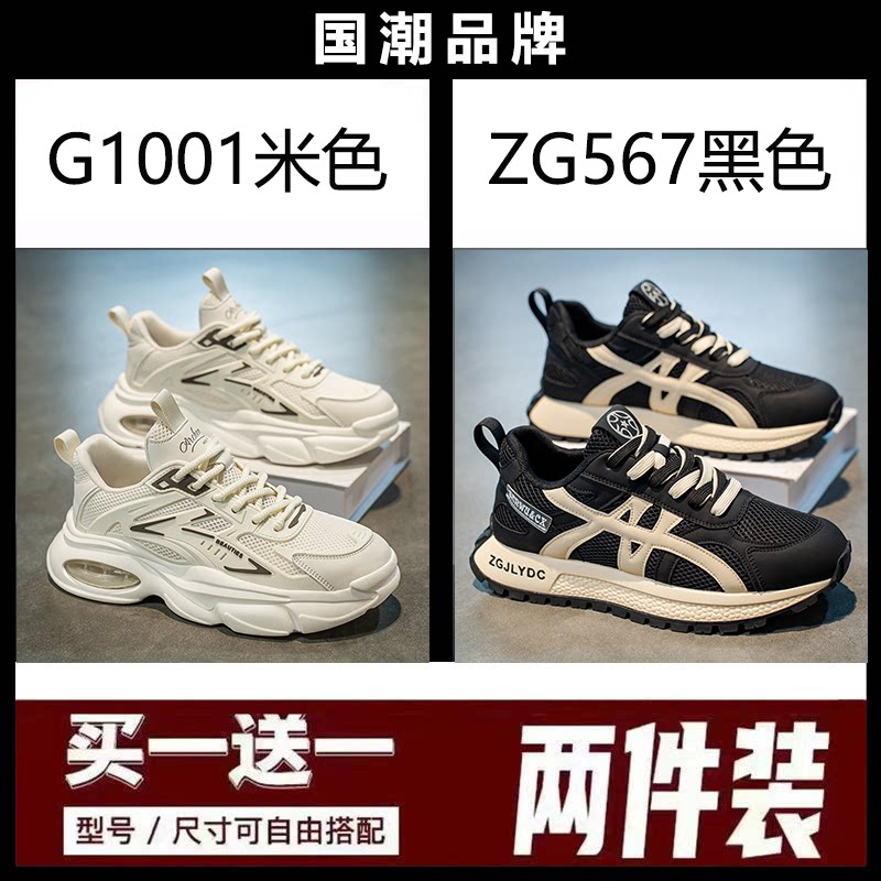 买一送一品牌男鞋秋季透气网面防臭百搭运动休闲跑步厚底老爹潮鞋