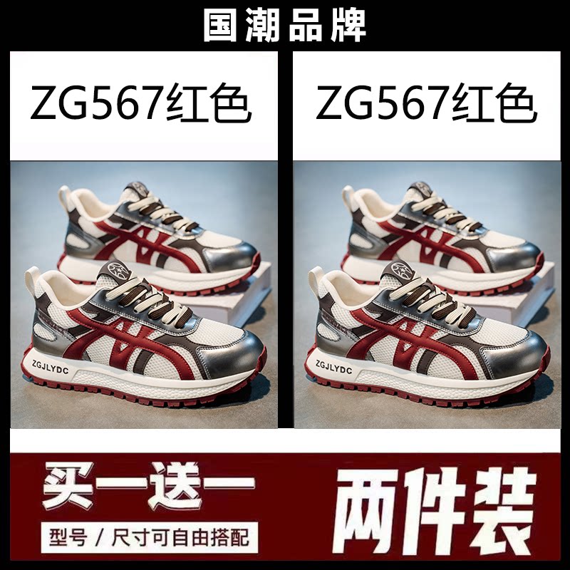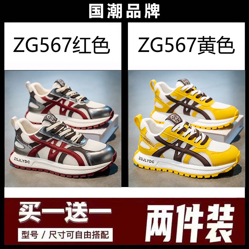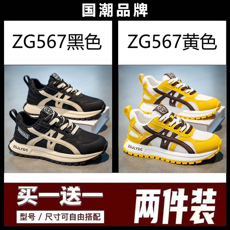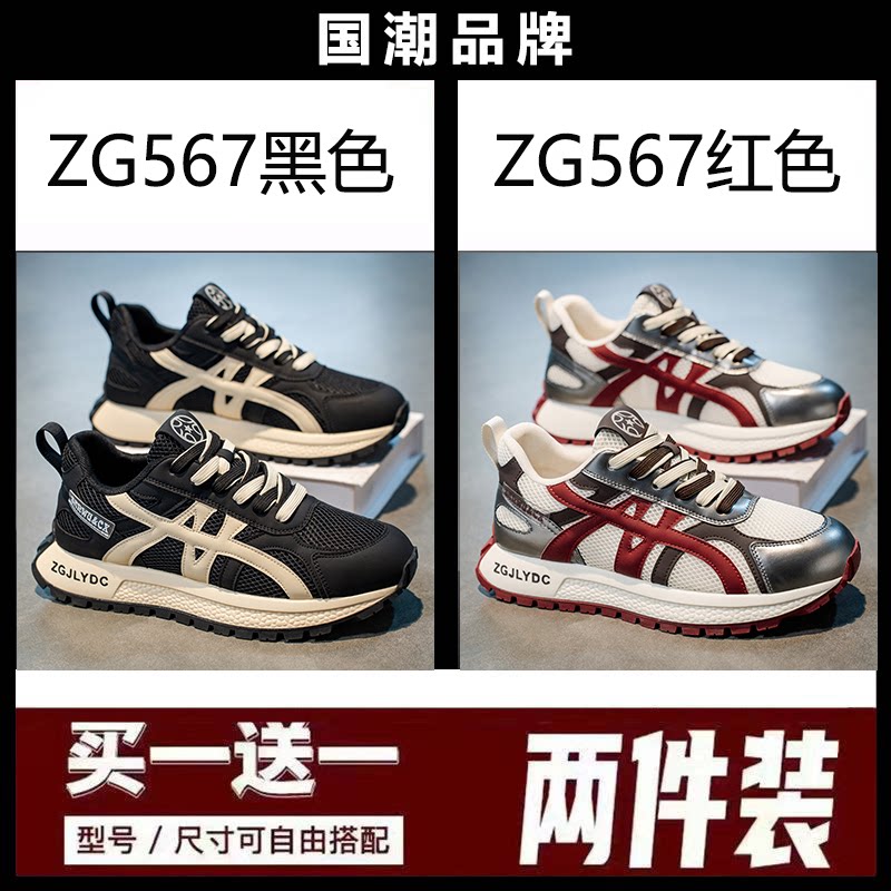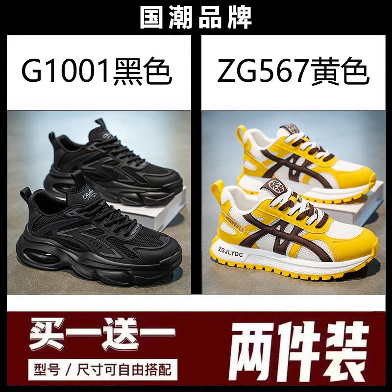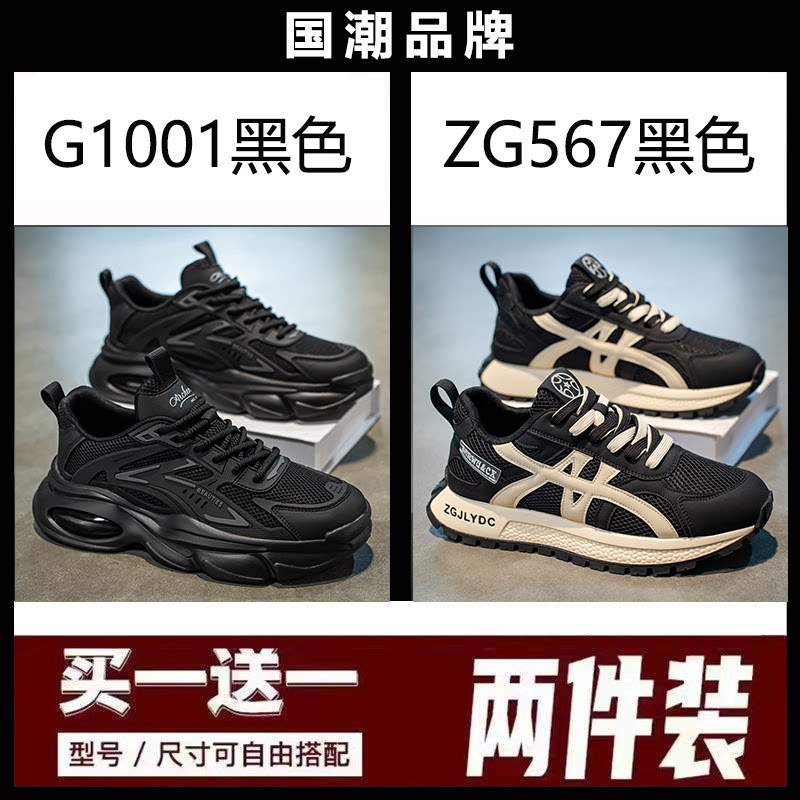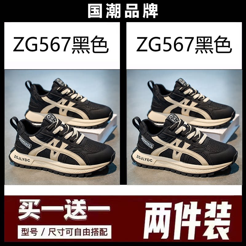 买一送一品牌男鞋秋季透气网面防臭百搭运动休闲跑步厚底老爹潮鞋