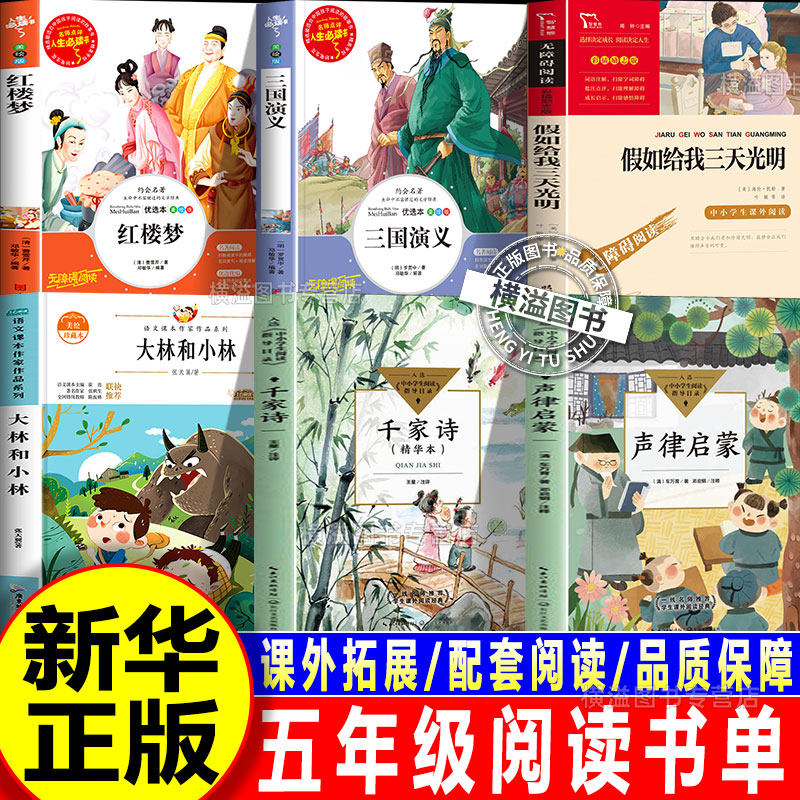 2026春季五年级下册必读的课外阅读校校书香儿童文学书目三国演义红楼梦假如给我三天光明大林和小林千家诗声律启蒙