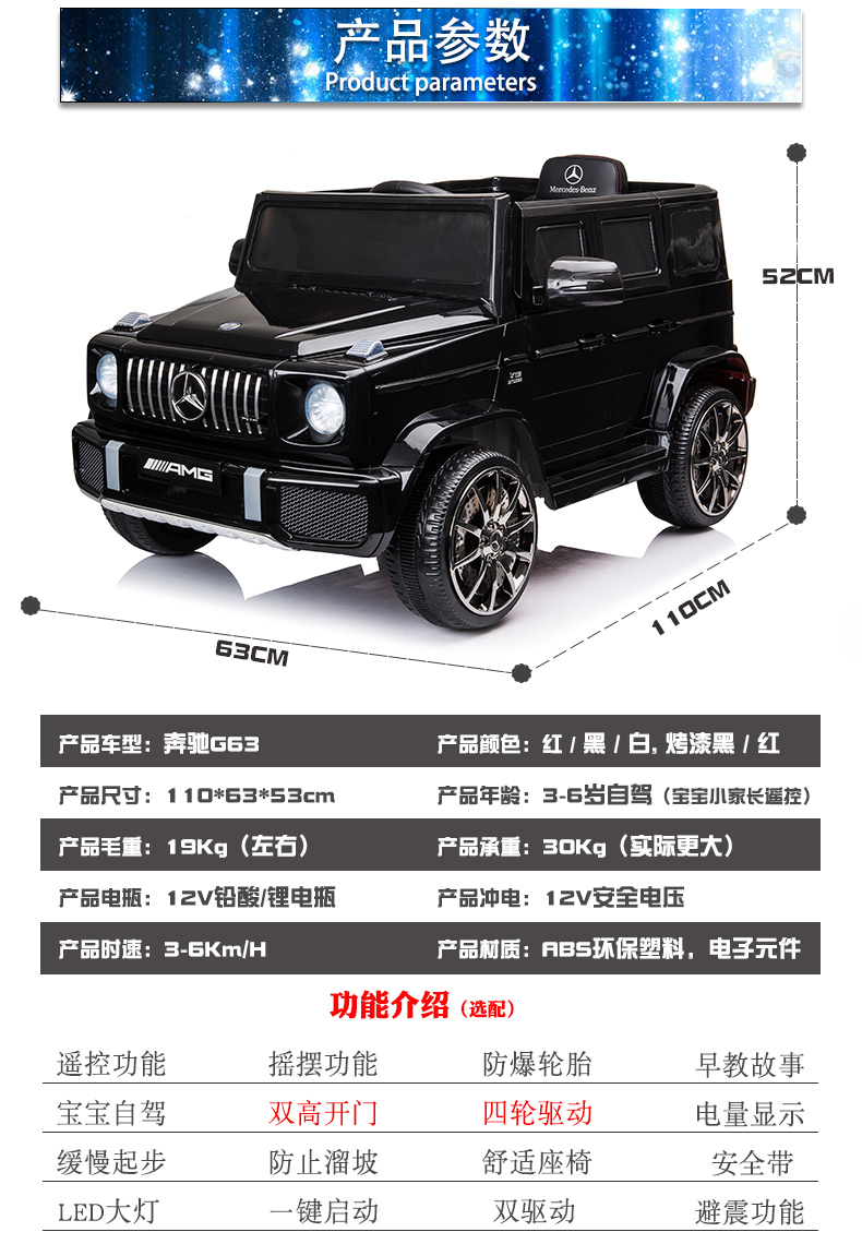 奔驰大G63儿童电动车四轮遥控汽车小孩越野童车宝宝玩具车可坐人