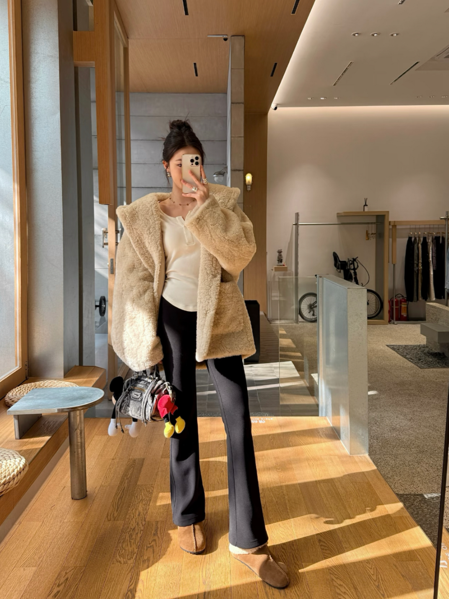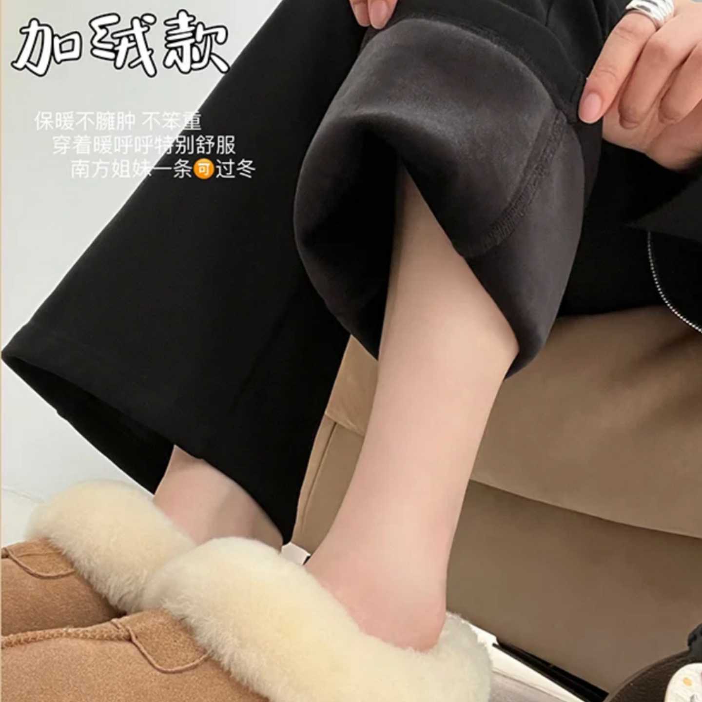 【3个裤长可选】2025冬季新款加绒加厚微喇小黑裤女外穿打底裤子