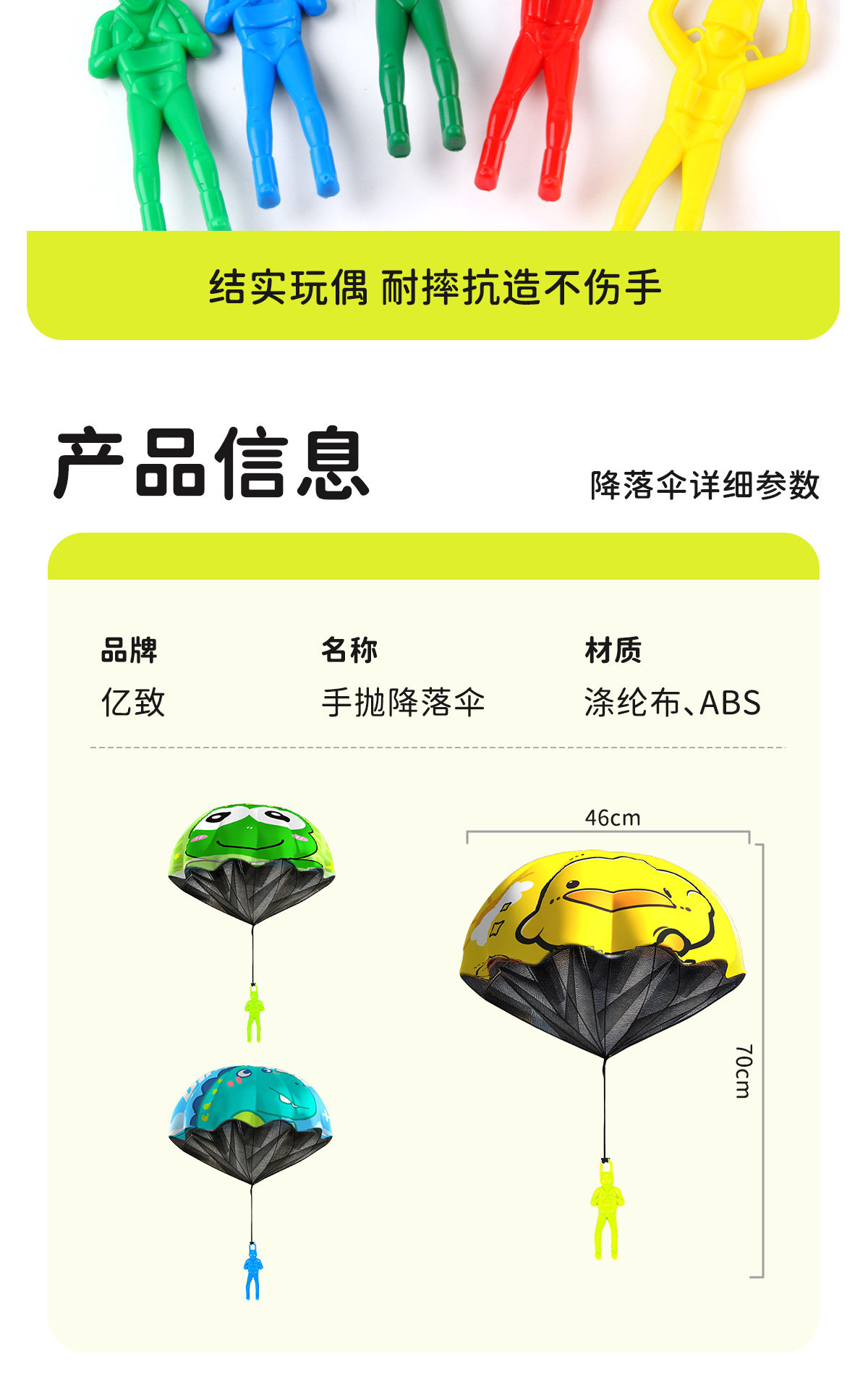 儿童手抛降落伞户外玩具小朋友春游公园男孩宝宝亲子互动游戏运动