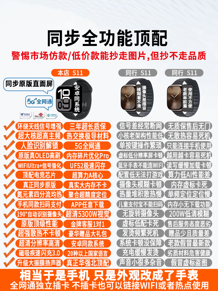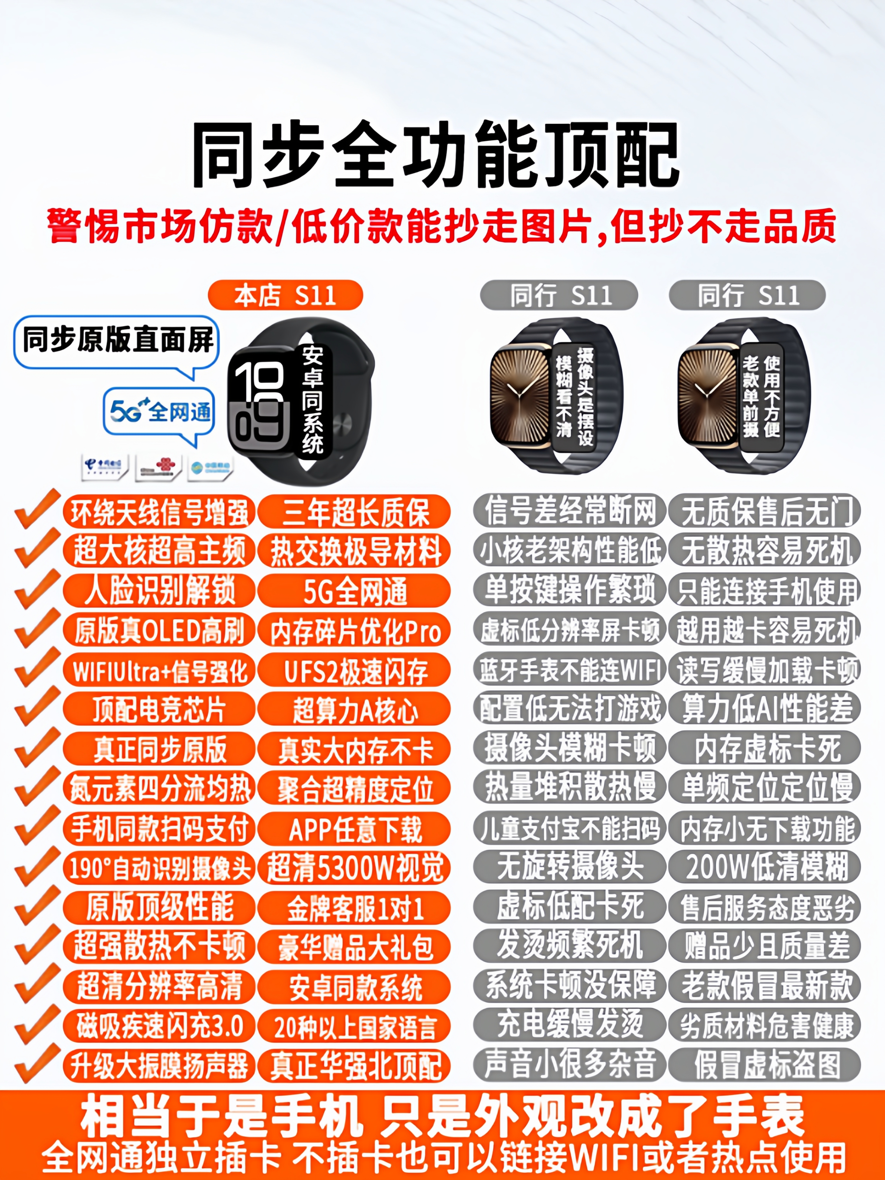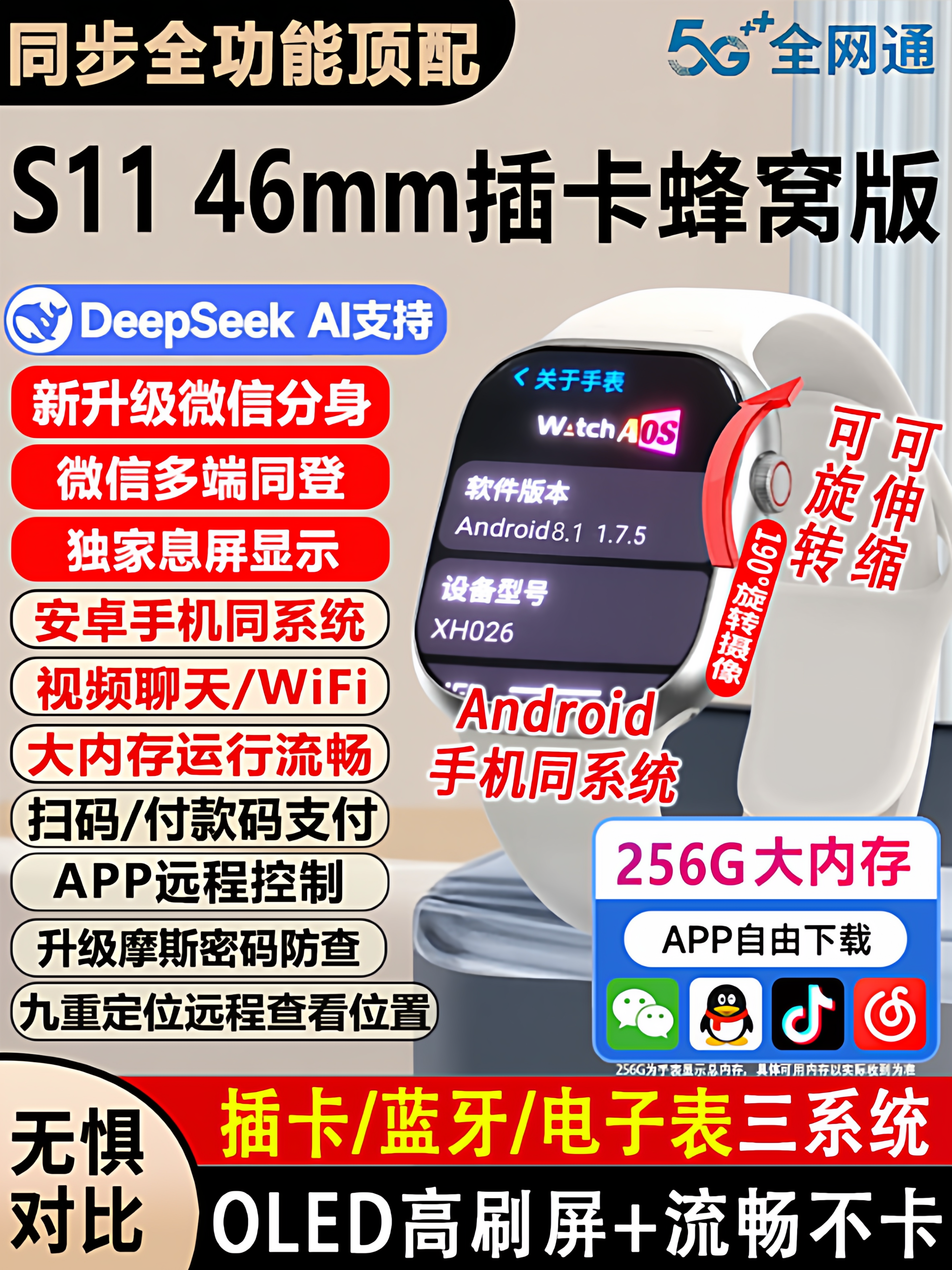 新款S11蜂窝版华强北可插卡智能手表watch顶配成人大屏电话下载10