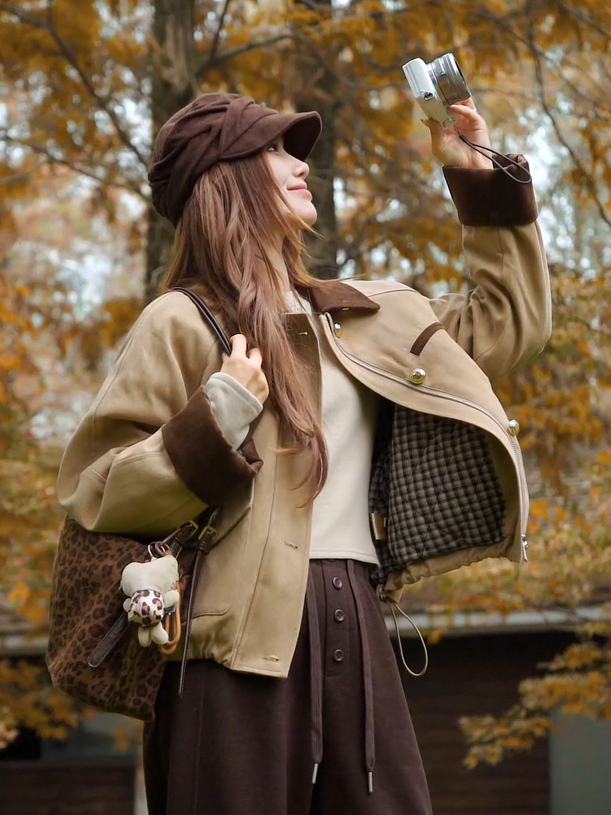 韩版气质复古撞色夹克外套女装2025秋冬新款时尚高级宽松辣妹上衣