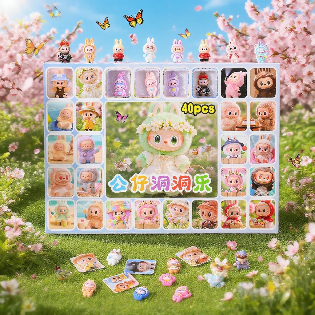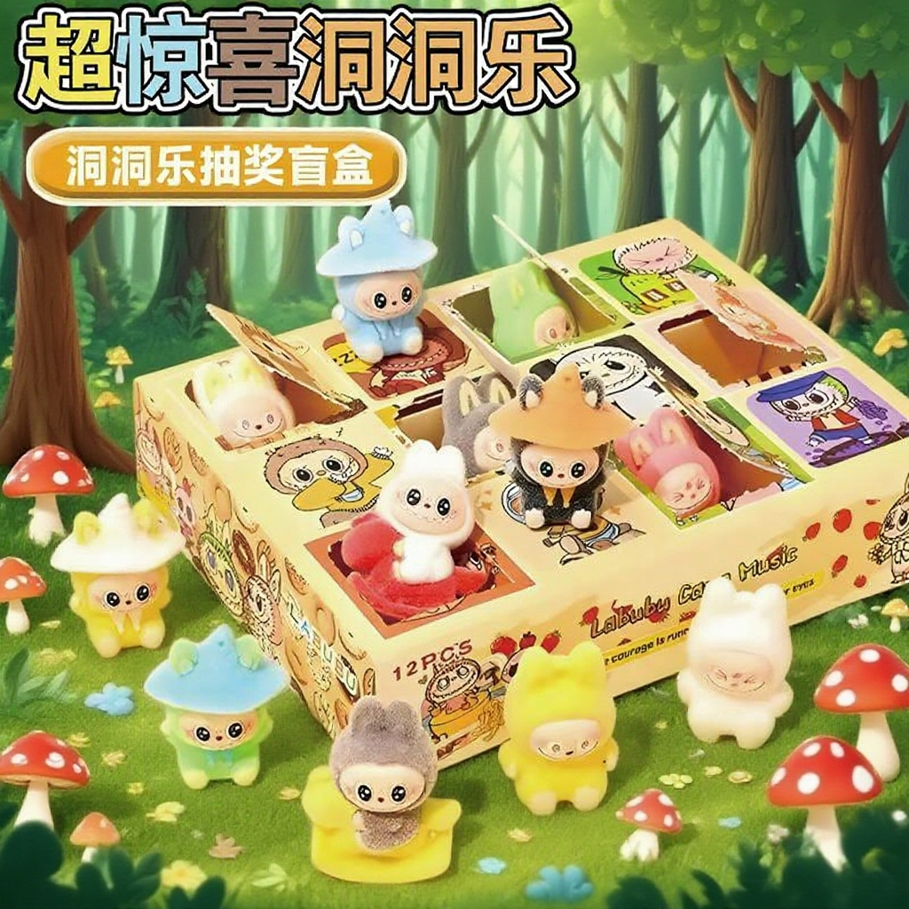 12入啦布labu洞洞乐儿童植绒公仔毛绒挂件摆件汽车电脑摆件戳戳乐