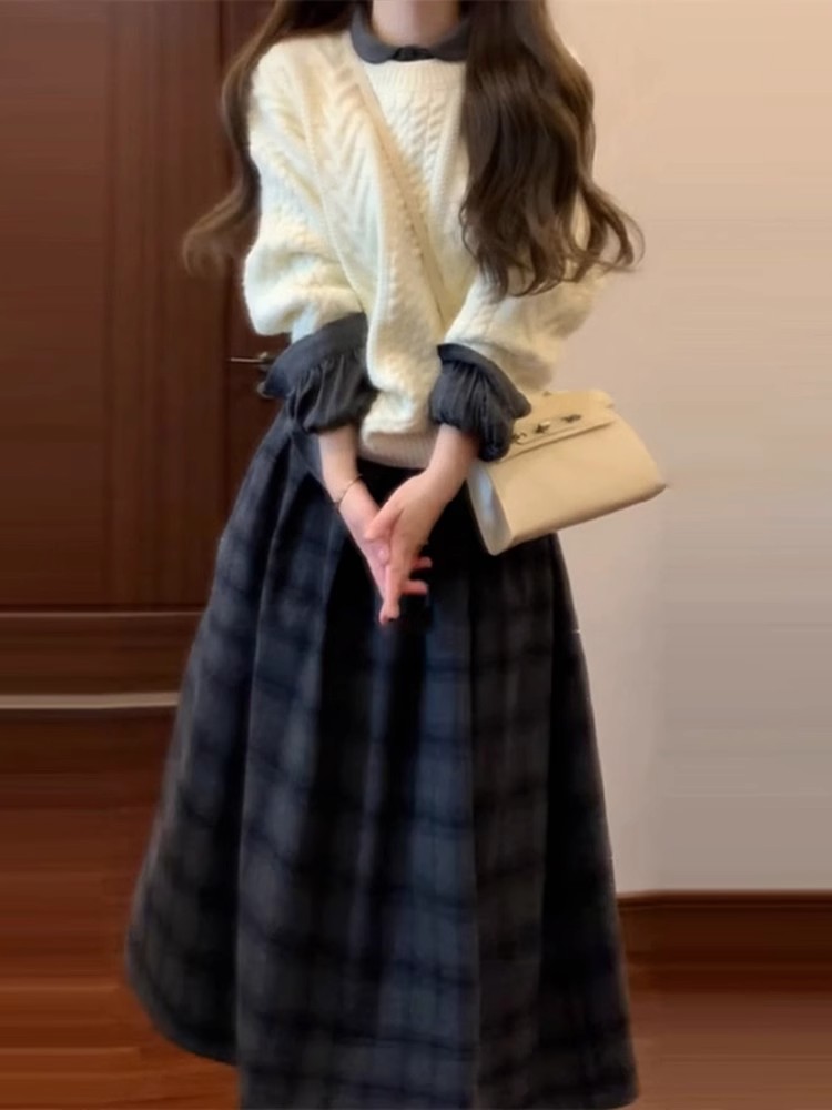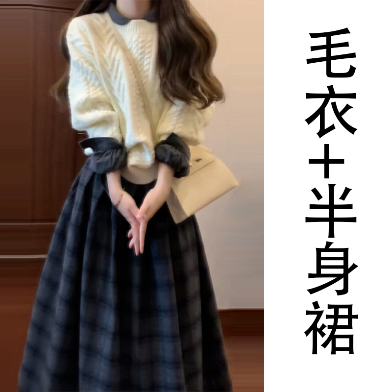 英国DGKP针织毛衣套装裙女款法式小个子香风春秋季一整套春装穿搭