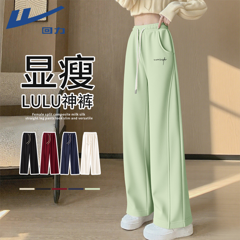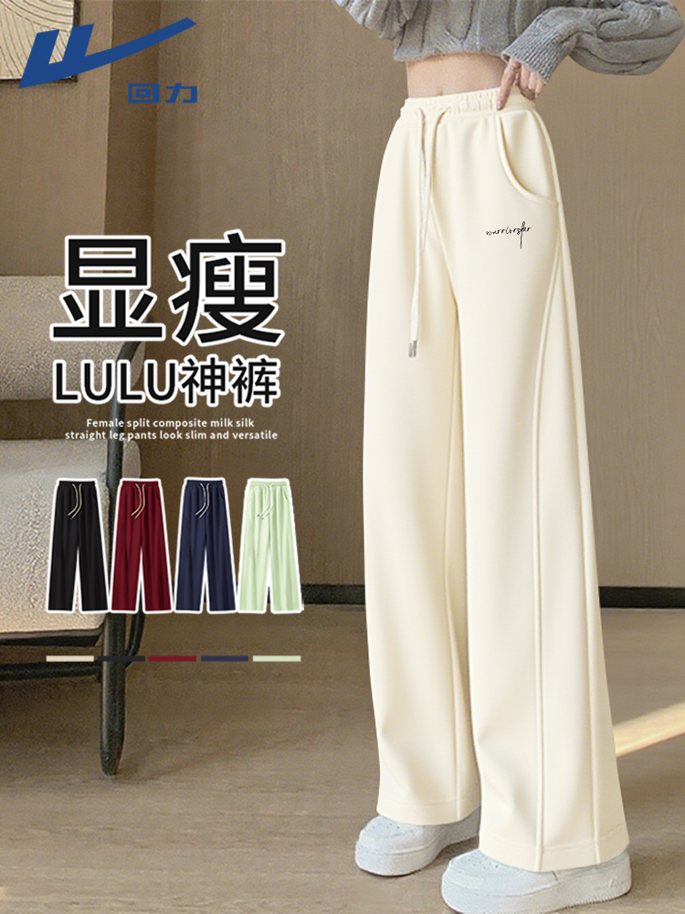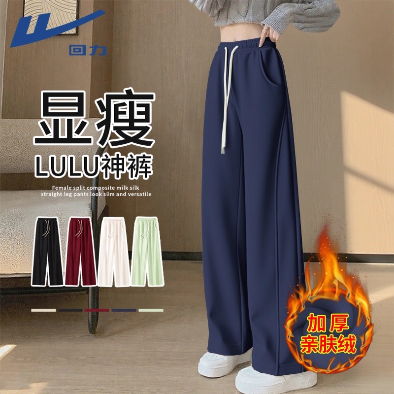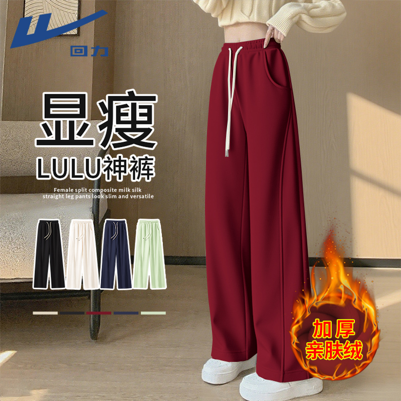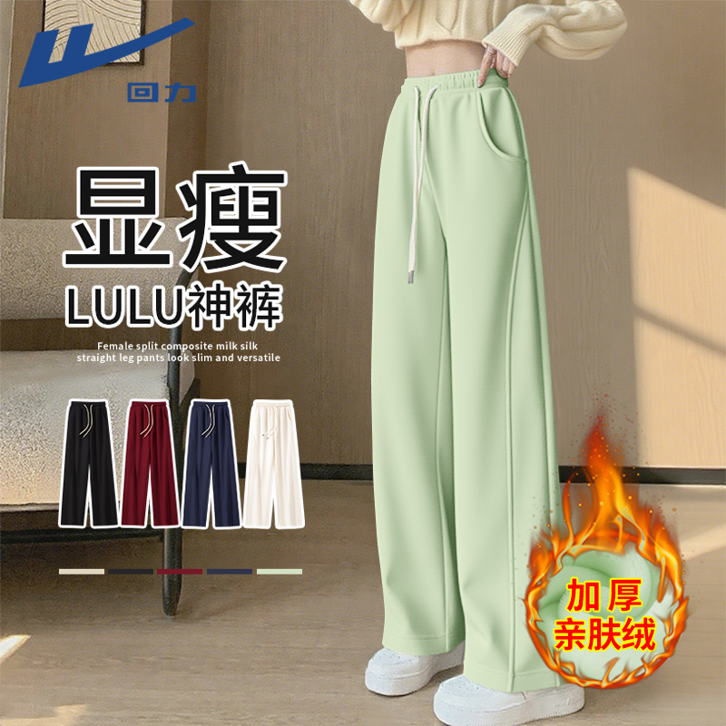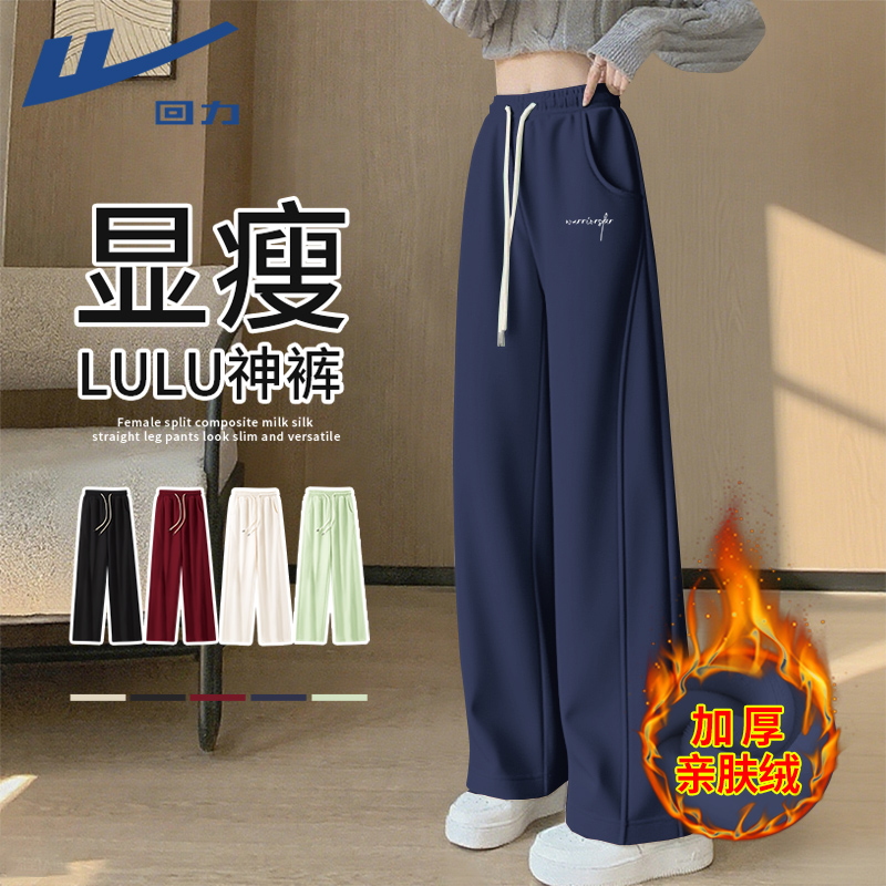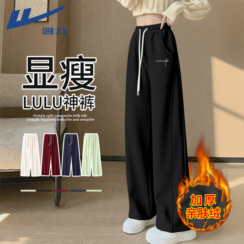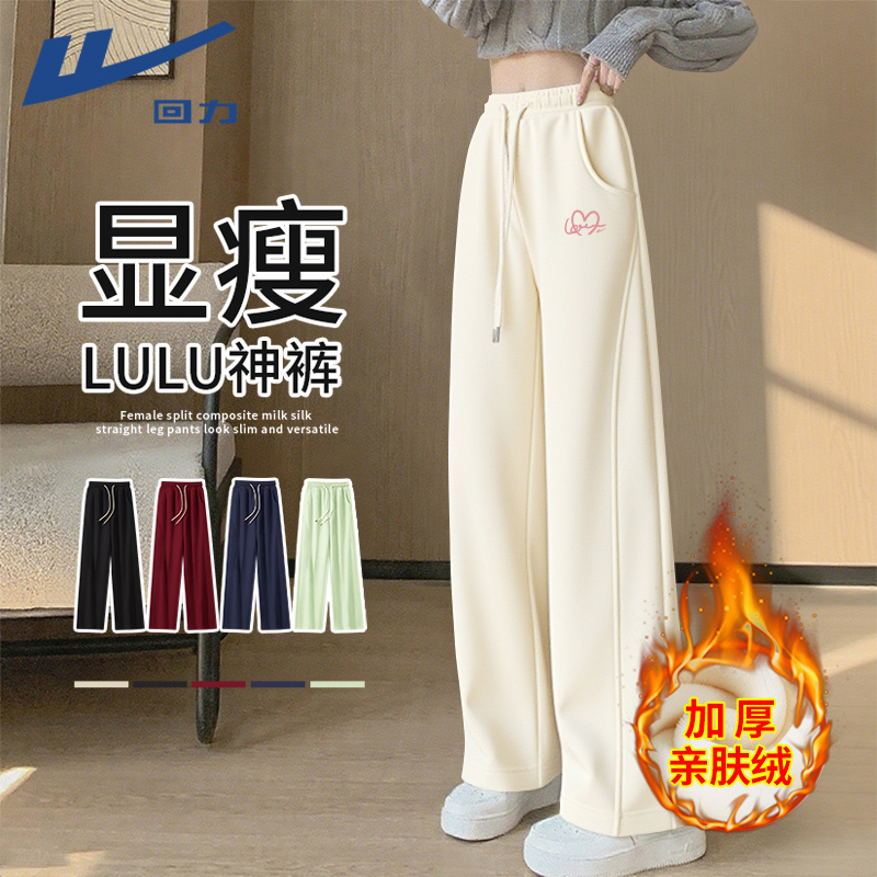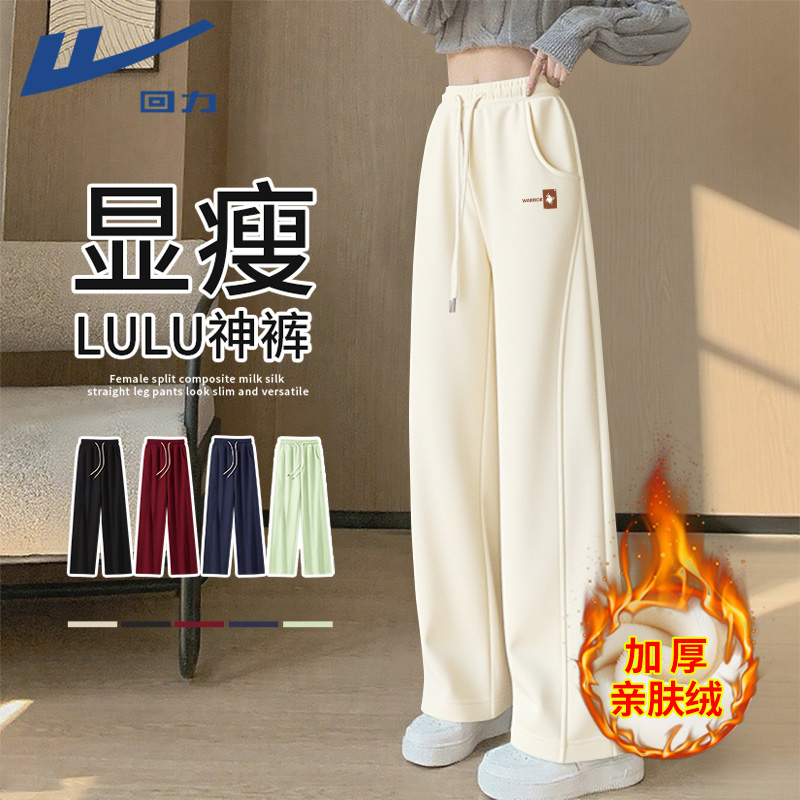 回力初中生休闲运动裤子女2025新款秋冬季窄版直筒裤加绒加厚卫裤