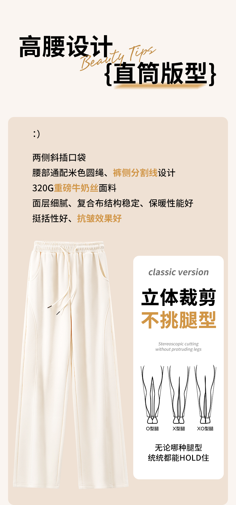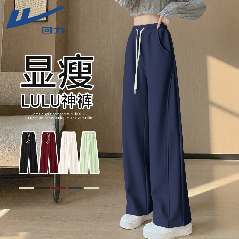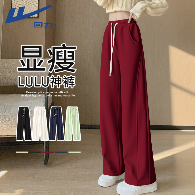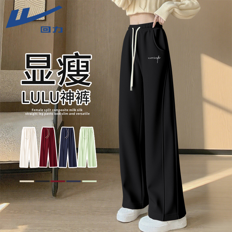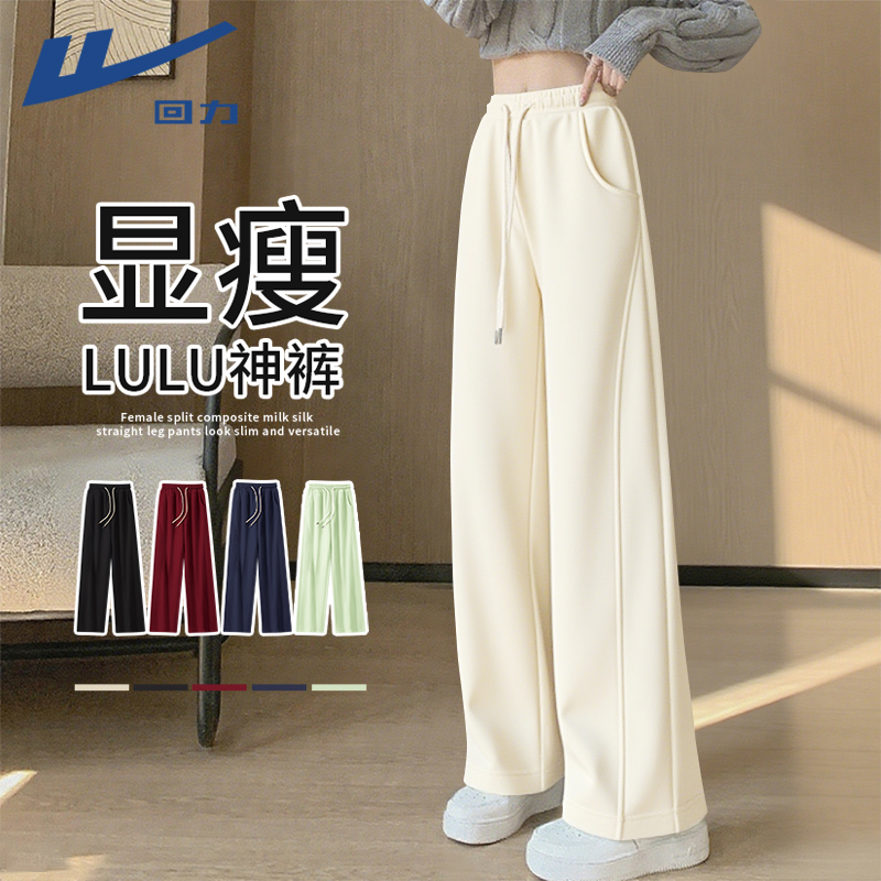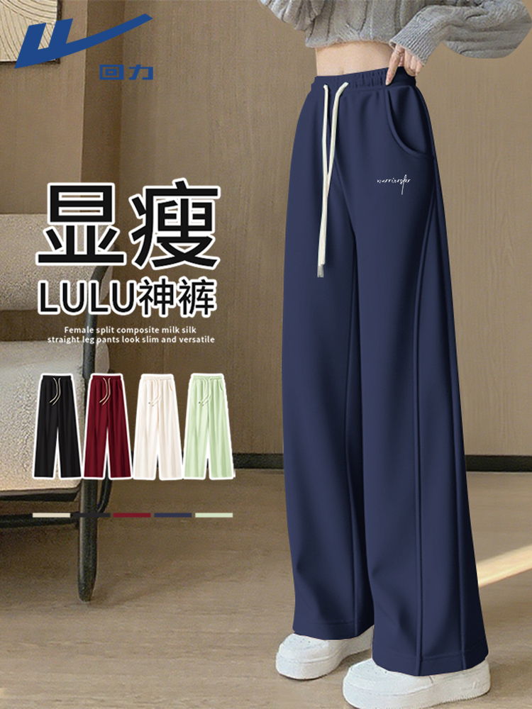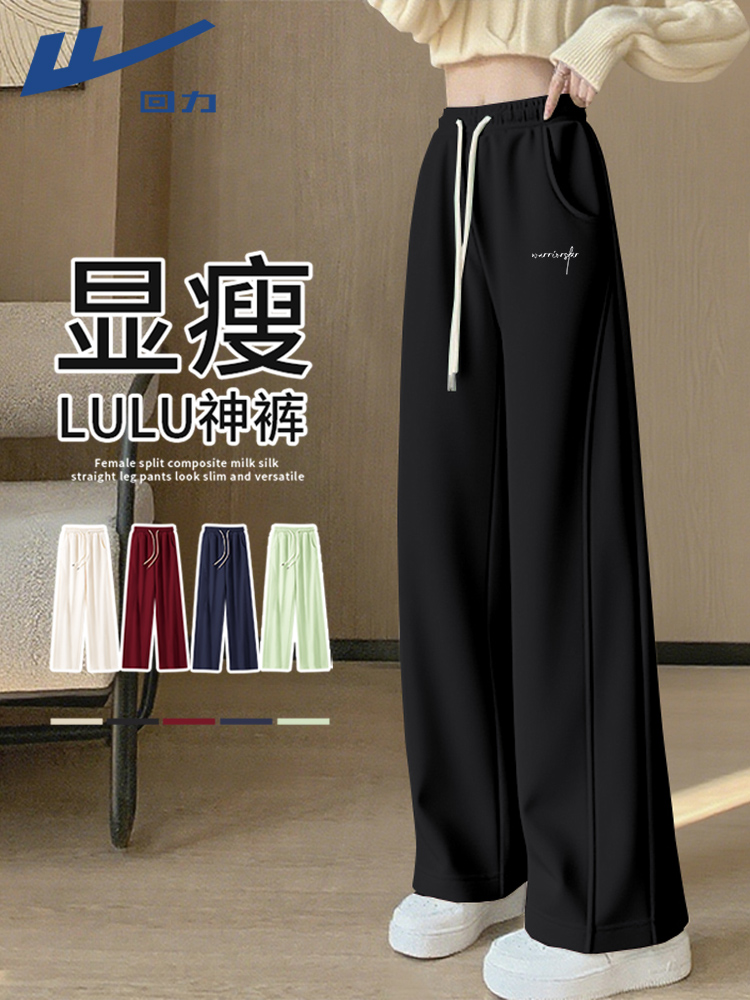 回力初中生休闲运动裤子女2025新款秋冬季窄版直筒裤加绒加厚卫裤