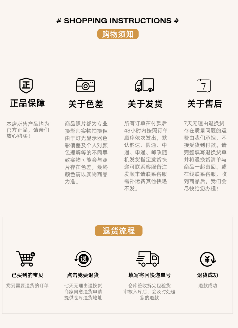 All products available for shopping agent service displayed on this site are products retrieved from third-party shopping platforms and are not directly sold by us. Thus, in case of any infringement issue involved by the aforesaid products, all liabilities incurred shall be borne by the corresponding sellers on the third-party platform while our site will not undertake any relevant, collateral or joint liability.