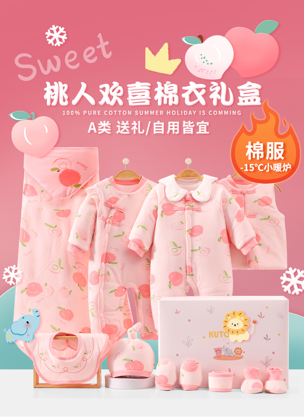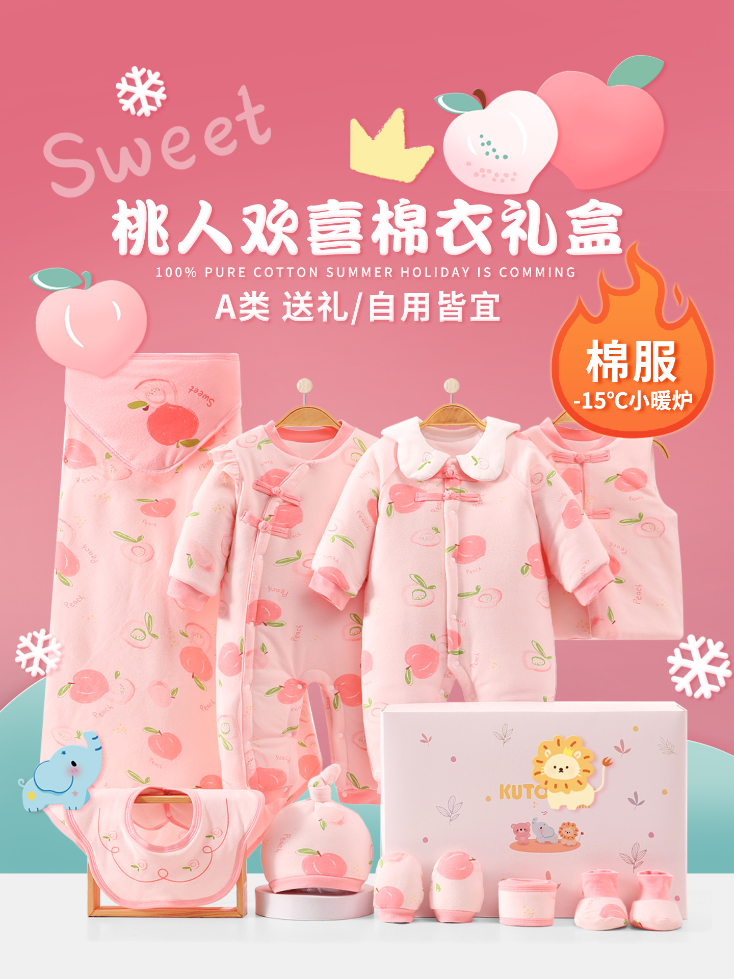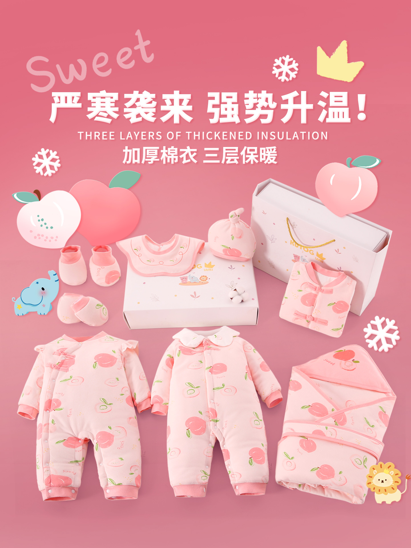 新生婴儿衣服礼盒冬季棉衣初生宝宝秋冬套装满月见面礼物用品高档
