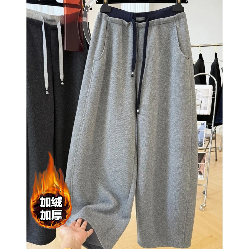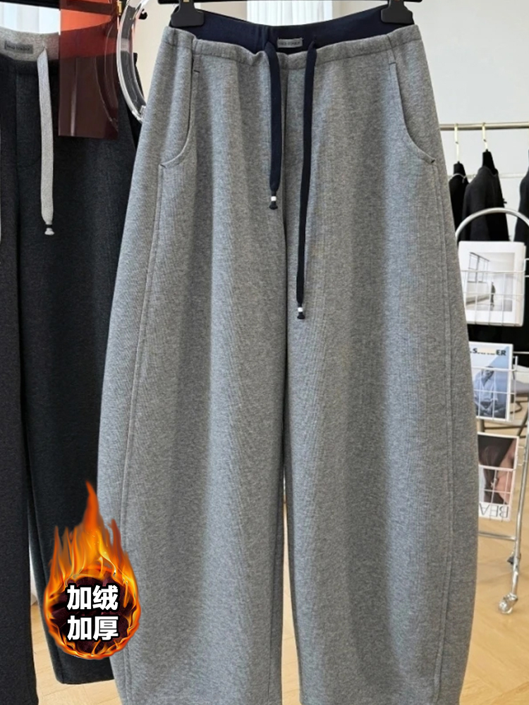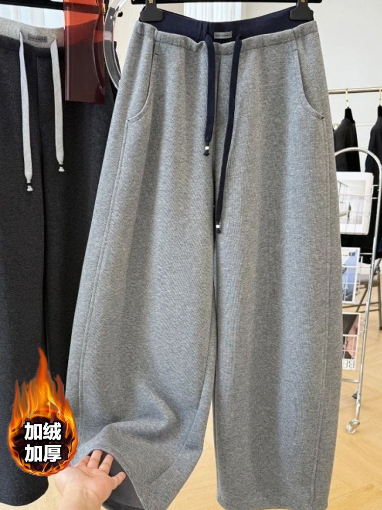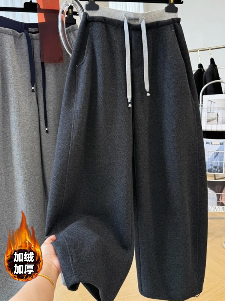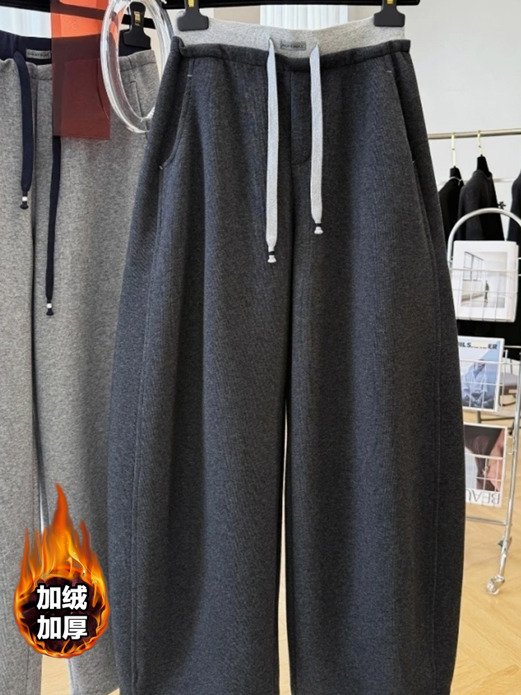 高级感韩系加绒休闲裤女秋冬新款时髦减龄直筒卫裤独特小众弯刀裤