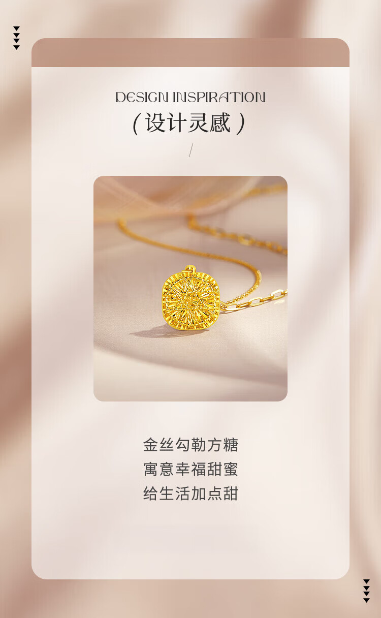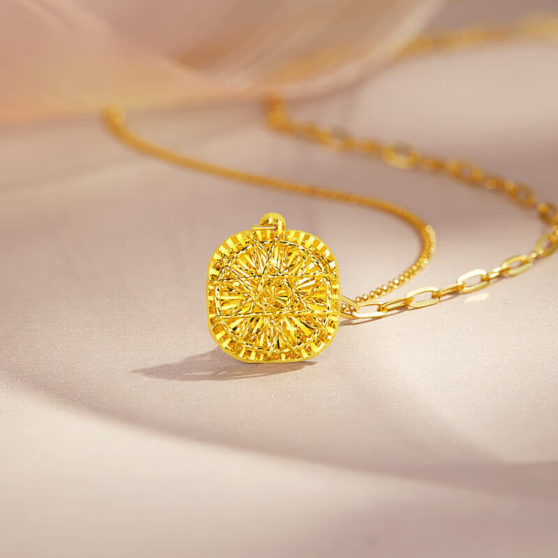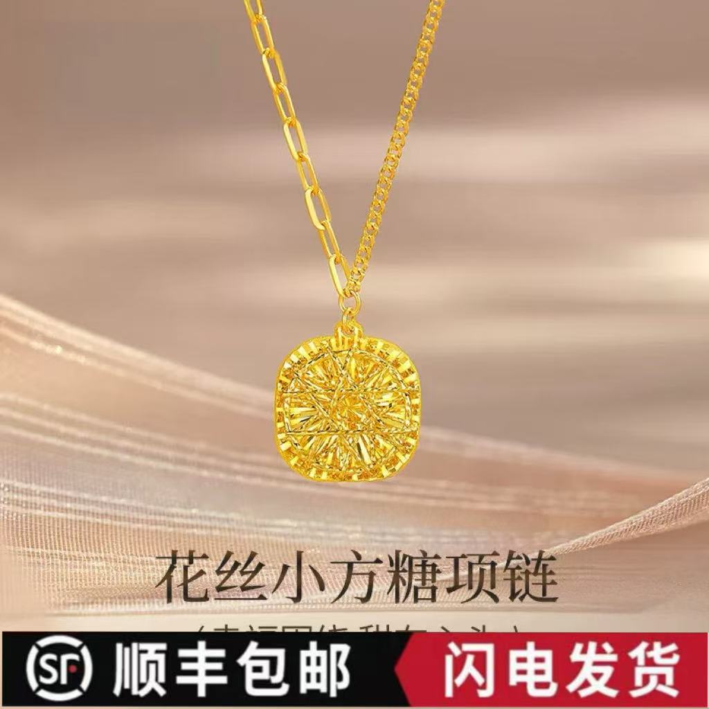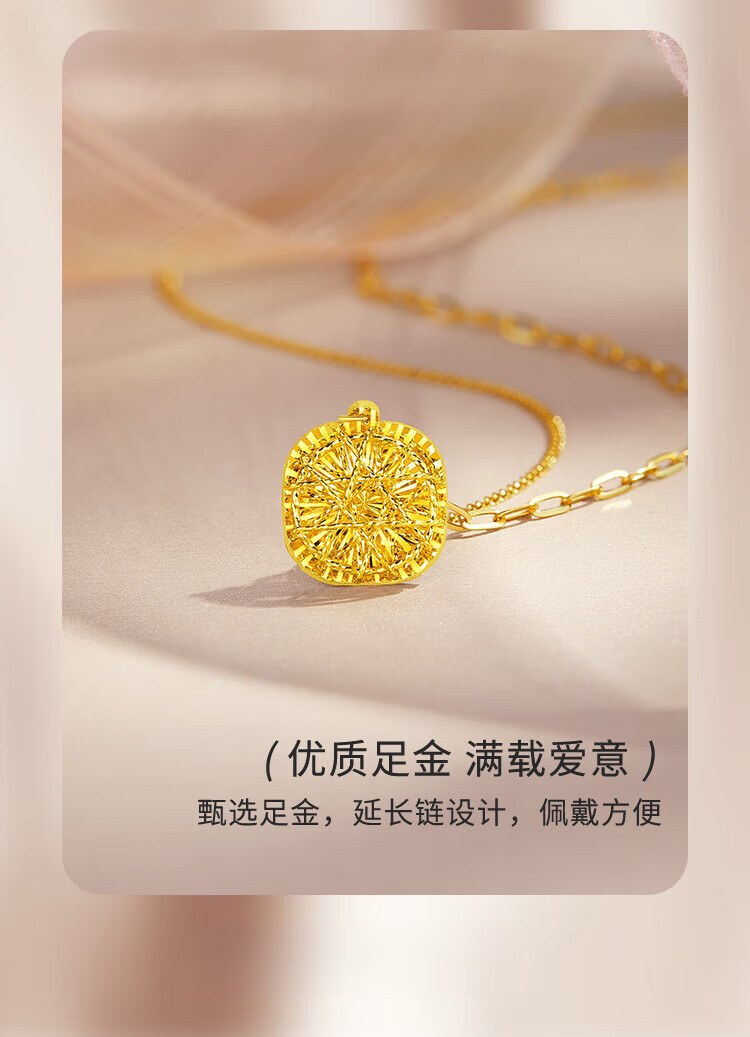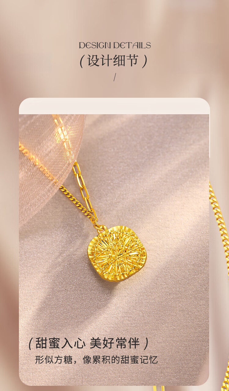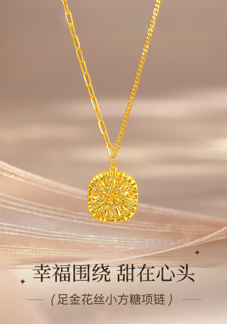 周­大­福黄金爆闪小方糖项链金吊坠锁骨链送女友生日情人节礼物