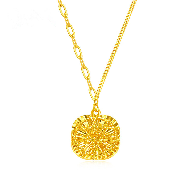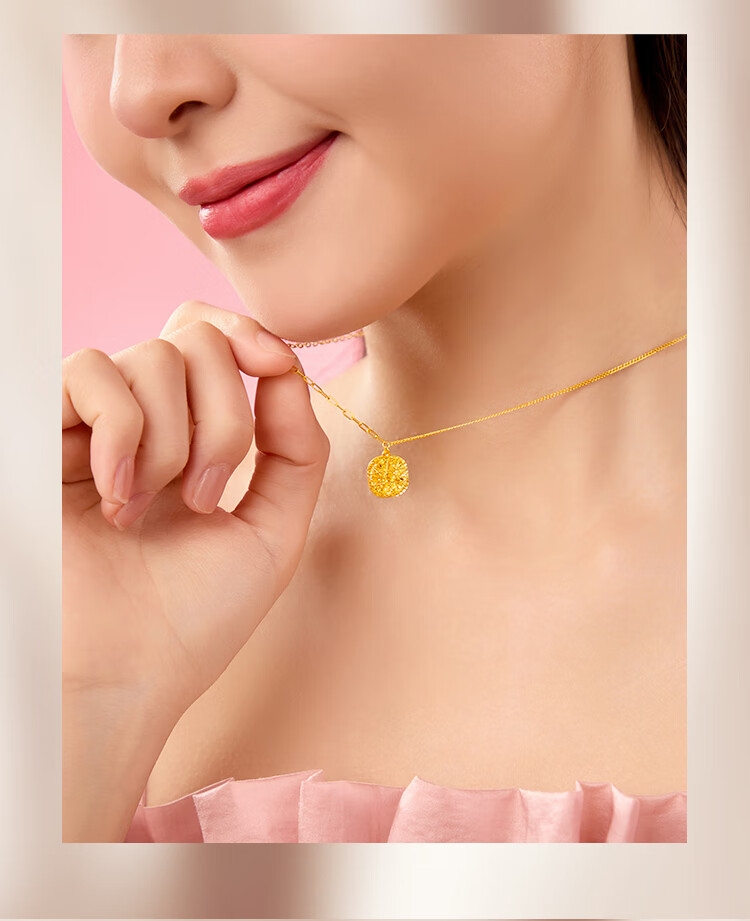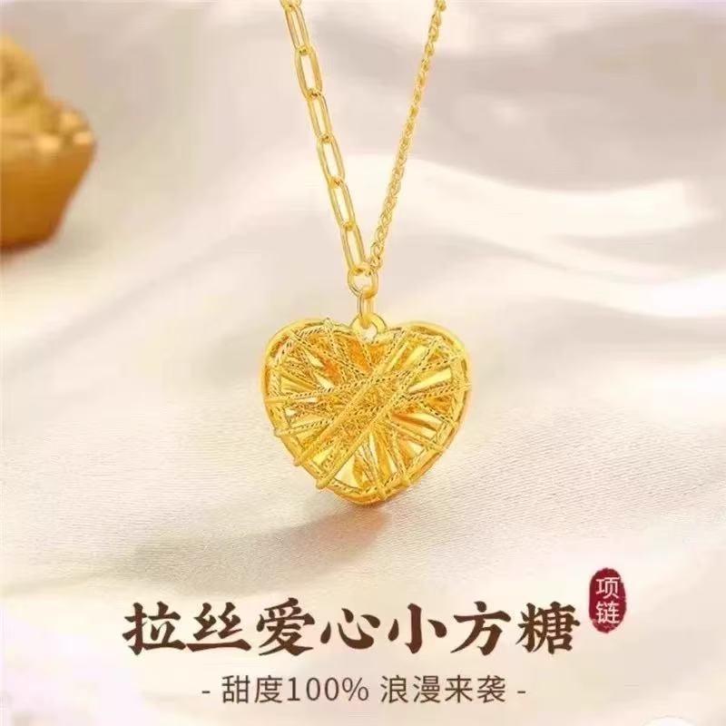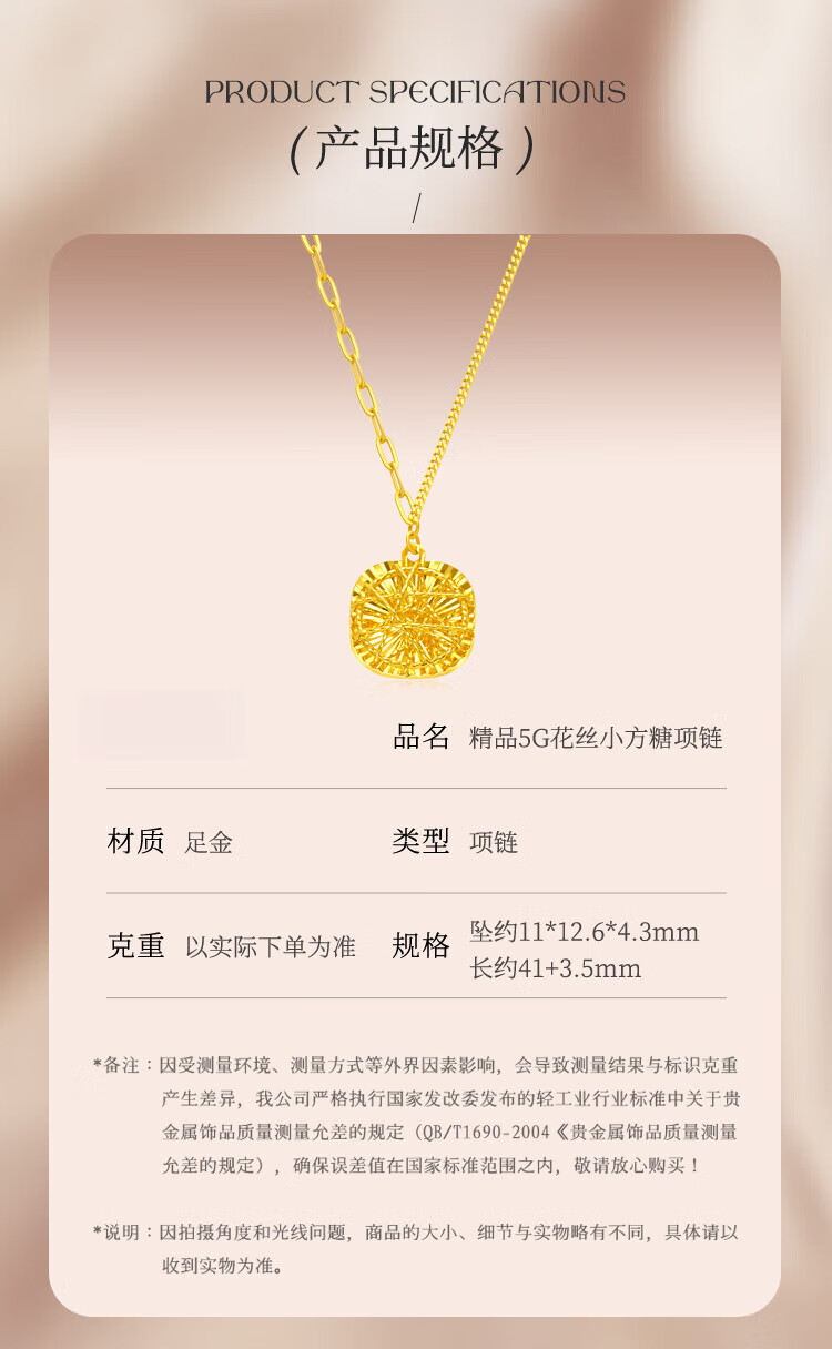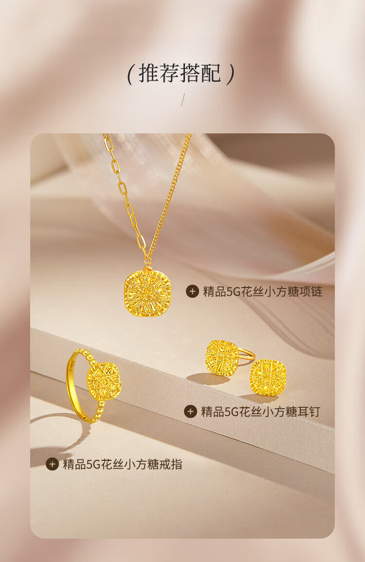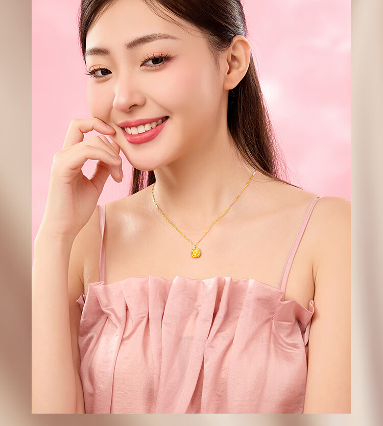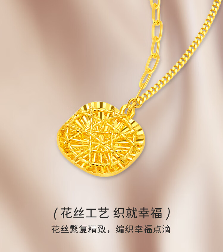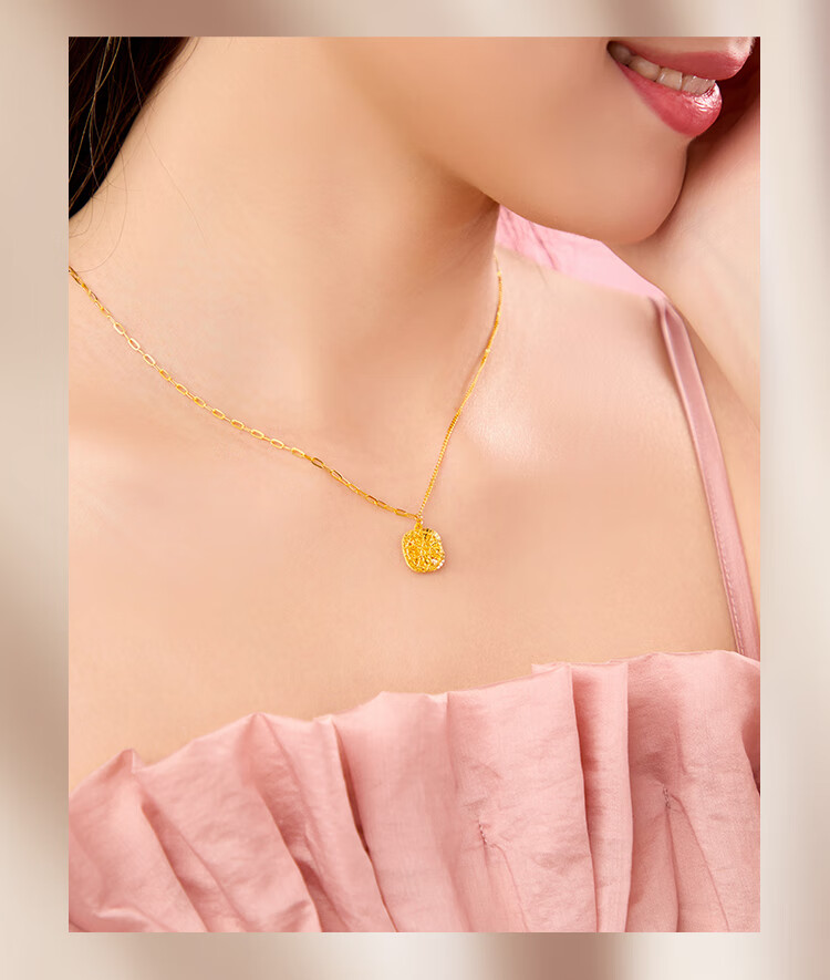 周­大­福黄金爆闪小方糖项链金吊坠锁骨链送女友生日情人节礼物